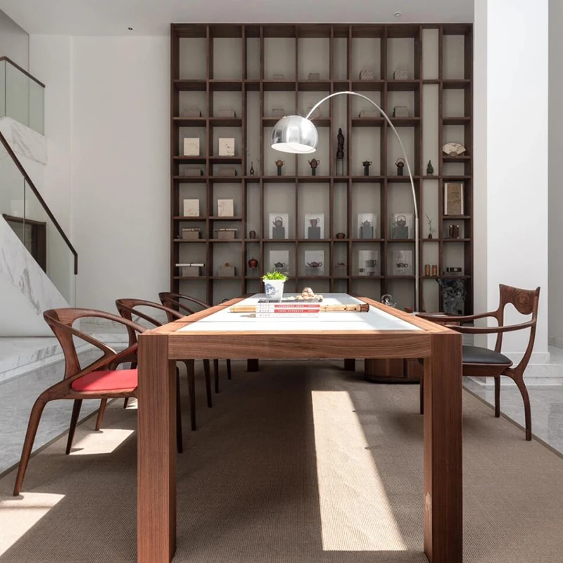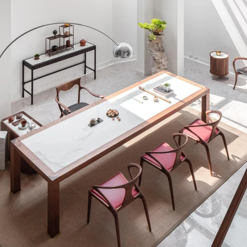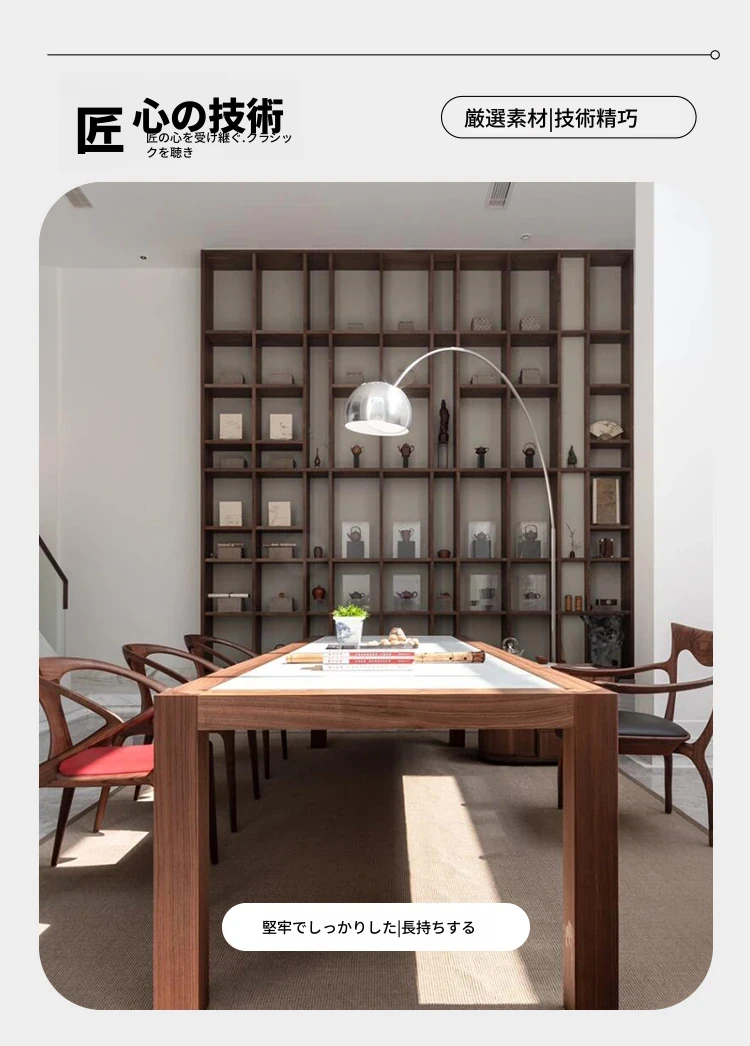 2025年新作!現代的シンプルでラグジュアリーな中華スタイルの岩板ダイニングテーブル。高品質なウォールナット材使用、コンパクトな小型住宅にも最適なデザイン。おしゃれなリビングにぴったり!