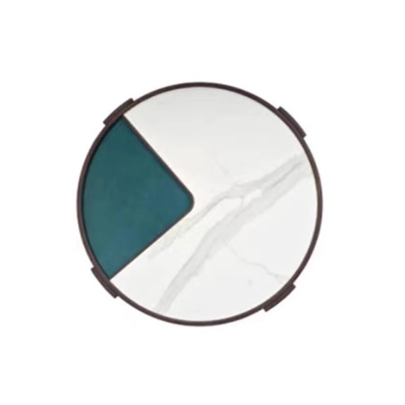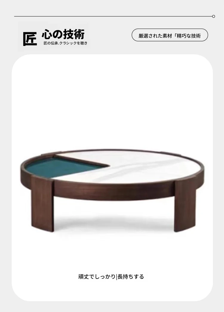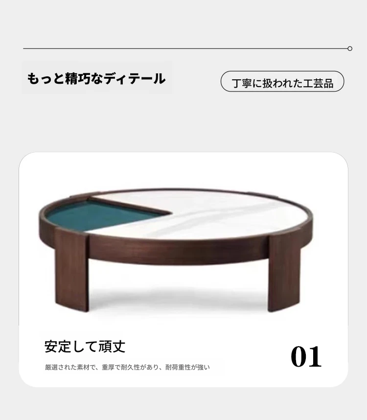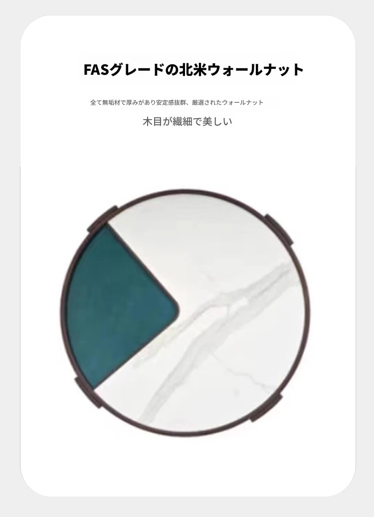 2025年新作!小型住宅向けラウンド岩板コーヒーテーブル、リビングルームに最適なラグジュアリー感溢れるウォールナット角テーブル。モダンでスタイリッシュなデザイン、空間を美しく演出します!