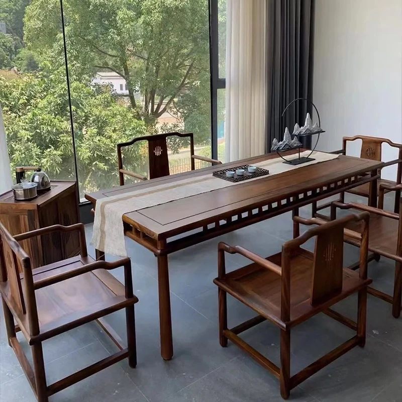 2025年新作!高級感溢れる新中式茶卓 - ウォールナット材使用のモダンでシンプルなデザイン。オフィスや家庭にぴったりな実木製のティーテーブルで、心地よいひとときをお楽しみください。