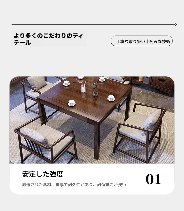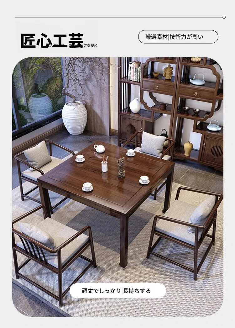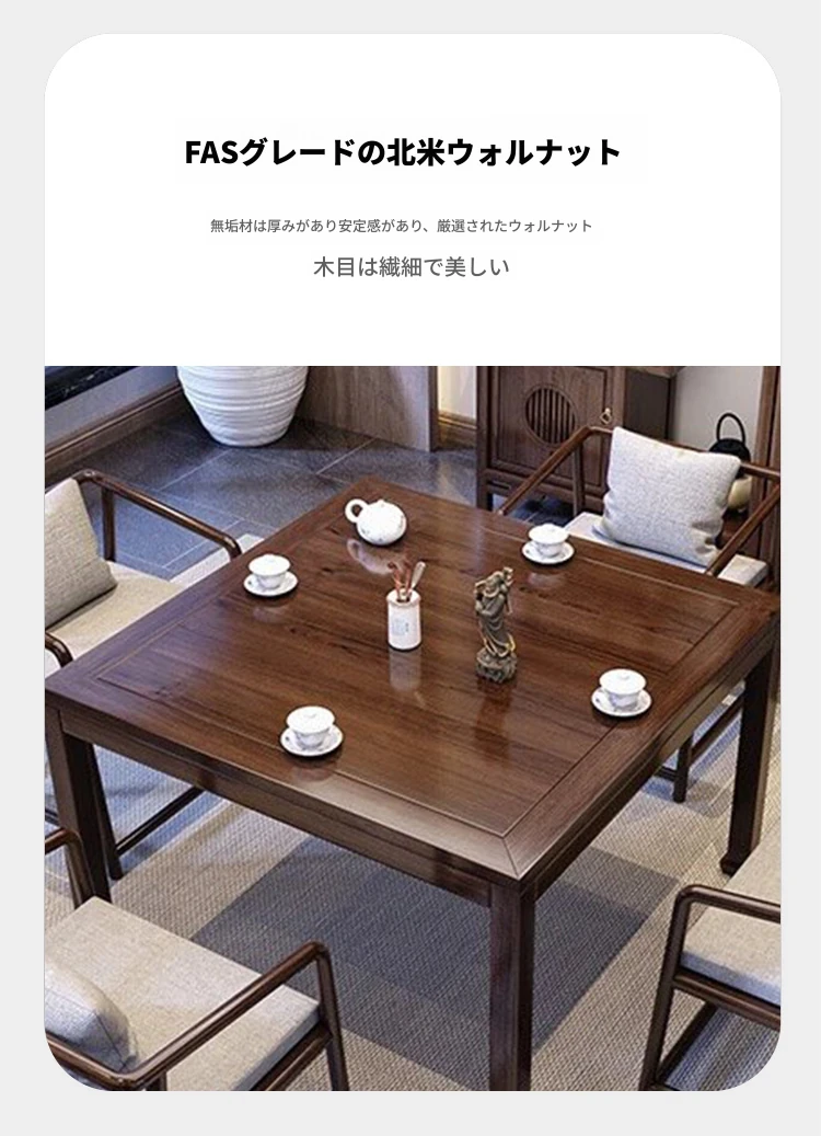 2025年新作!高級感あふれる無垢材の八仙テーブル - 新中式デザインの正方形リビングテーブル。ウォールナット材使用で、家庭にぴったりな軽やかな贅沢感を演出します。