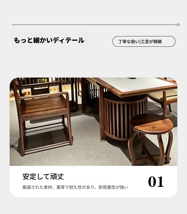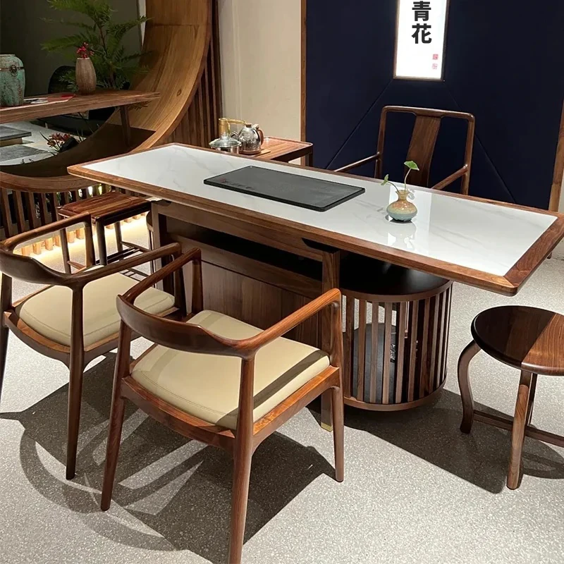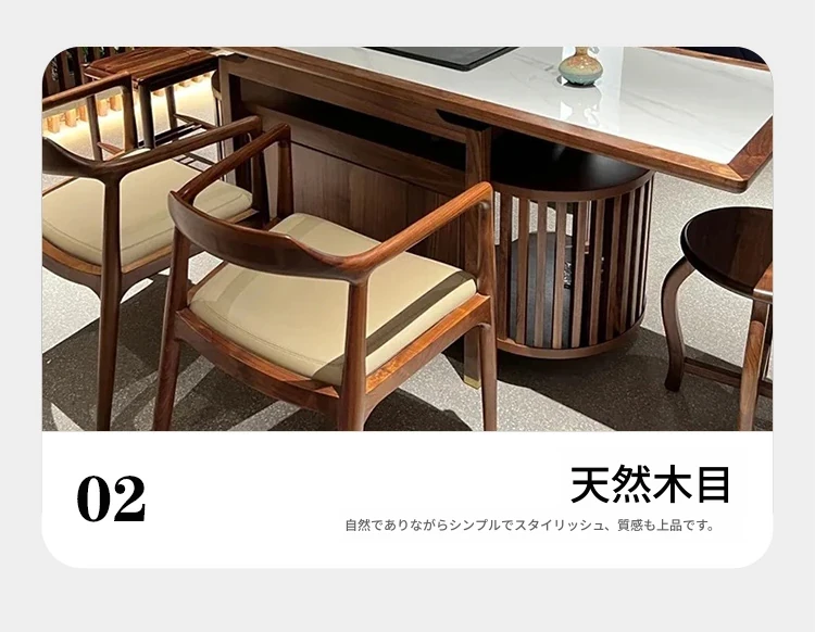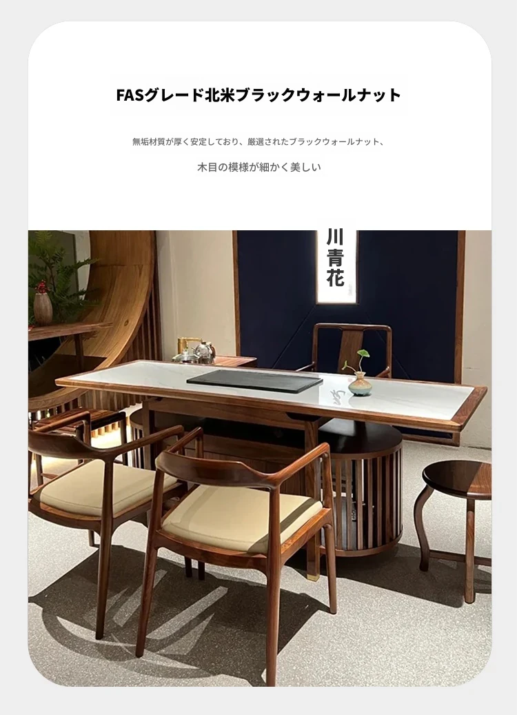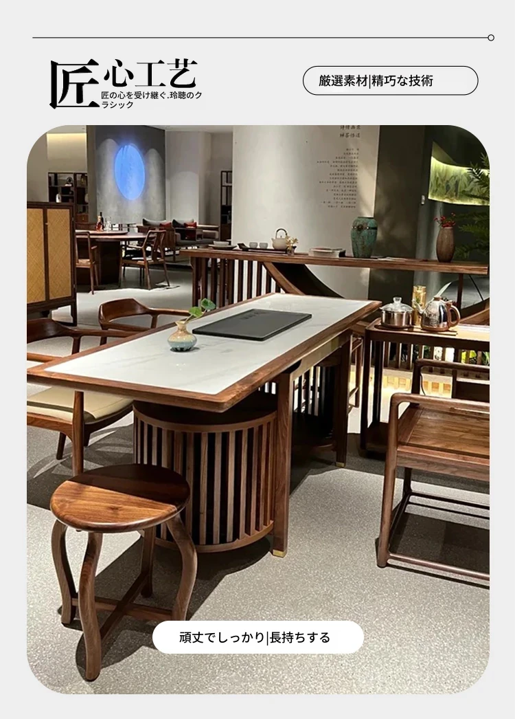2025年新作!高級感あふれるウォールナット製の岩板茶卓 - モダンな新中式デザインで、家庭にぴったりのスタイリッシュな茶台。優雅なティータイムを演出します!
