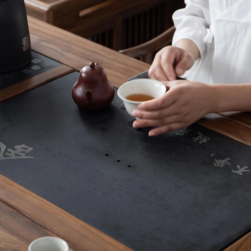 1.8メートル茶卓(ブラックウォルナット)電気器具付き火焼石
