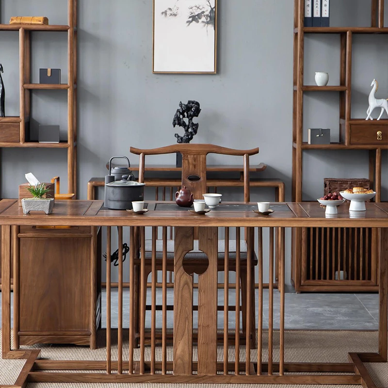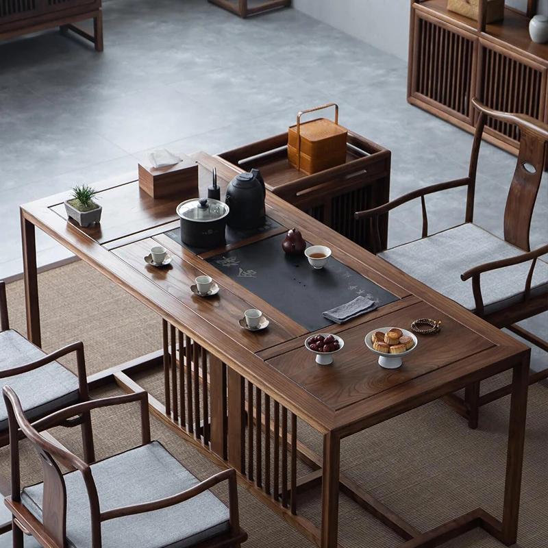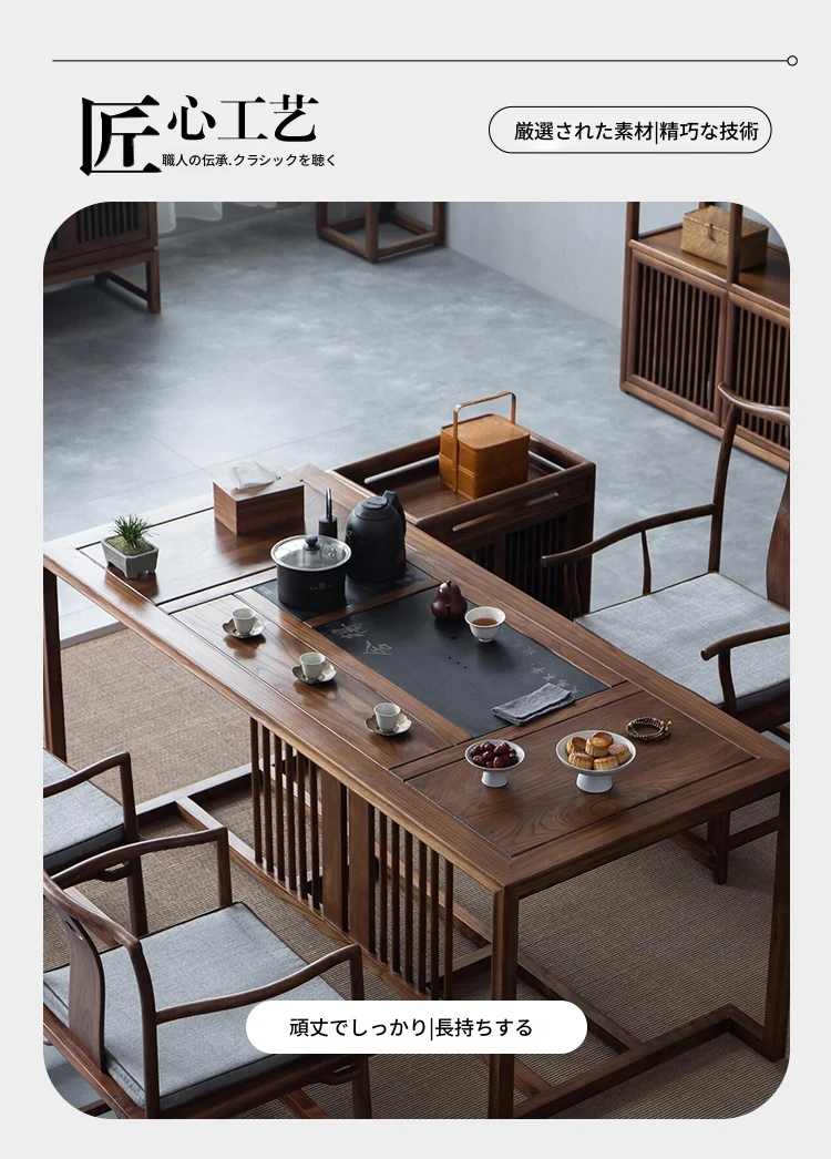 2025新作 高級ウォールナット製 茶卓一体型 電気ポット付き 茶道具 オフィス用 高品質 本格的なティータイムを実現!