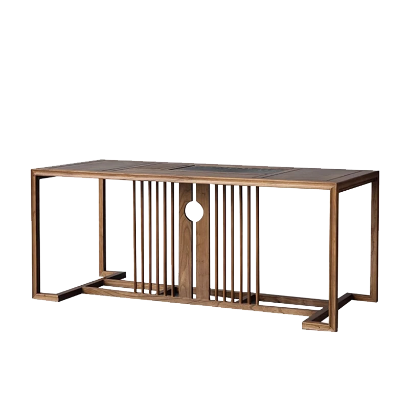 1.6メートル茶卓(ブラックウォルナット)電気器具付き火焼石
