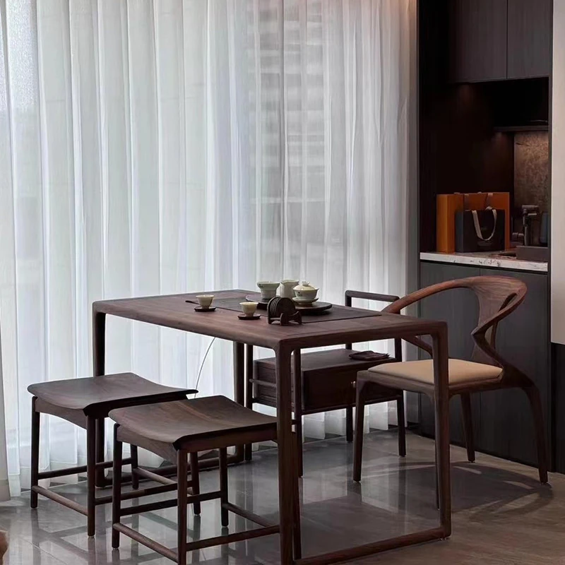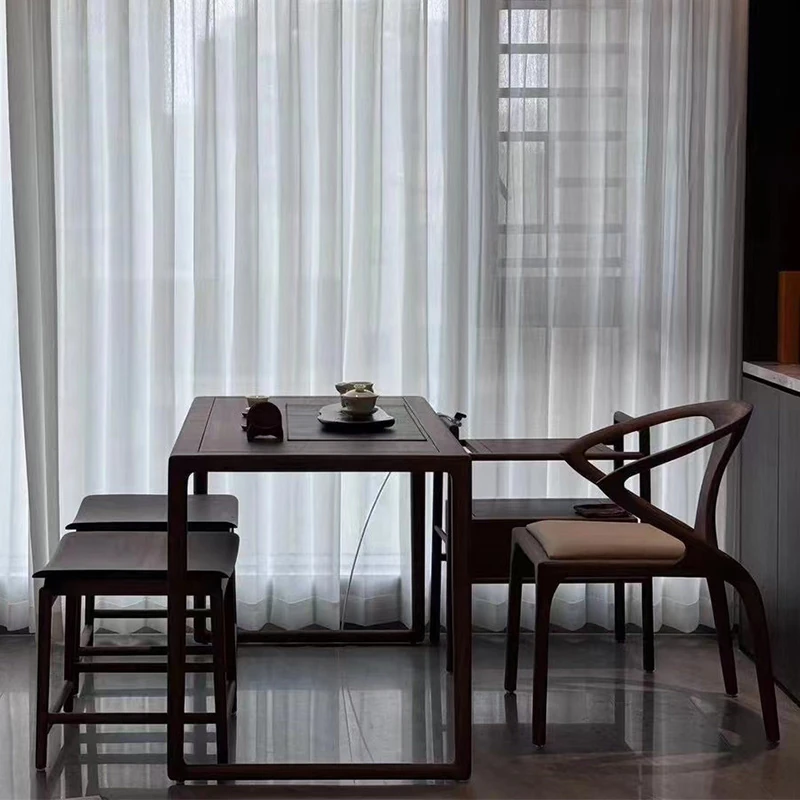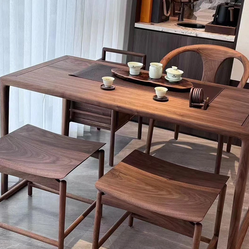 新型2025年実木製ミニ茶台 - バルコニー用の小型新中式クルミ材製、家庭用禅スタイルの簡易ティーテーブルで、心地よいひとときをお楽しみください。