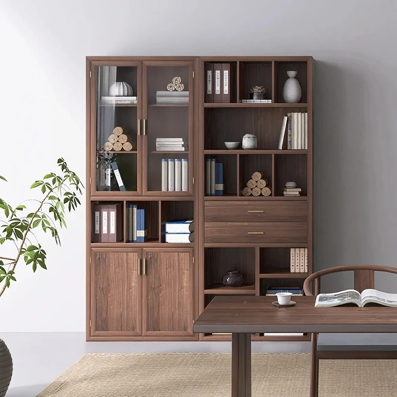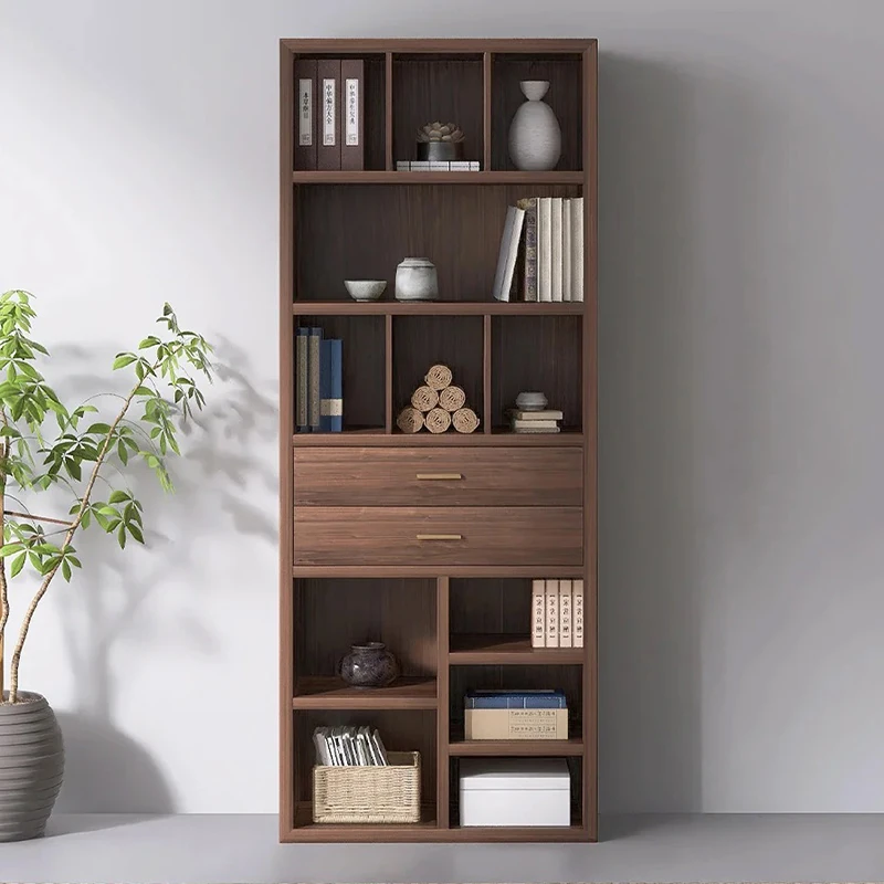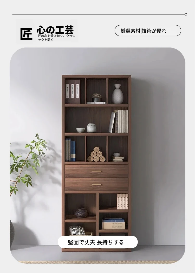 2025年新作!高級無垢材使用の新中式ウォールシェルフ - 胡桃の木製展示棚、茶室にぴったりなティーケーキラック!おしゃれで実用的なインテリアの必需品!