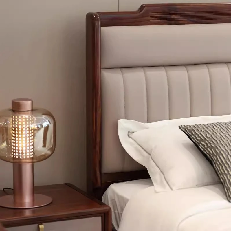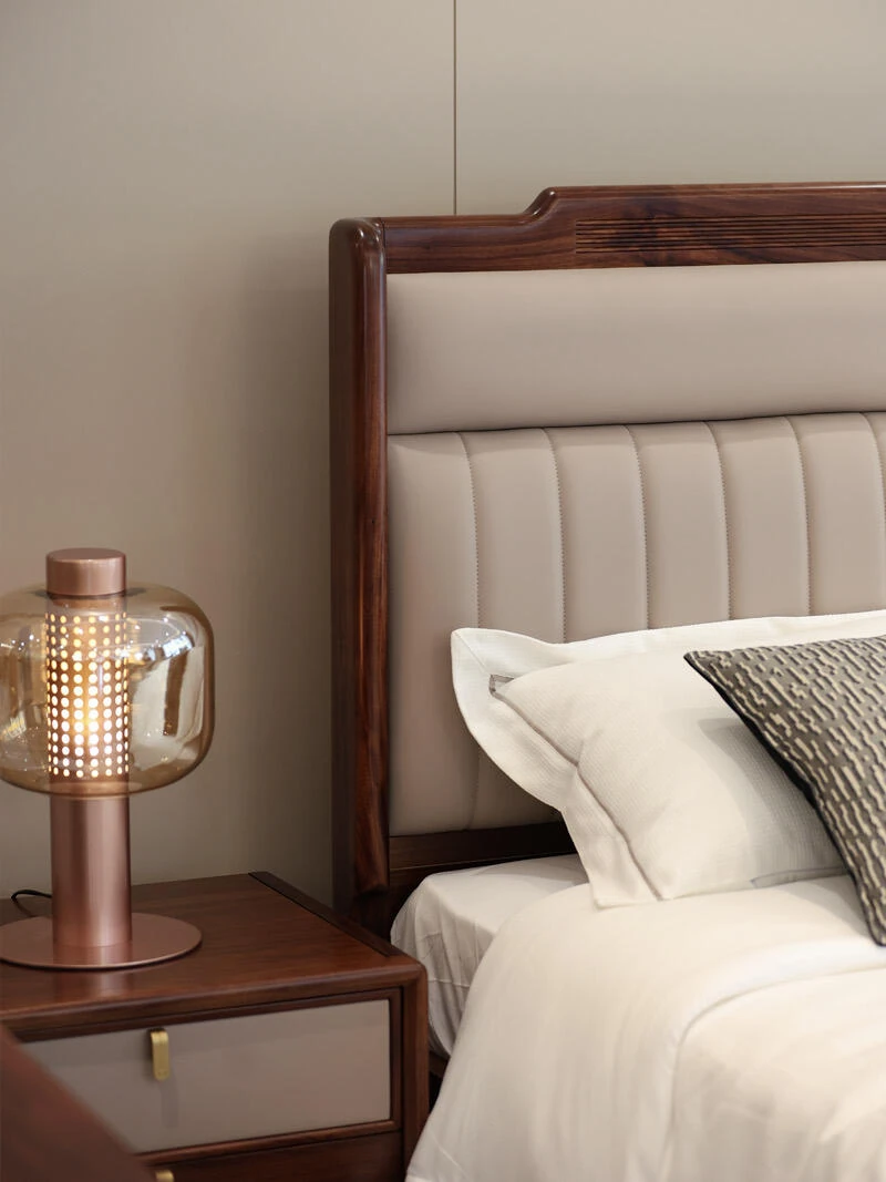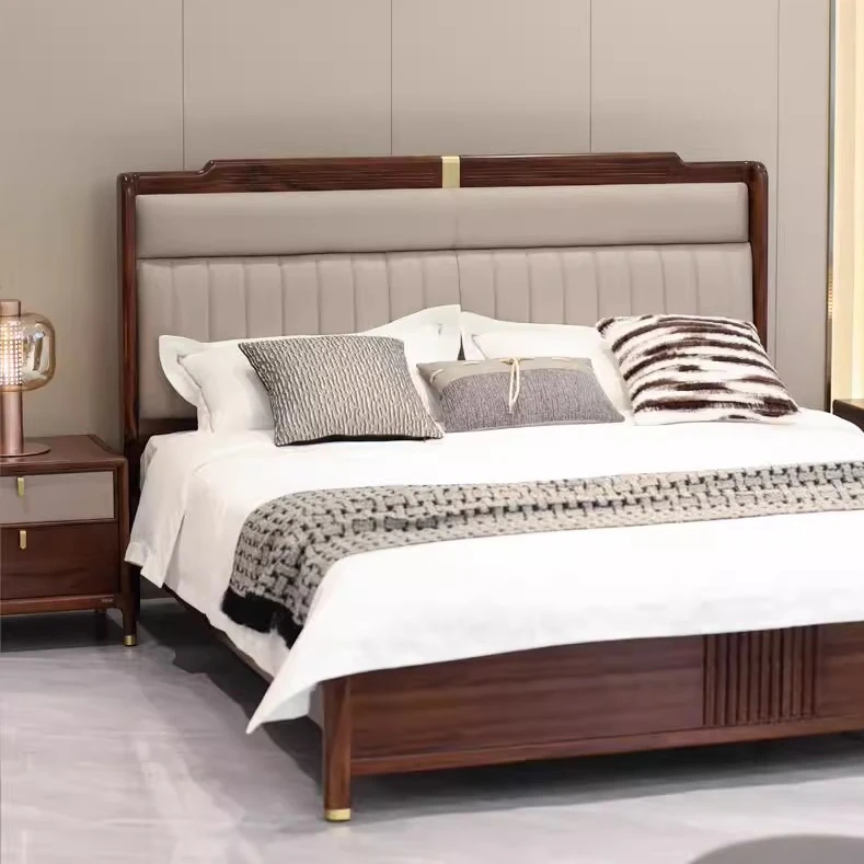 新中式スタイルの無垢材ベッド2025年新作!現代的でシンプルなデザイン、1.8メートルのダブルベッド。快適な主寝室を演出する理想的な選択!