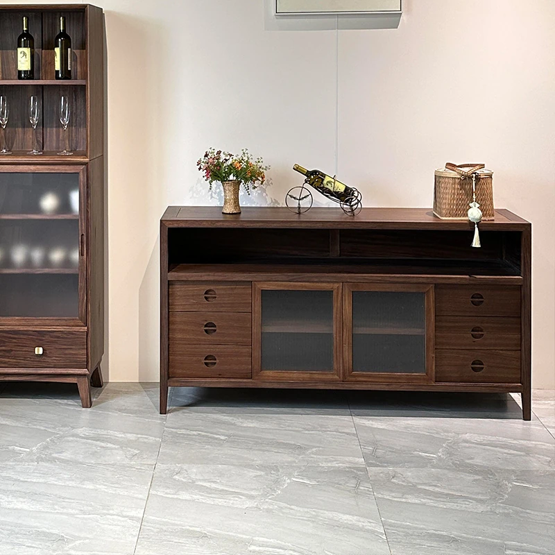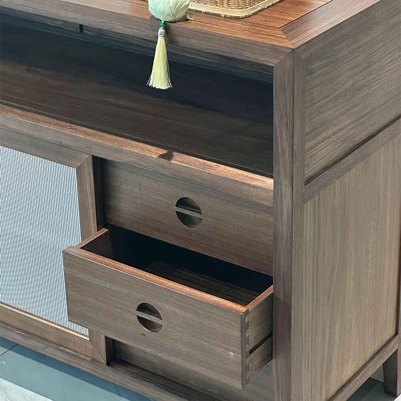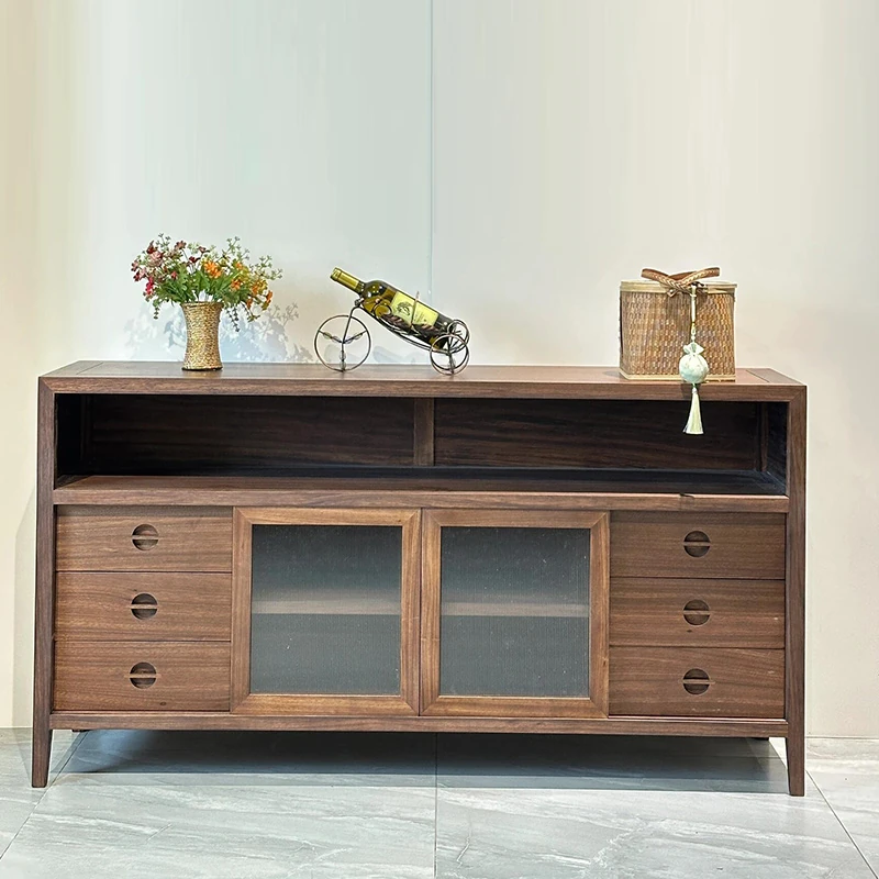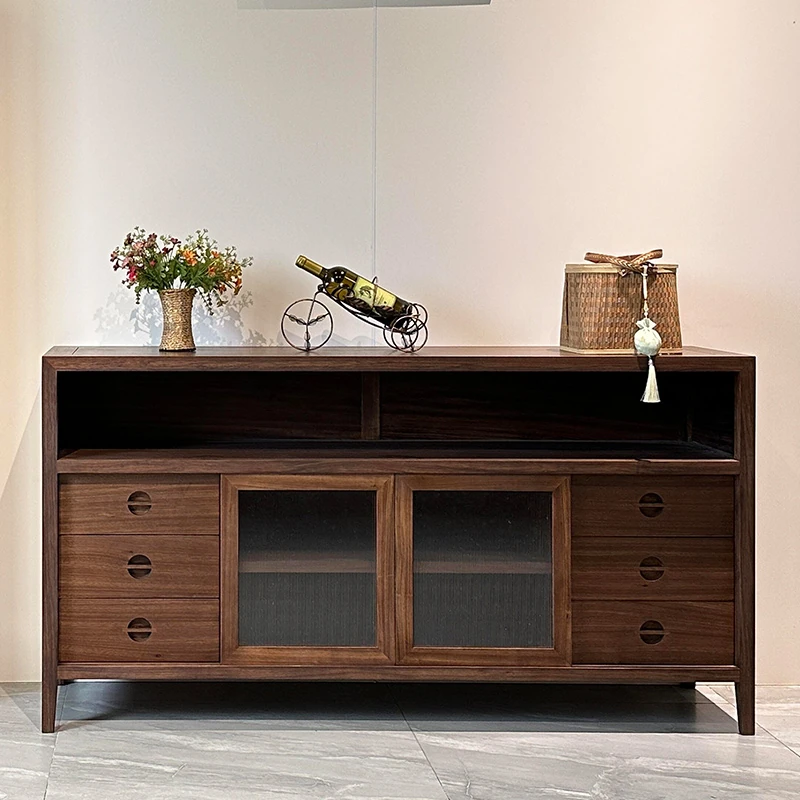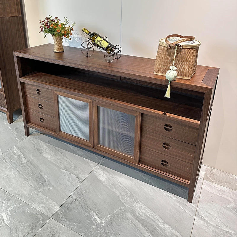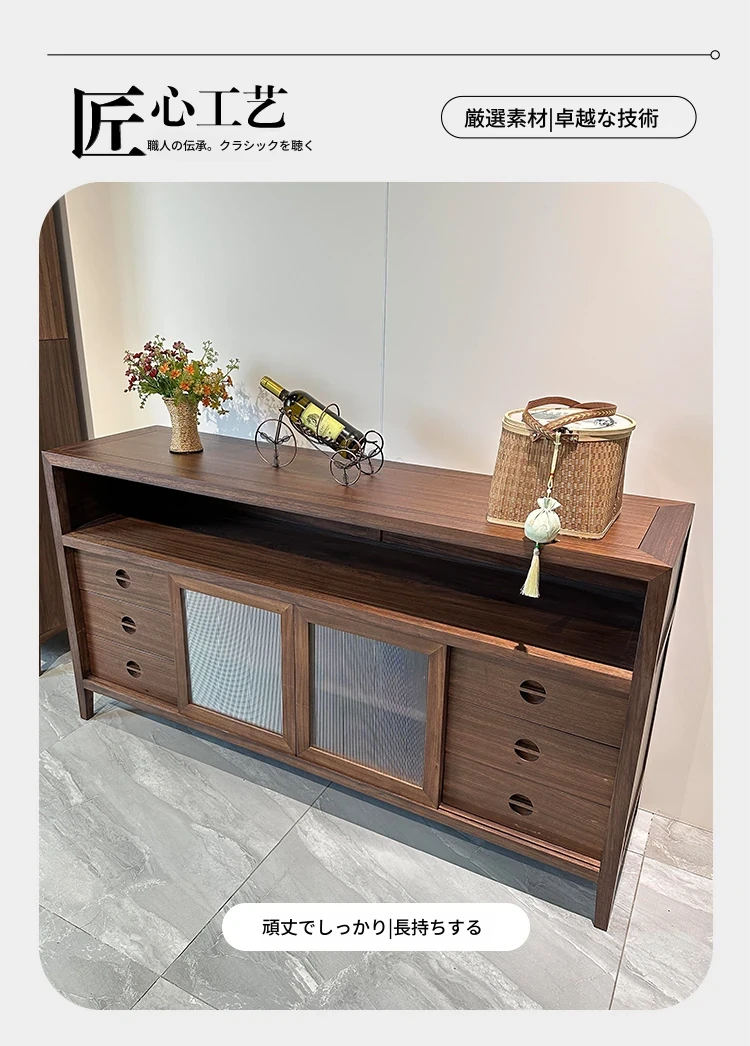 2025年新作!新中式実木製ダイニングサイドボード - モダンでシンプルなデザイン、リビングや玄関にぴったりな収納キャビネット!中古風の魅力を引き立てるアイテムをお見逃しなく!