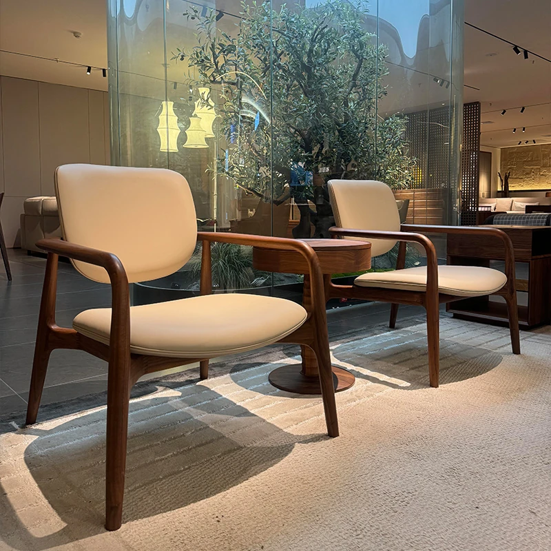 2025 New Style Solid Wood Sofa Chair - Modern Minimalist Walnut Single Sofa for Living Room, Perfect for Relaxation and Home Decor
