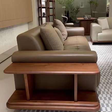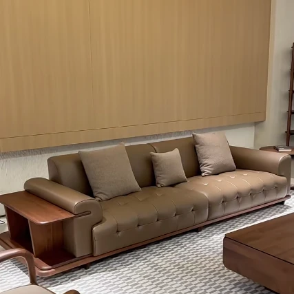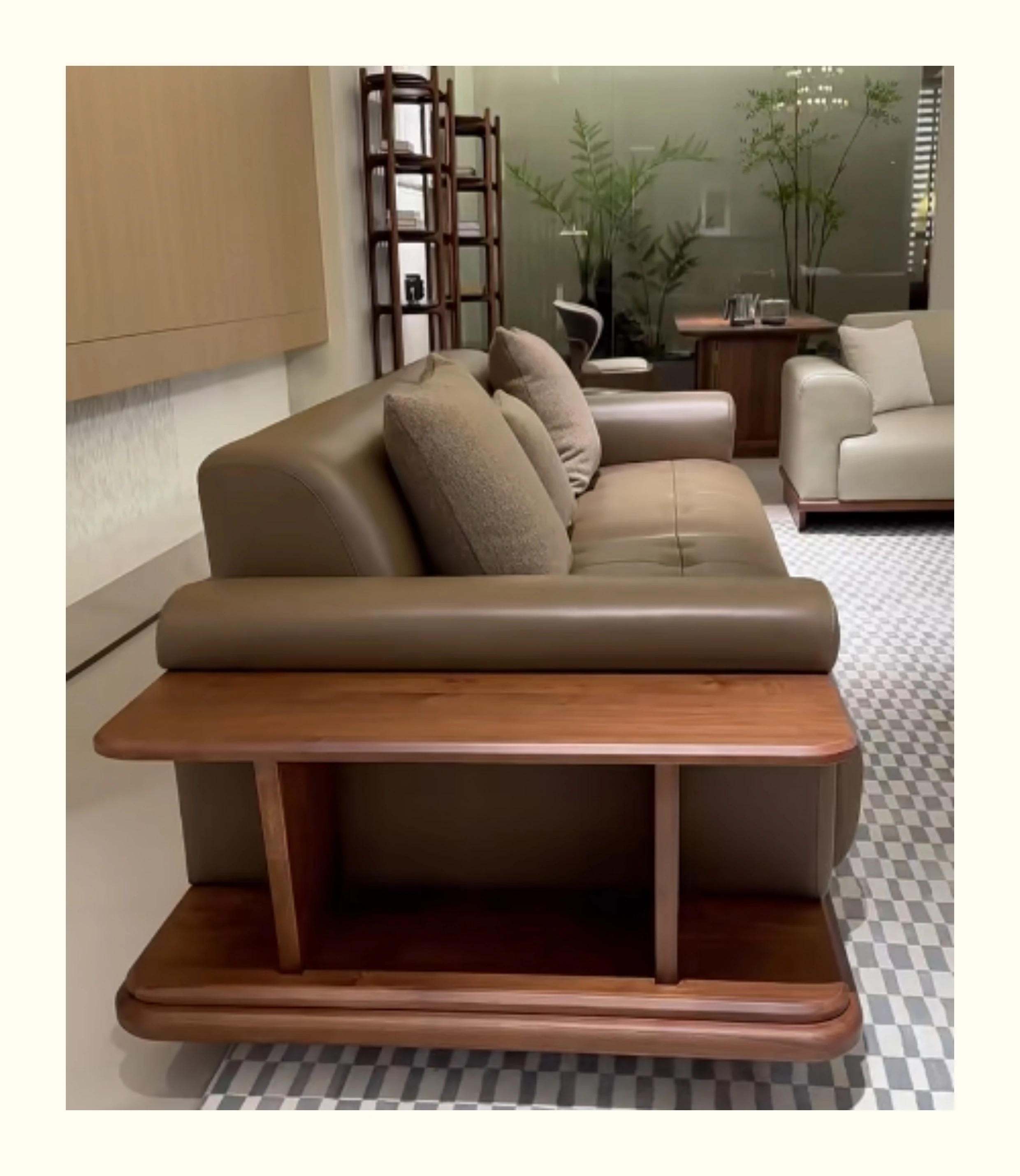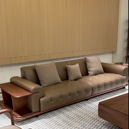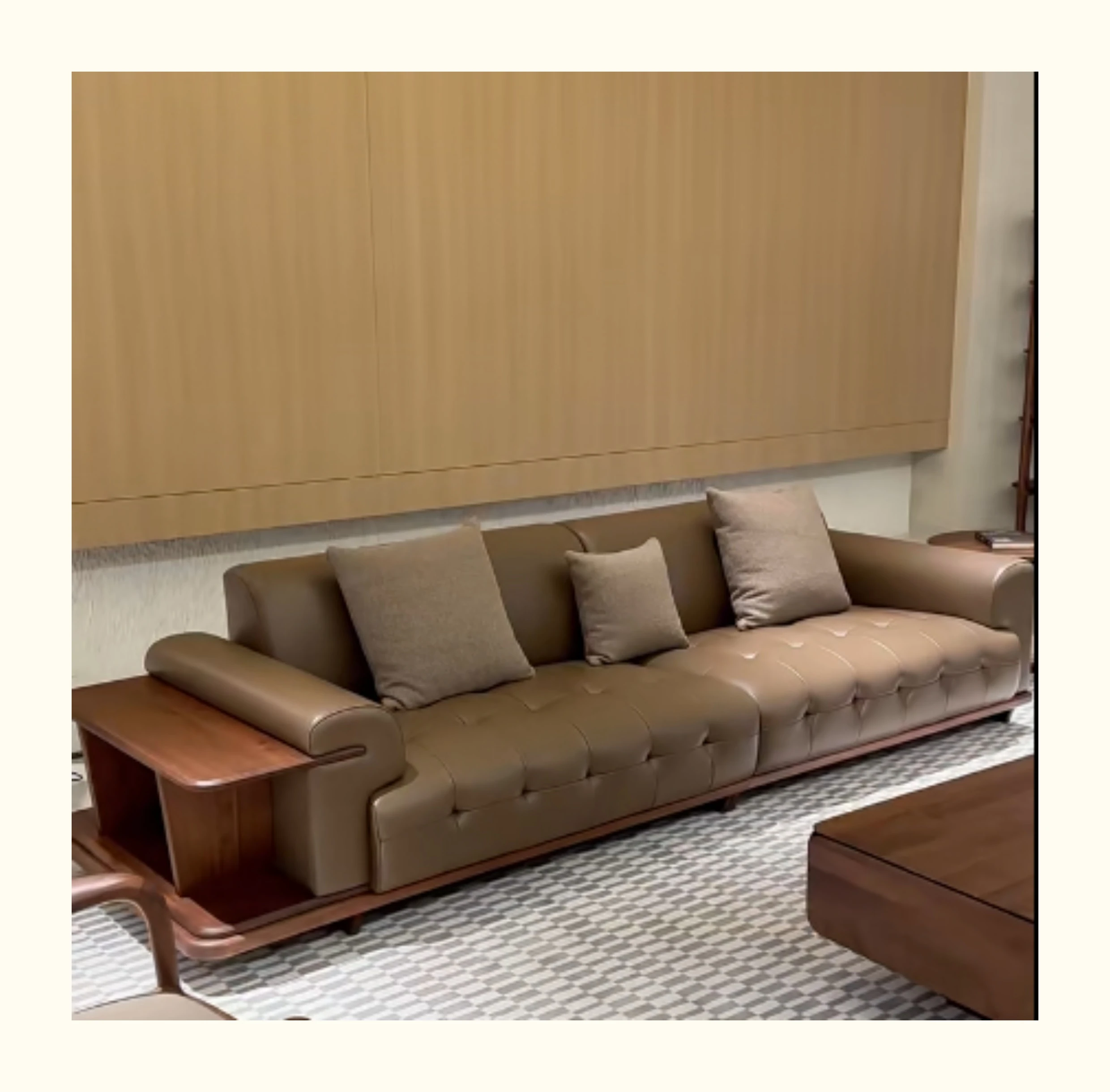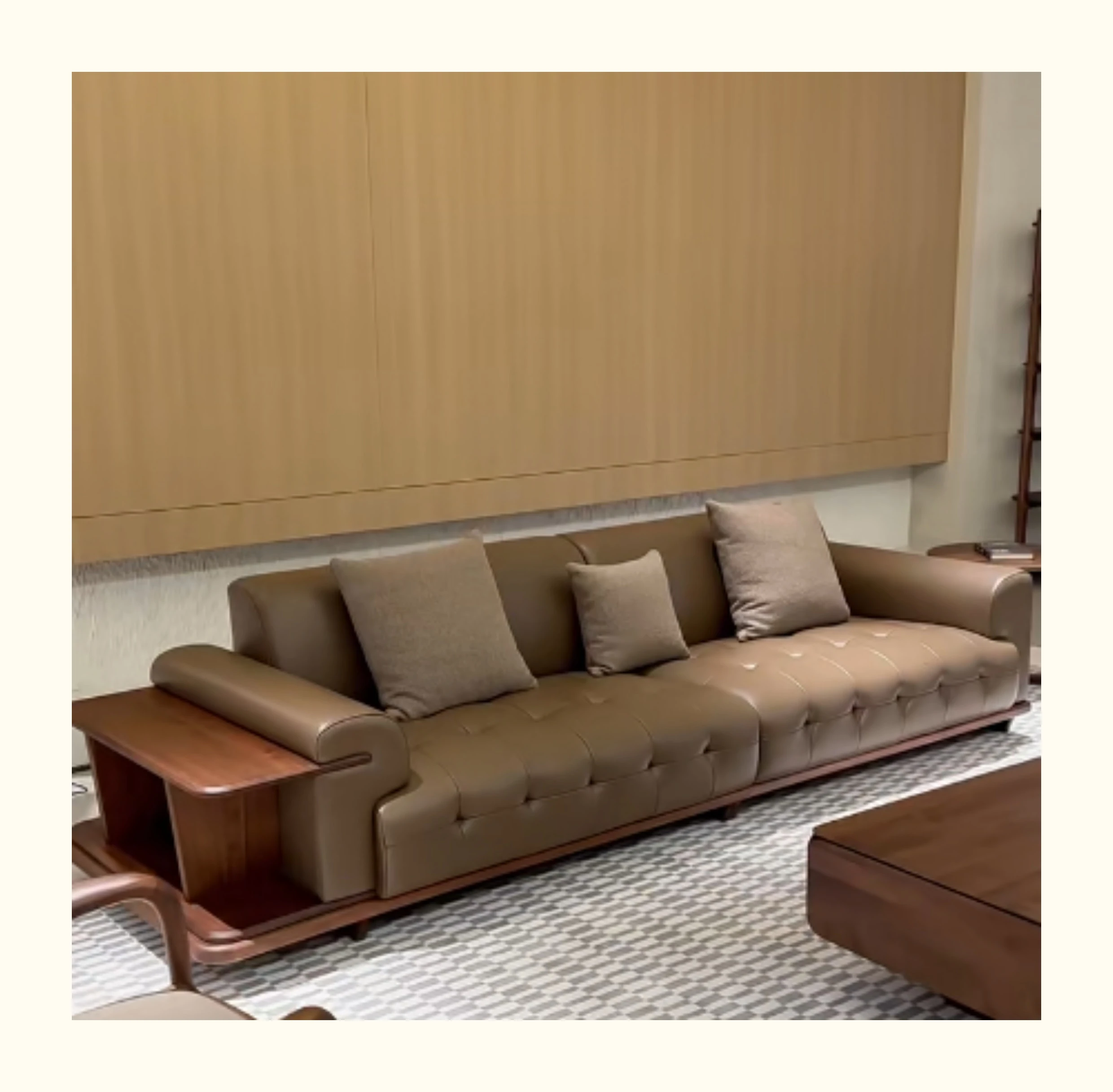 2025年新作!新中式スタイルの無垢材ソファ。モダンでシンプルなデザイン、家庭用に最適な3人掛けレザーソファ。ウォールナットの美しい木目で、おしゃれなリビングを演出します!