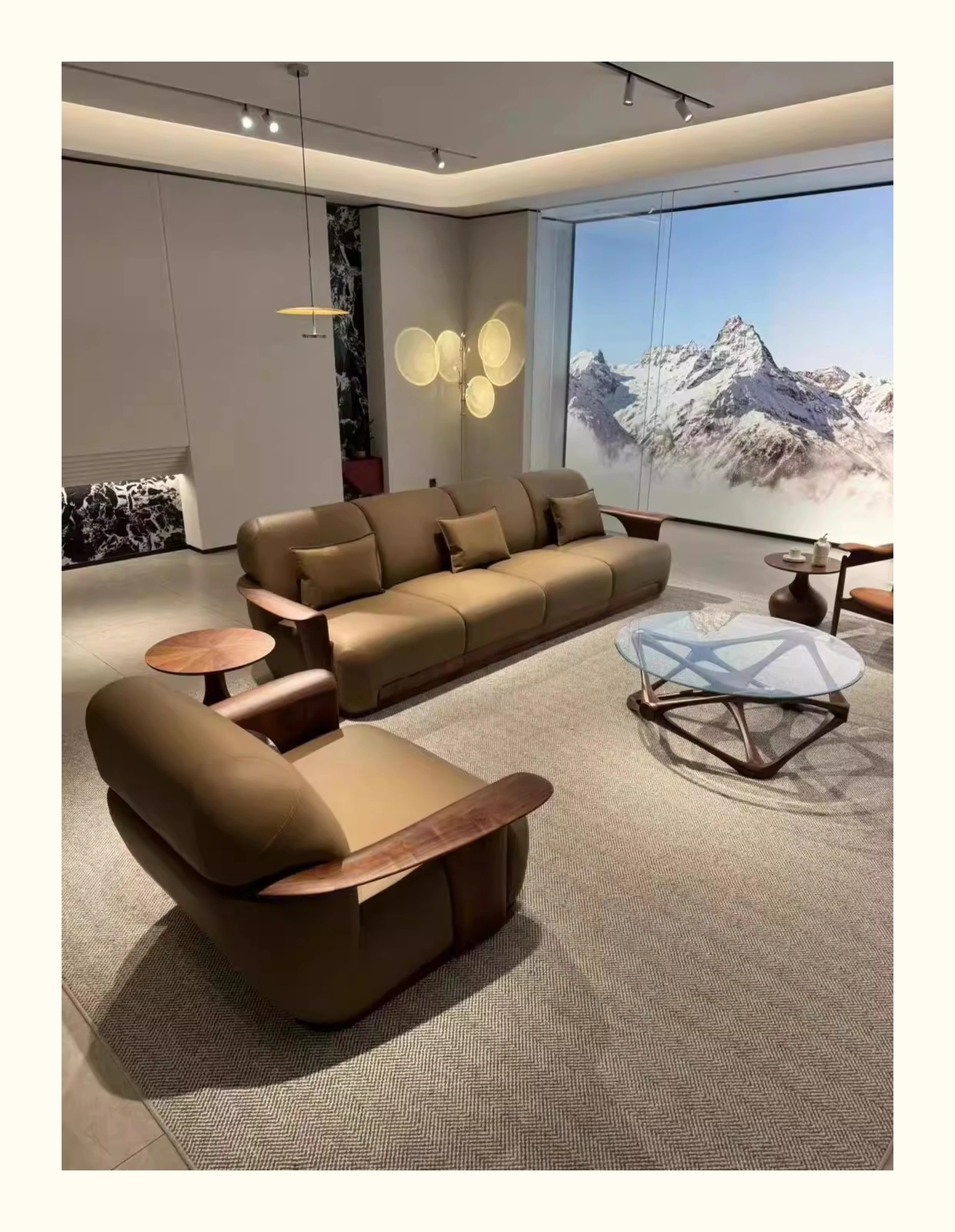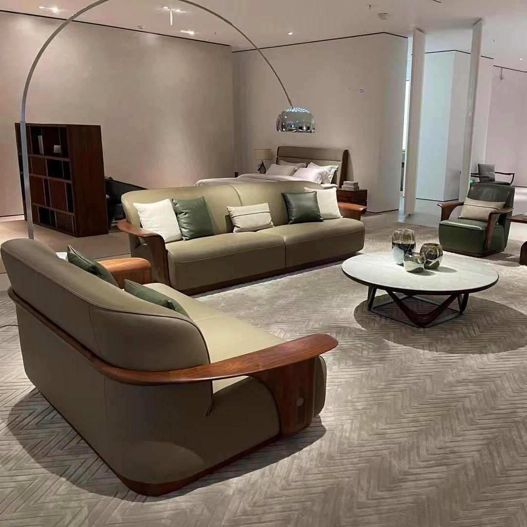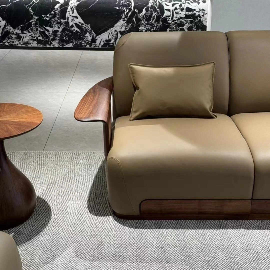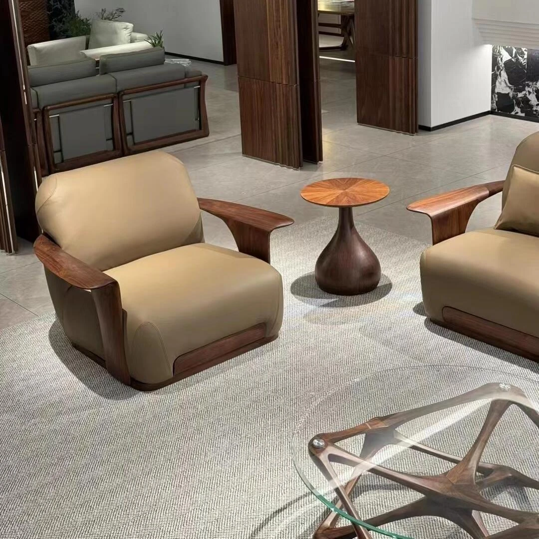 2025年最新款新中式実木ソファー|モダンでシンプルな胡桃木製リビング用ソファーセット|心地よいデザインで、くつろぎの空間を演出!
