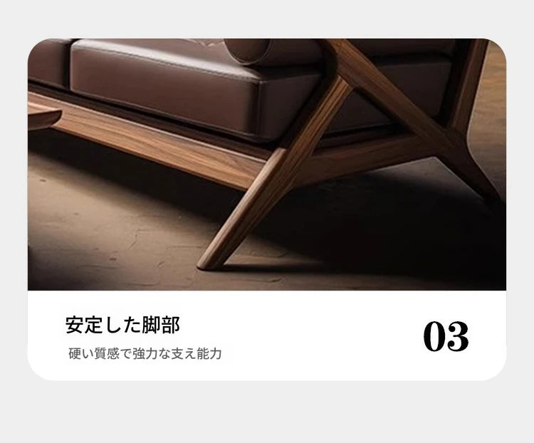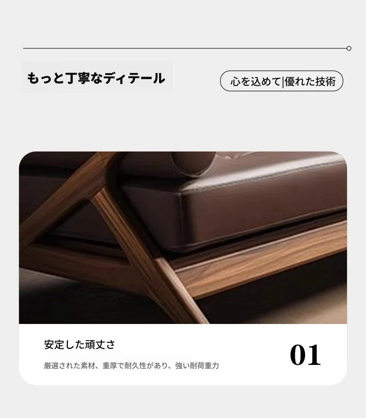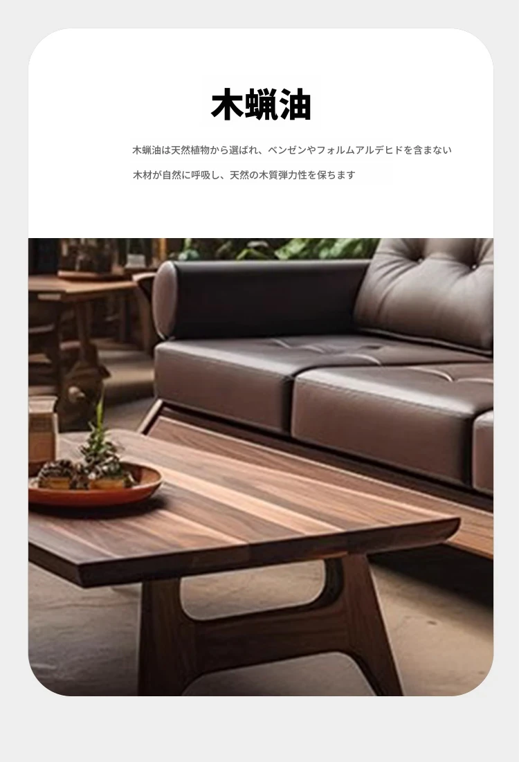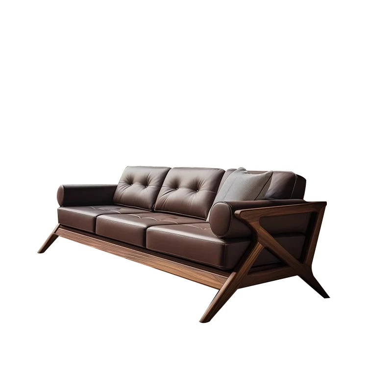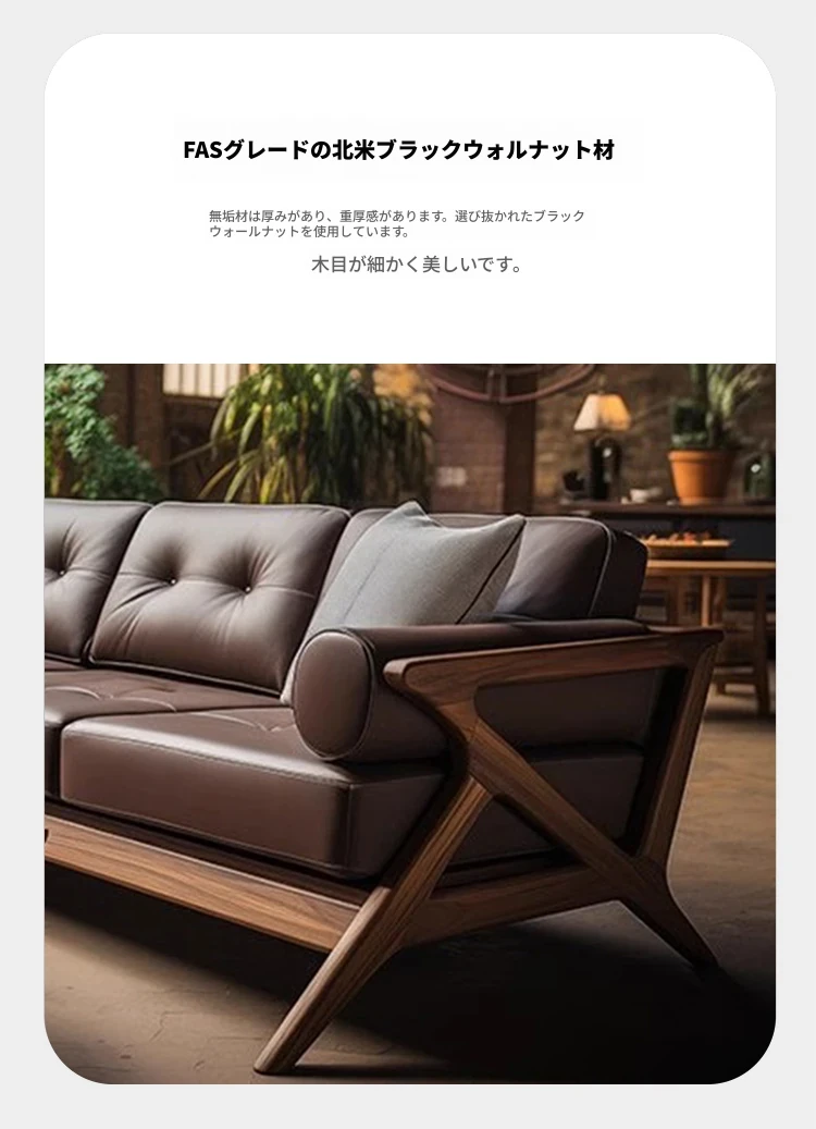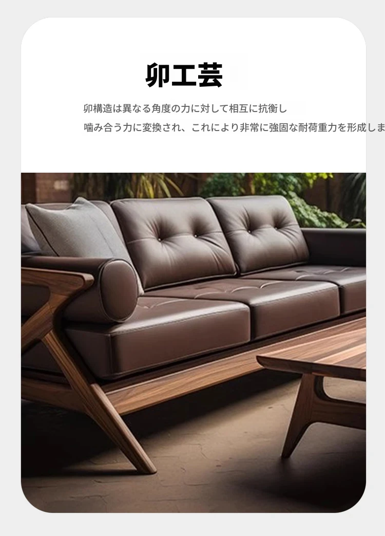 2025年新作!ヴィラスタイルの新中式本革&ウッド製3人掛けソファ - 高級感溢れるウォールナット仕上げで、リビングルームを華やかに演出!