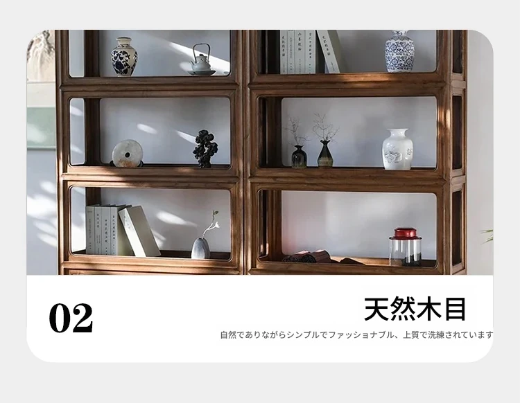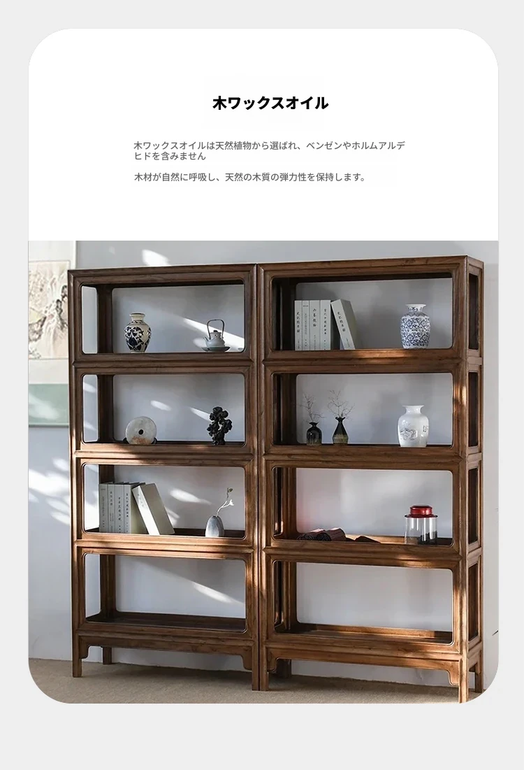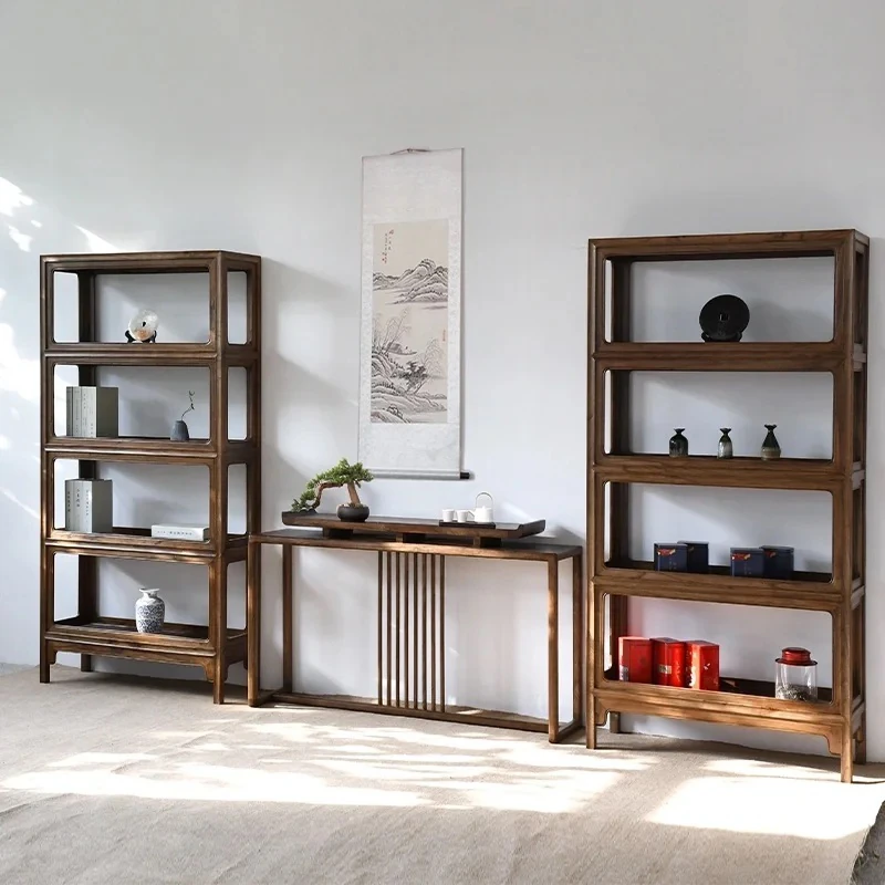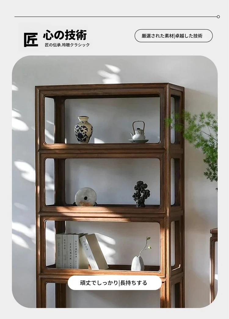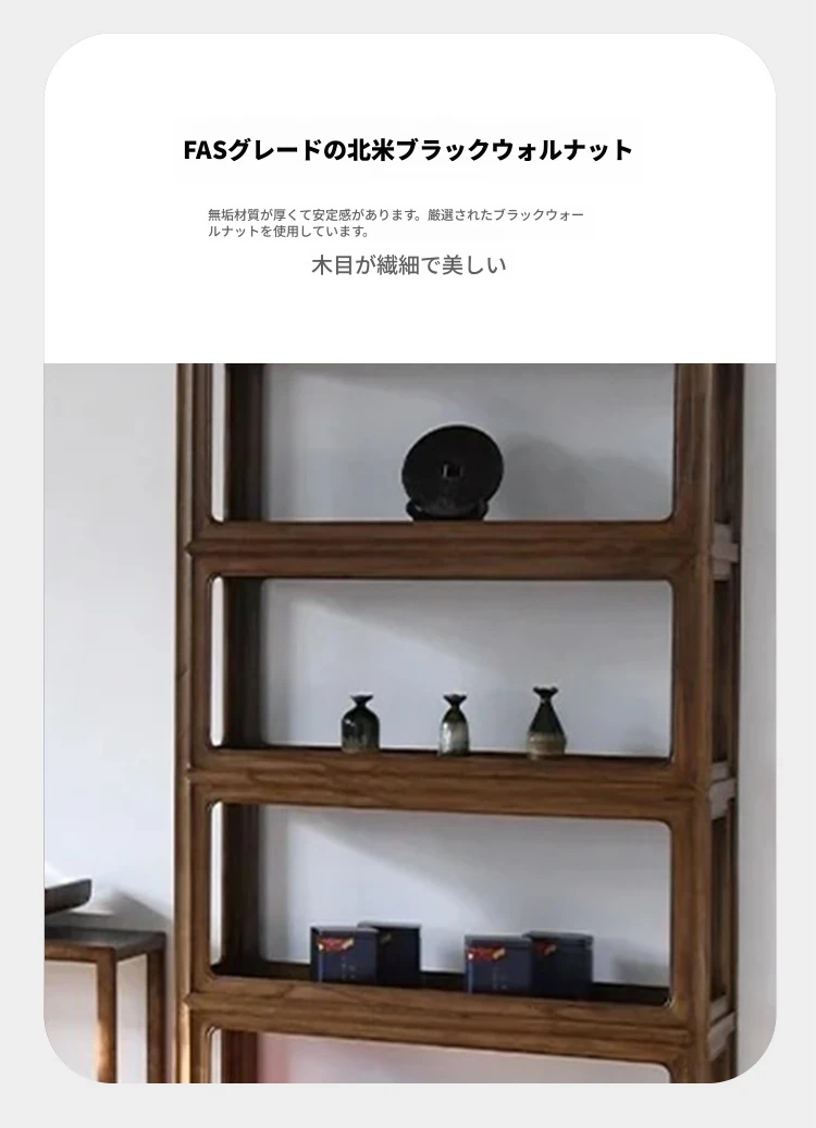 2025年新作!胡桃木製の博古架 - シンプルでスタイリッシュな新中式デザインの多宝阁展示棚。茶葉や茶饼を美しくディスプレイし、茶室にぴったりの実木製品です。高級感あふれるインテリアを演出!