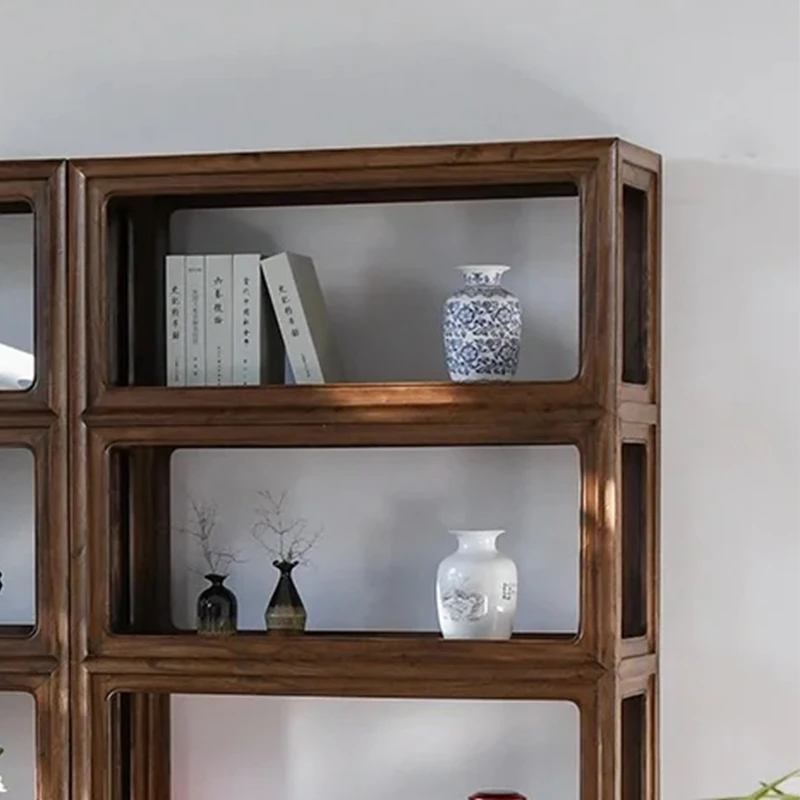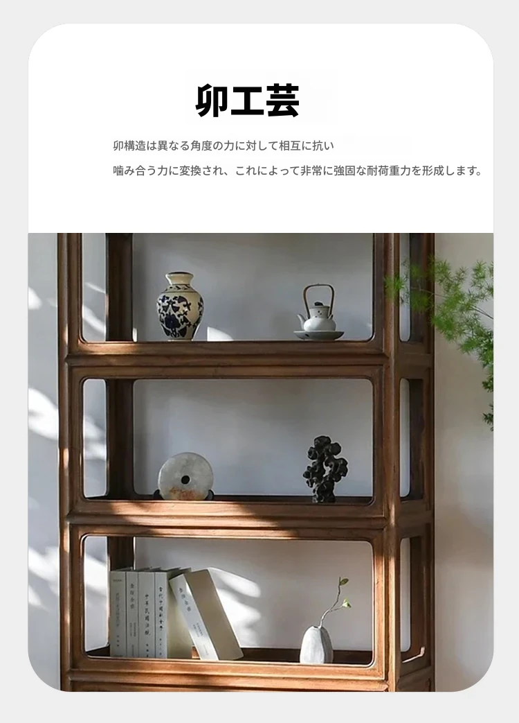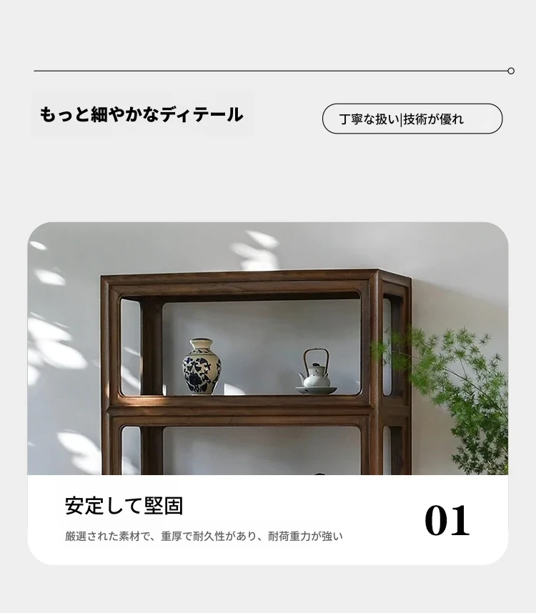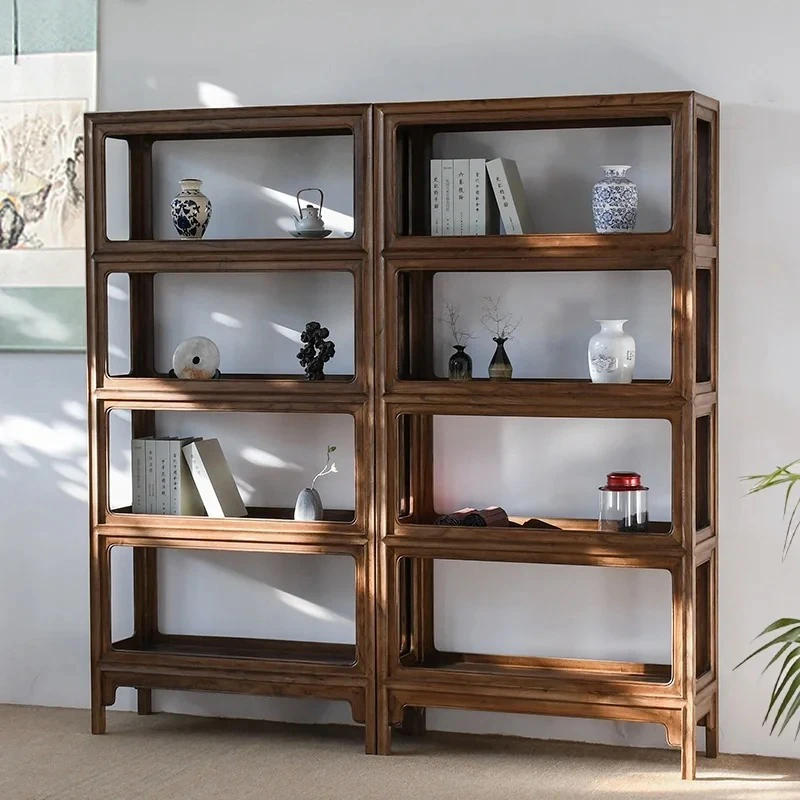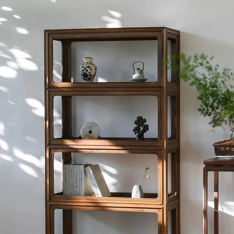2025年新作!胡桃木製の博古架 - シンプルでスタイリッシュな新中式デザインの多宝阁展示棚。茶葉や茶饼を美しくディスプレイし、茶室にぴったりの実木製品です。高級感あふれるインテリアを演出!