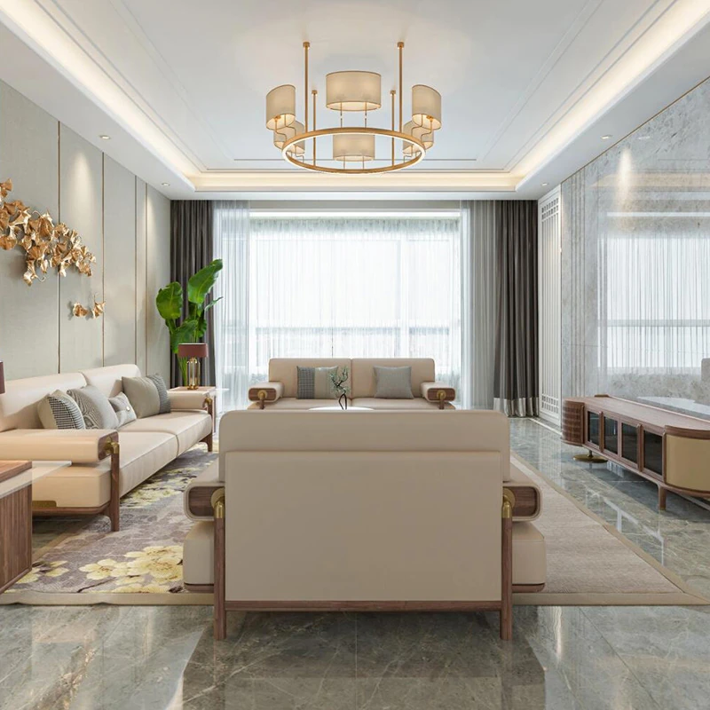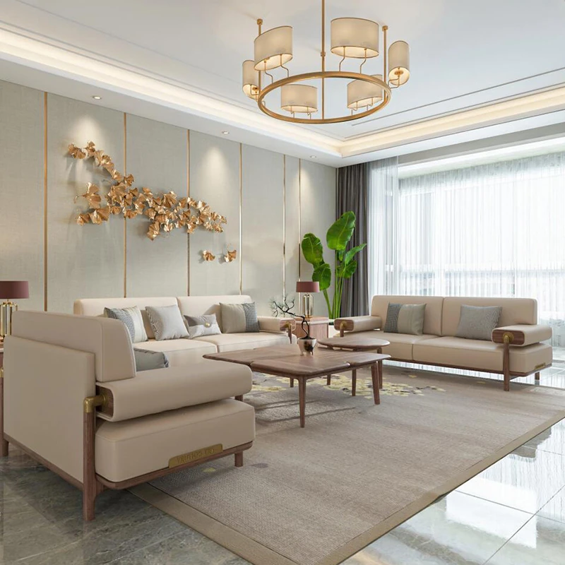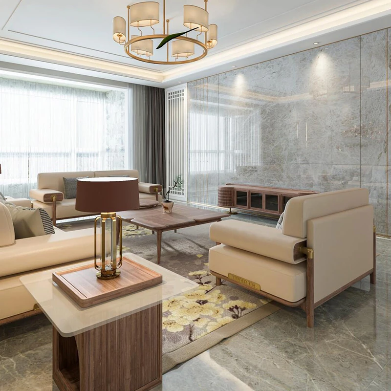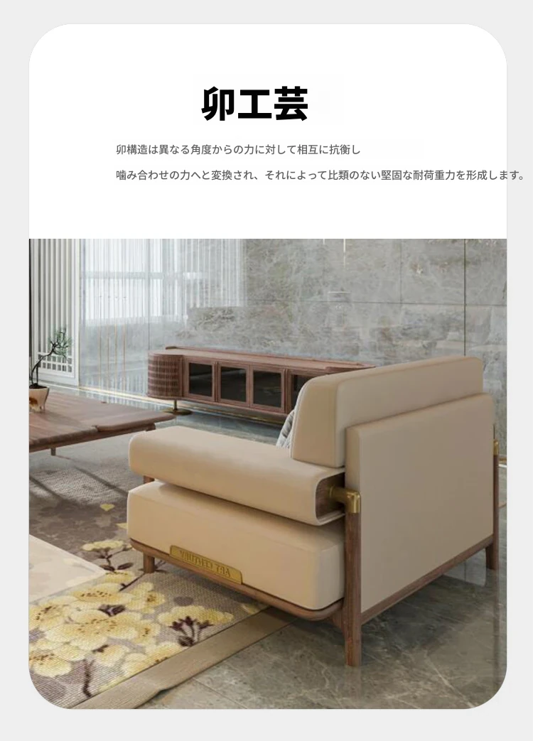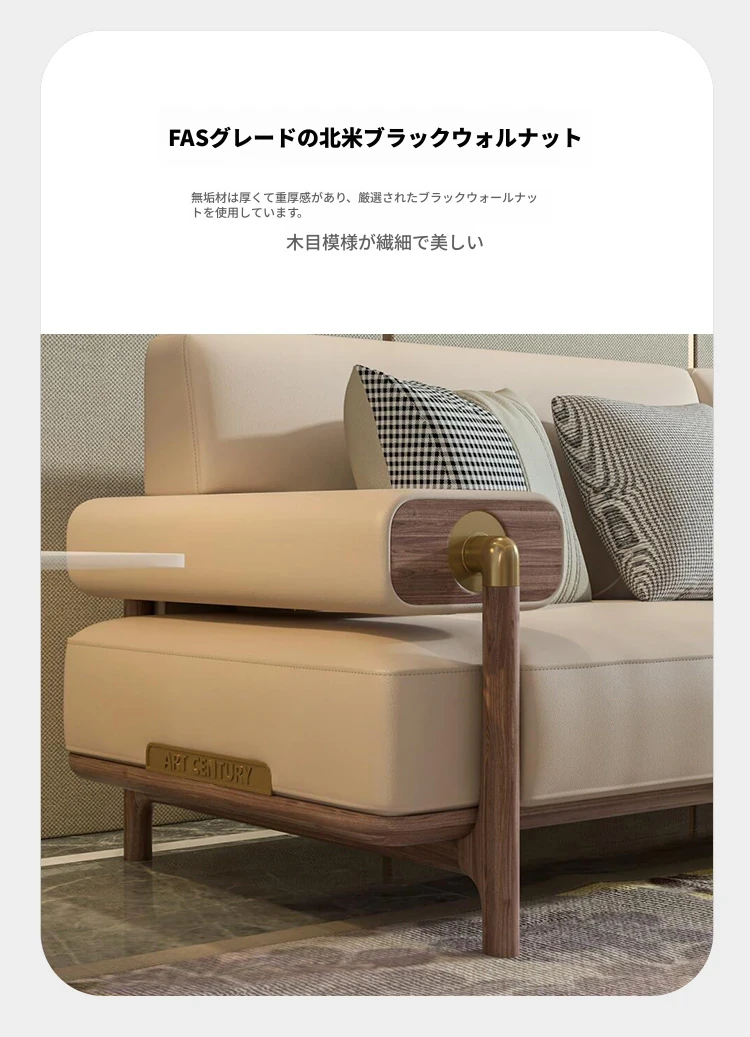 2025年新作!胡桃木風格の皮革ソファ - おしゃれなリビングやオフィス休憩エリアに最適な新中式デザインの実木ソファ。快適さと高級感を兼ね備えた、あなたの家にぴったりのアイテムです!