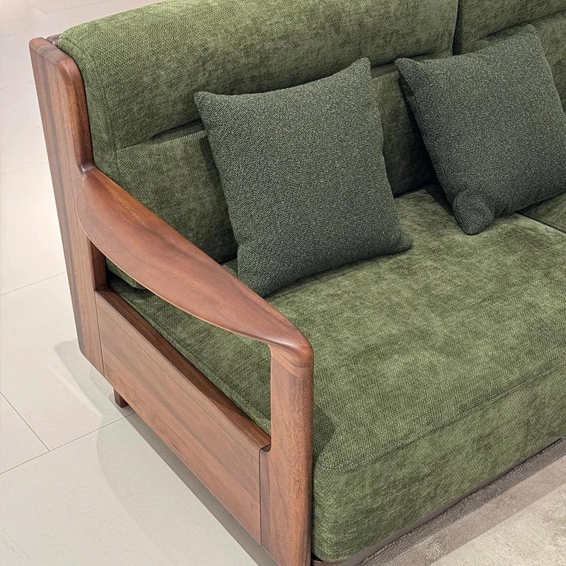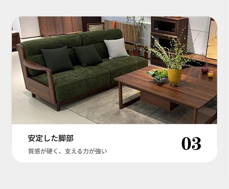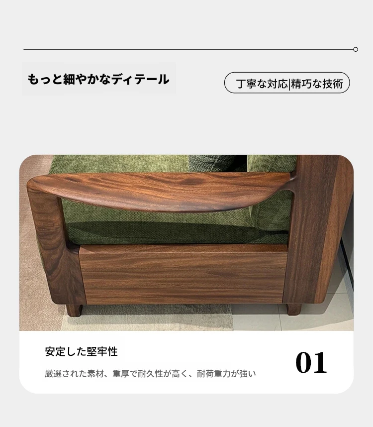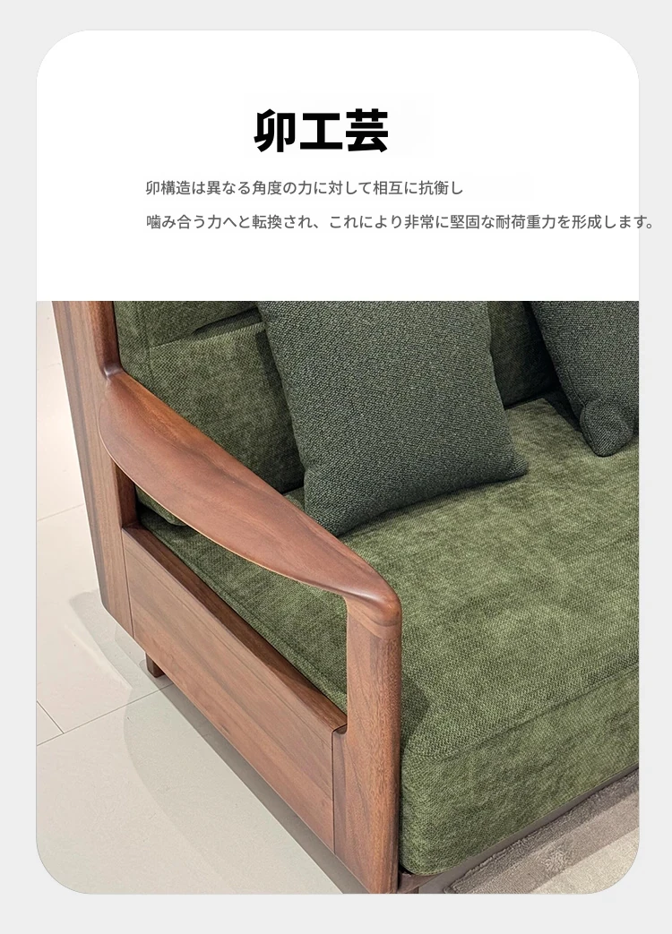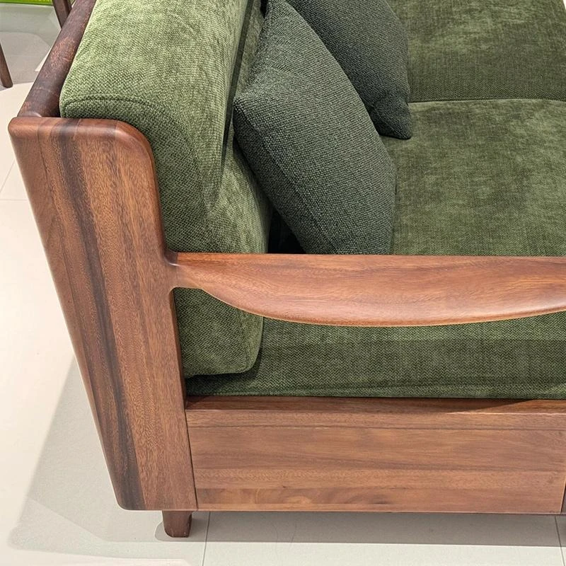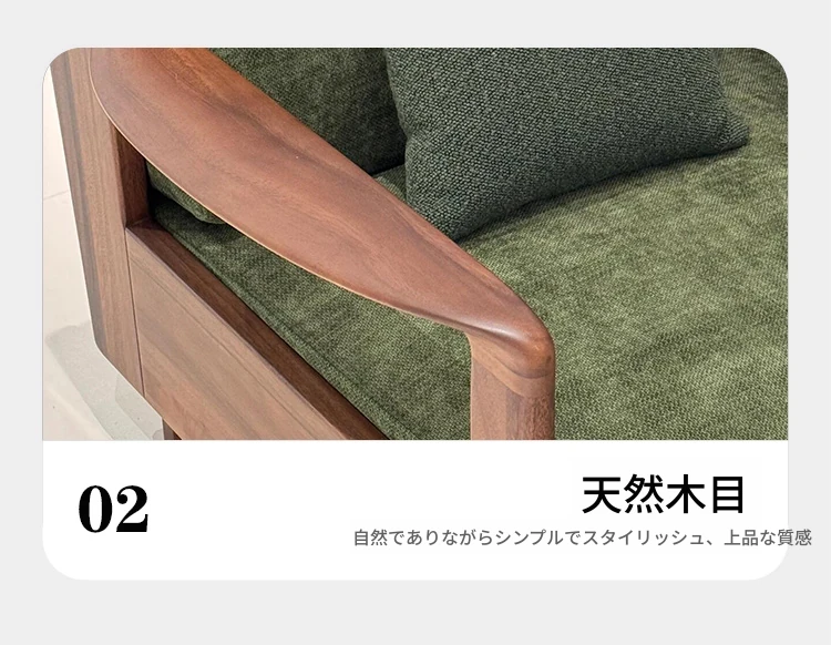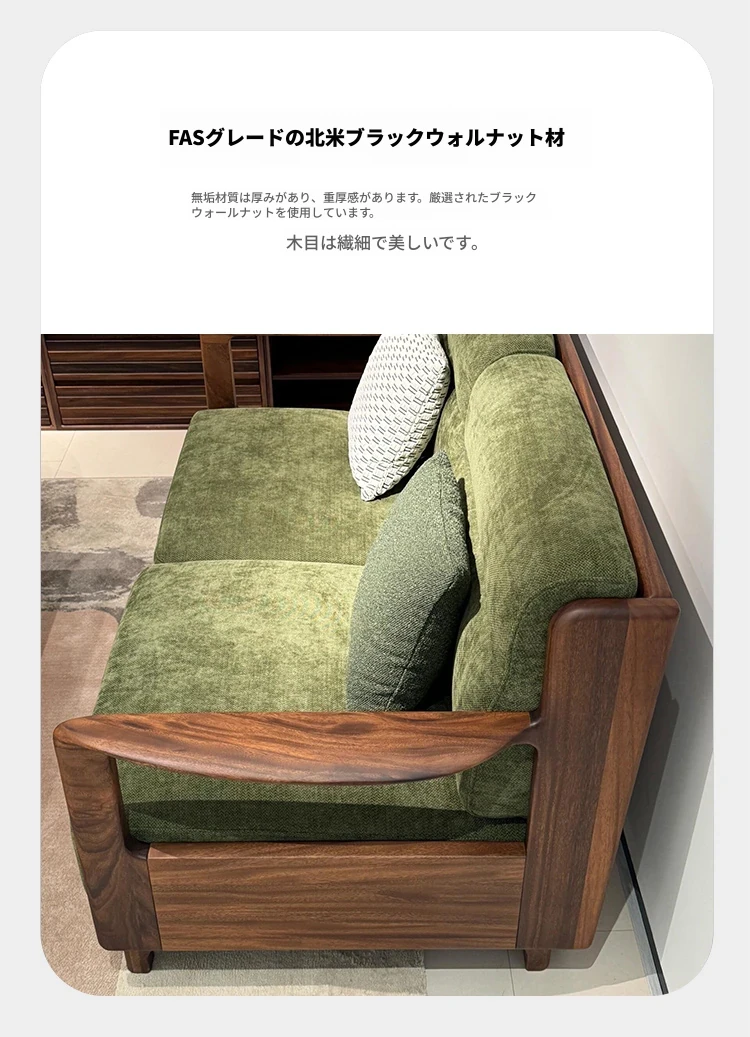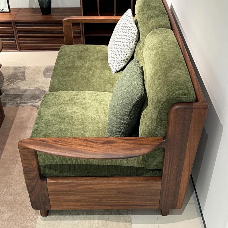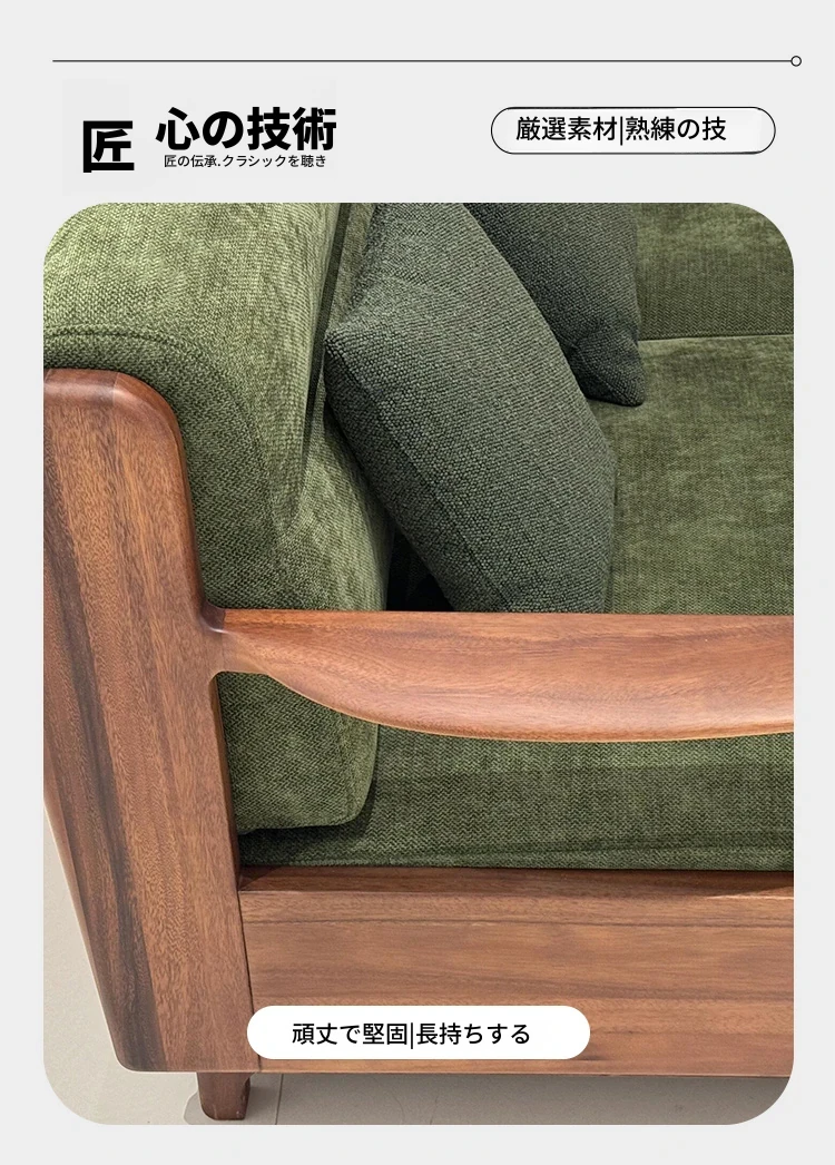 2025年新作!胡桃木軽奢直排ソファー - 新中式デザインの3人掛け高級感あふれる実木製、別荘のリビングにぴったり!