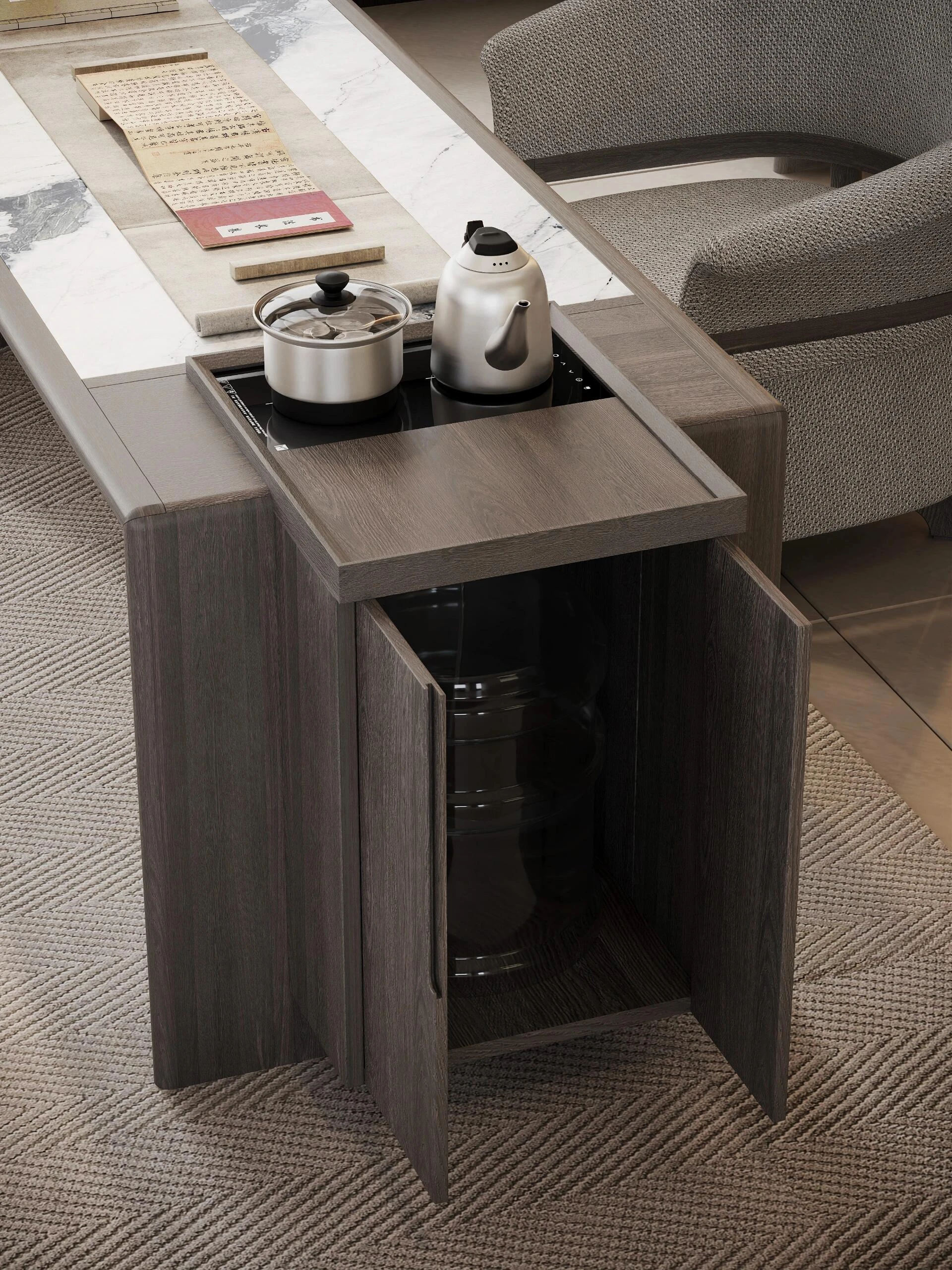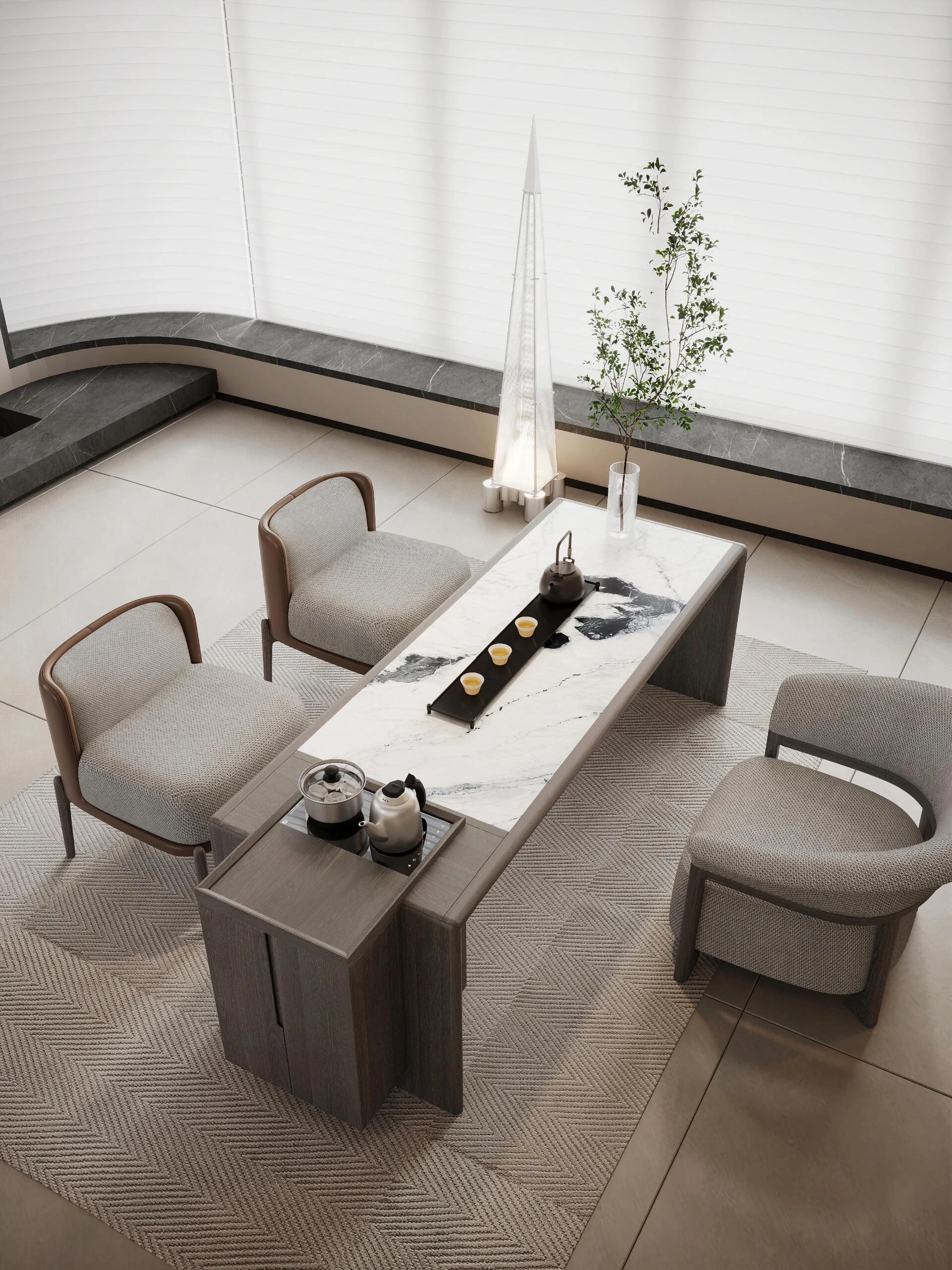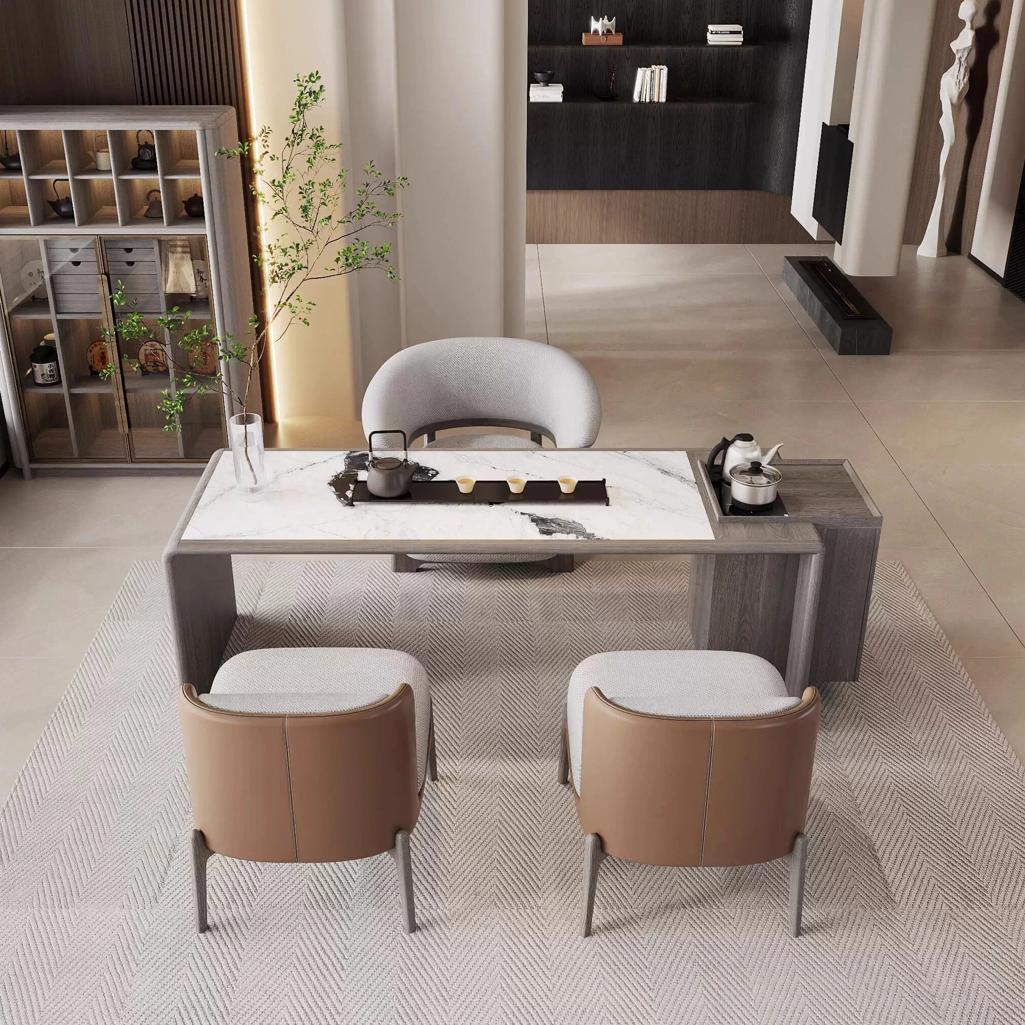 2025年新作!ウォールナット製のモダンミニマリストデザイン茶卓 - 本格的な木製のティーテーブル、新中式スタイルの家庭用ダイニングテーブル。おしゃれで機能的、心地よいひとときを提供します!