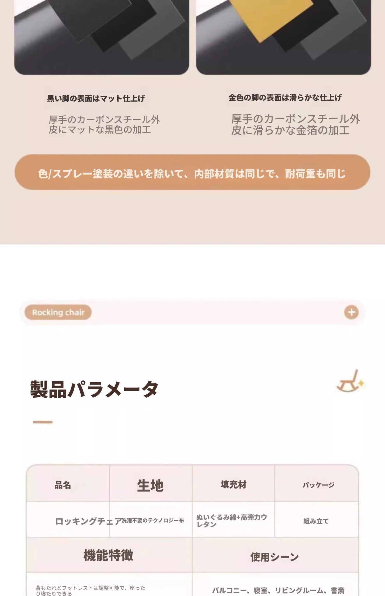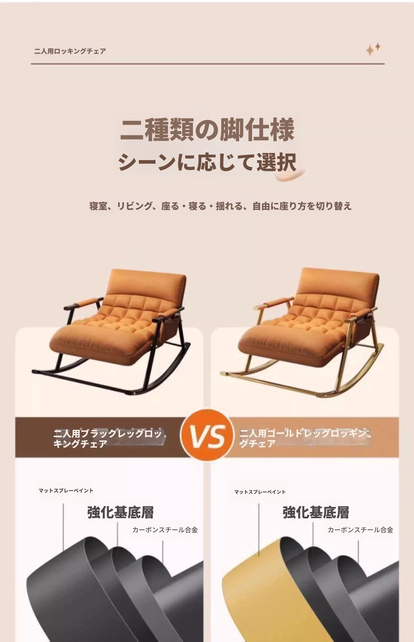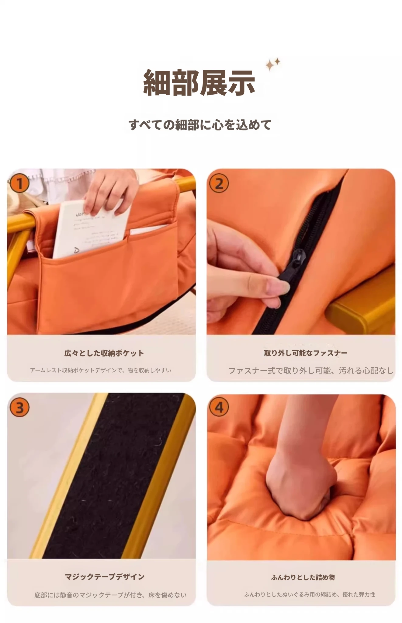 【アップグレードフットレストモデル】オレンジのテクノロジー生地 - 金脚