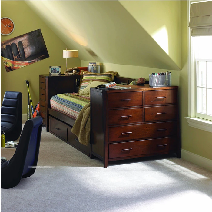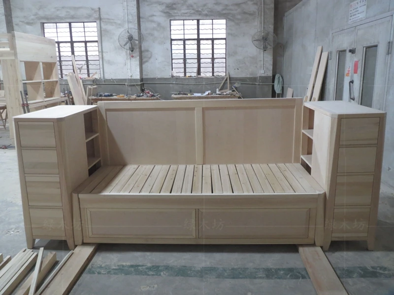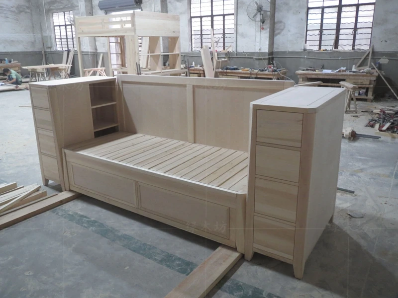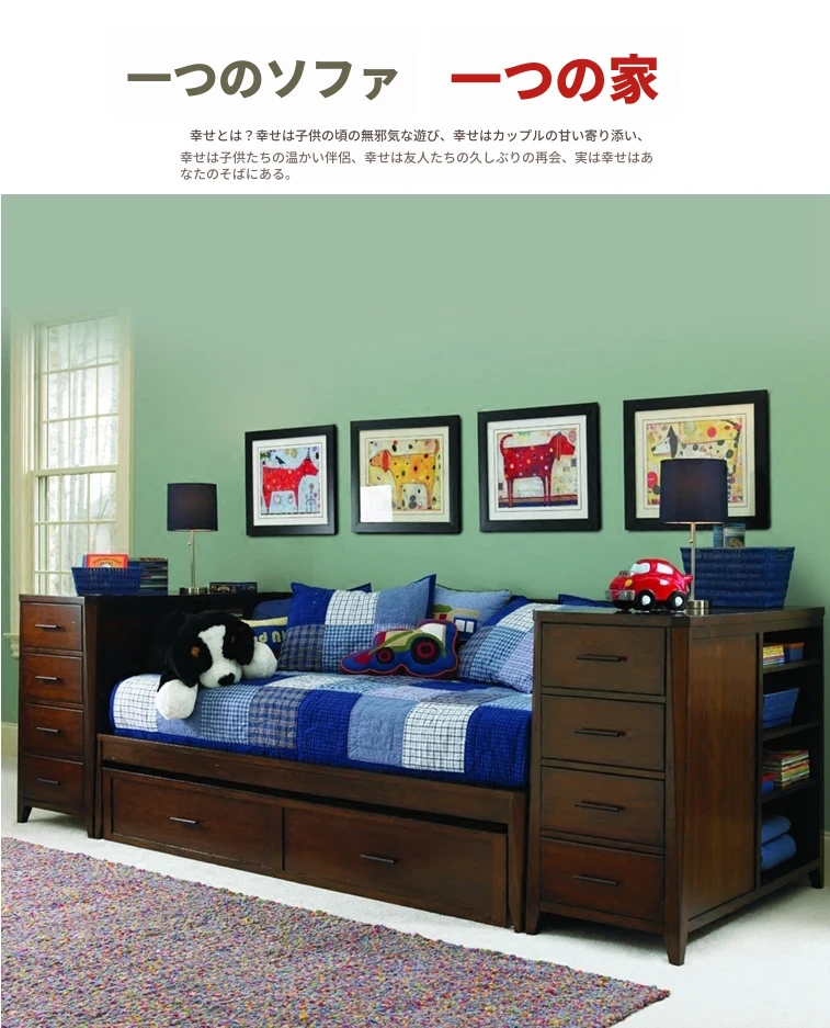 アメリカンスタイルの無垢材ソファベッド - 引き出し式多機能デザイン!リビングや小さな部屋に最適なコンビネーション収納付き、シングル&ダブル両用。おしゃれで機能的な空間を演出します!