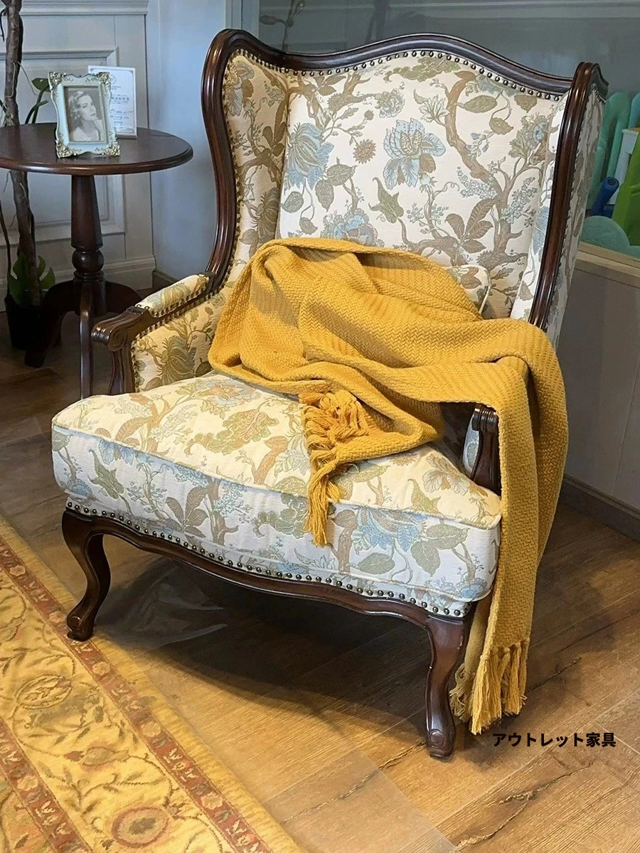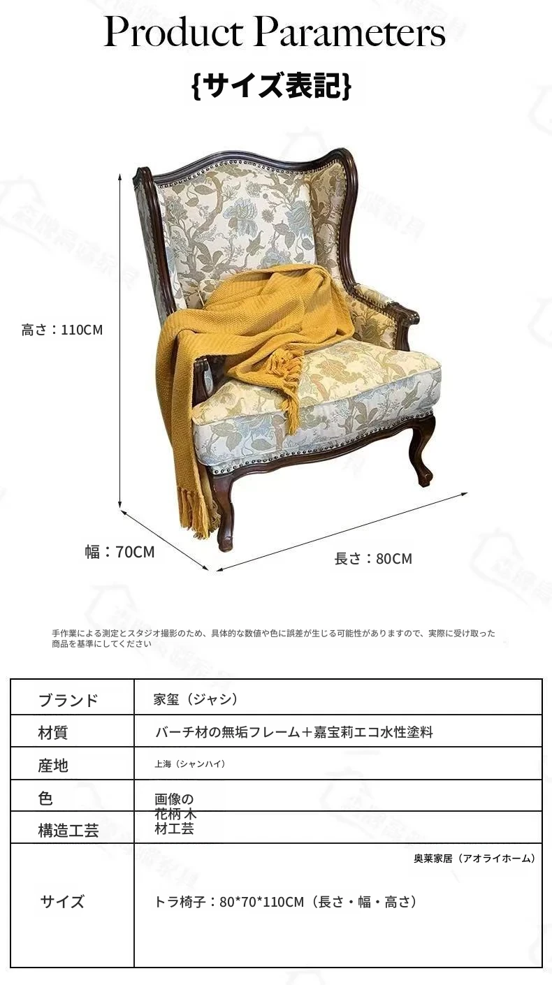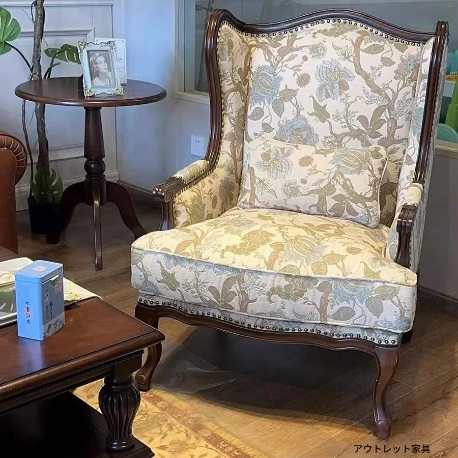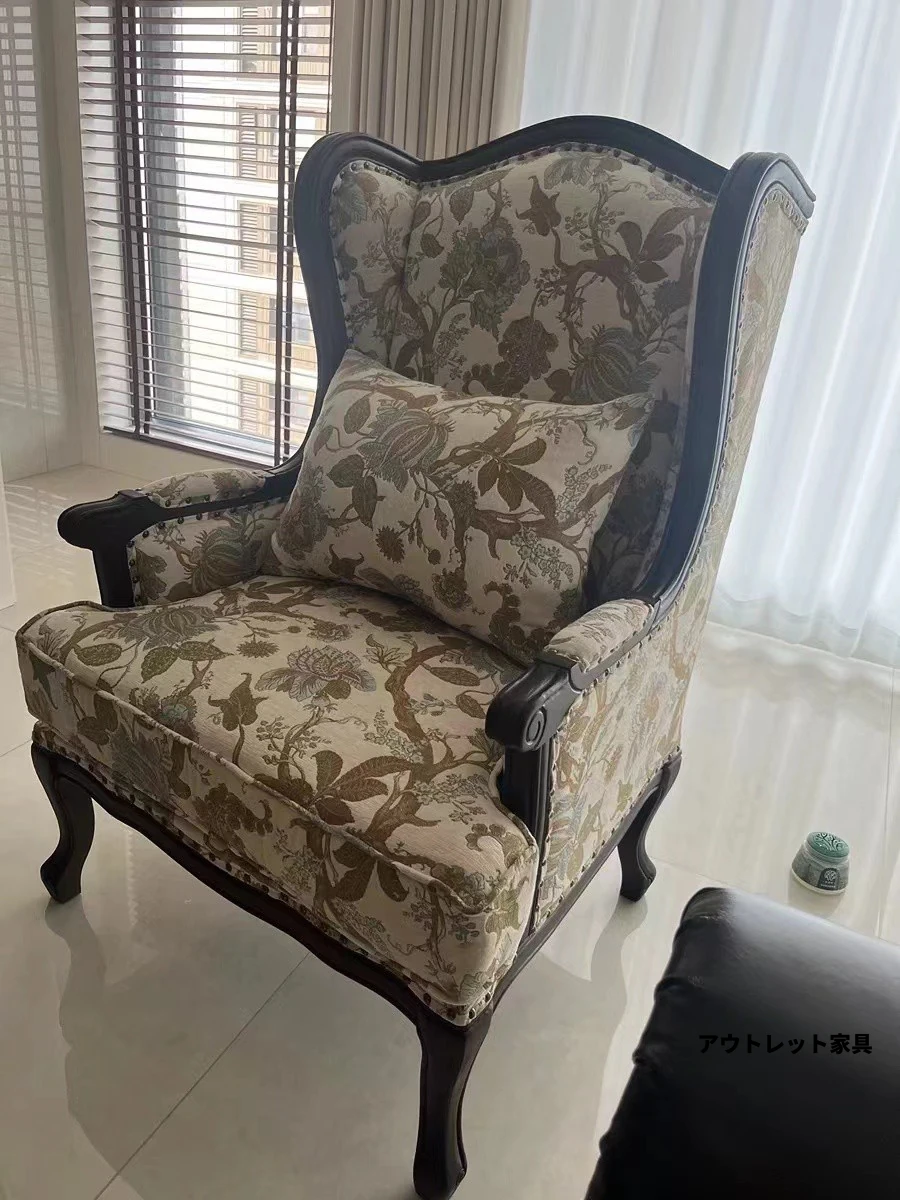 アメリカンレトロ天然木製タイガーチェア フランス風リビング布製ソファチェア リラックスできる一人掛けバックレストソファチェア どんなインテリアにもマッチするおしゃれなデザインで、快適なひとときをお届けします!