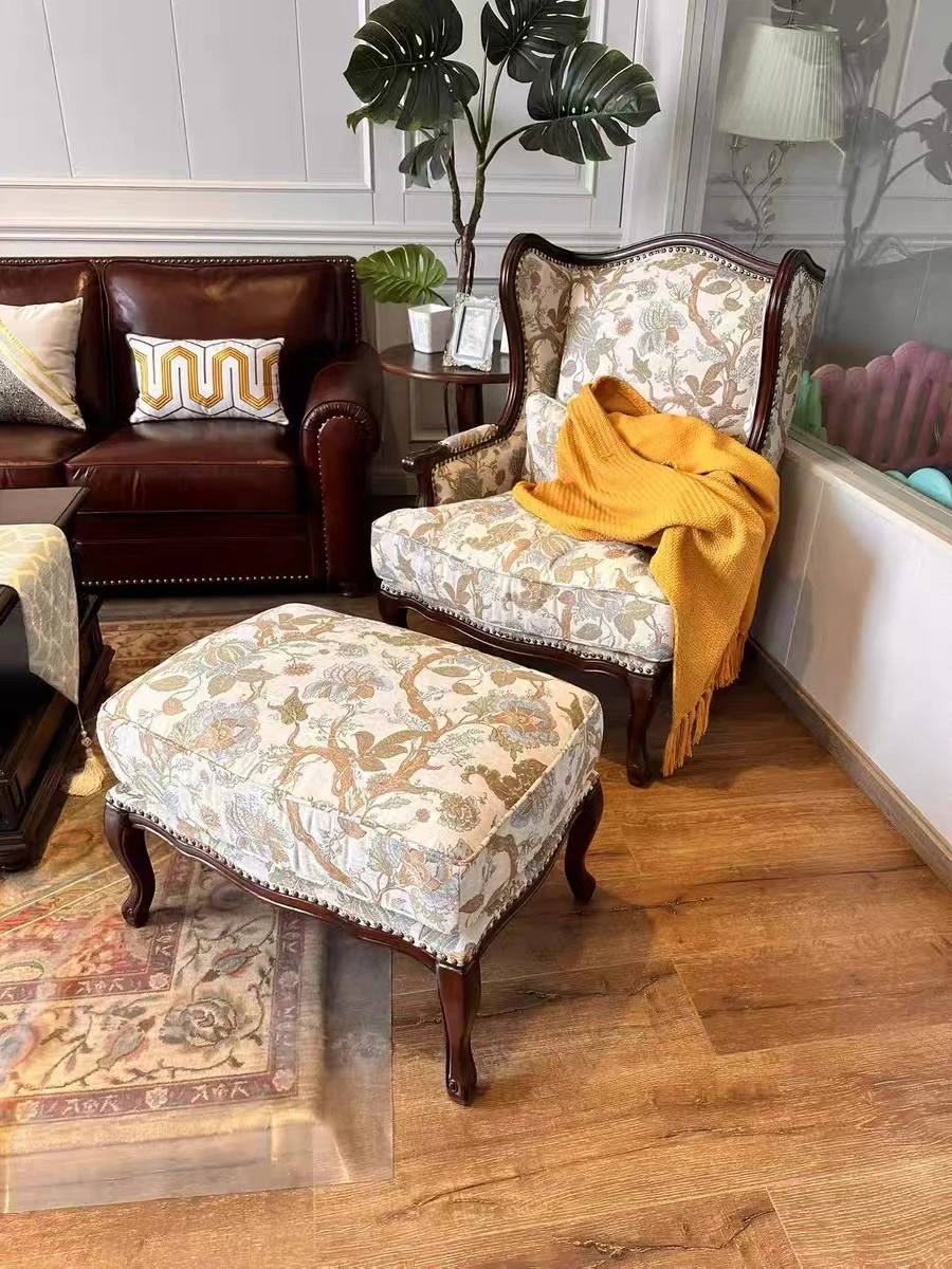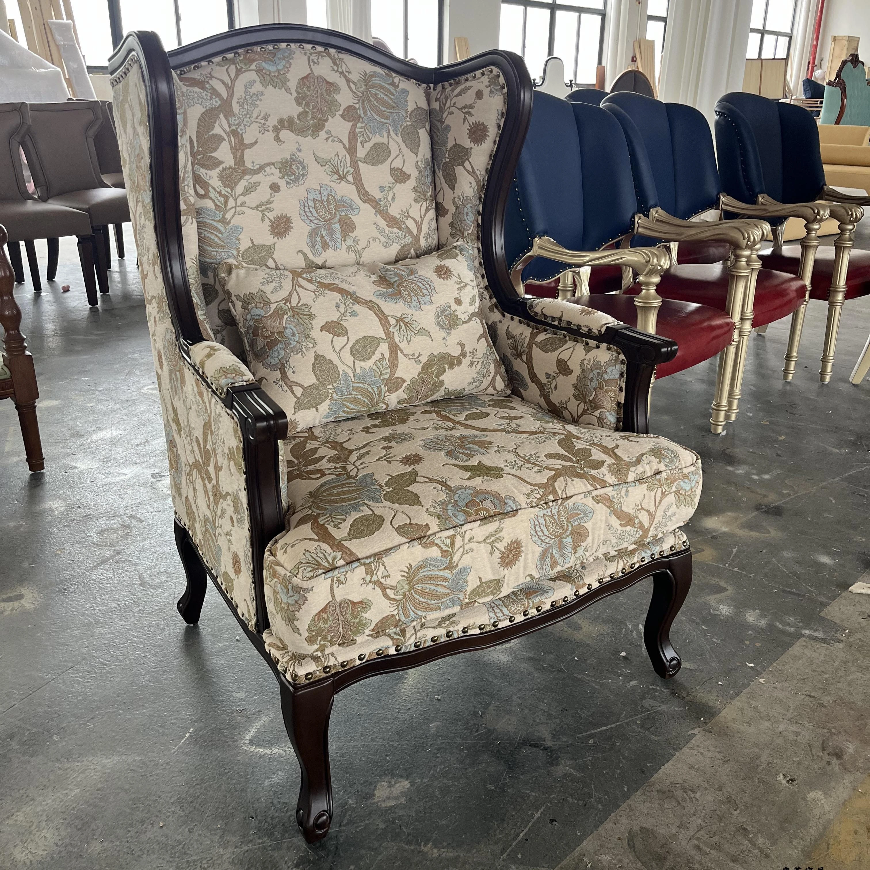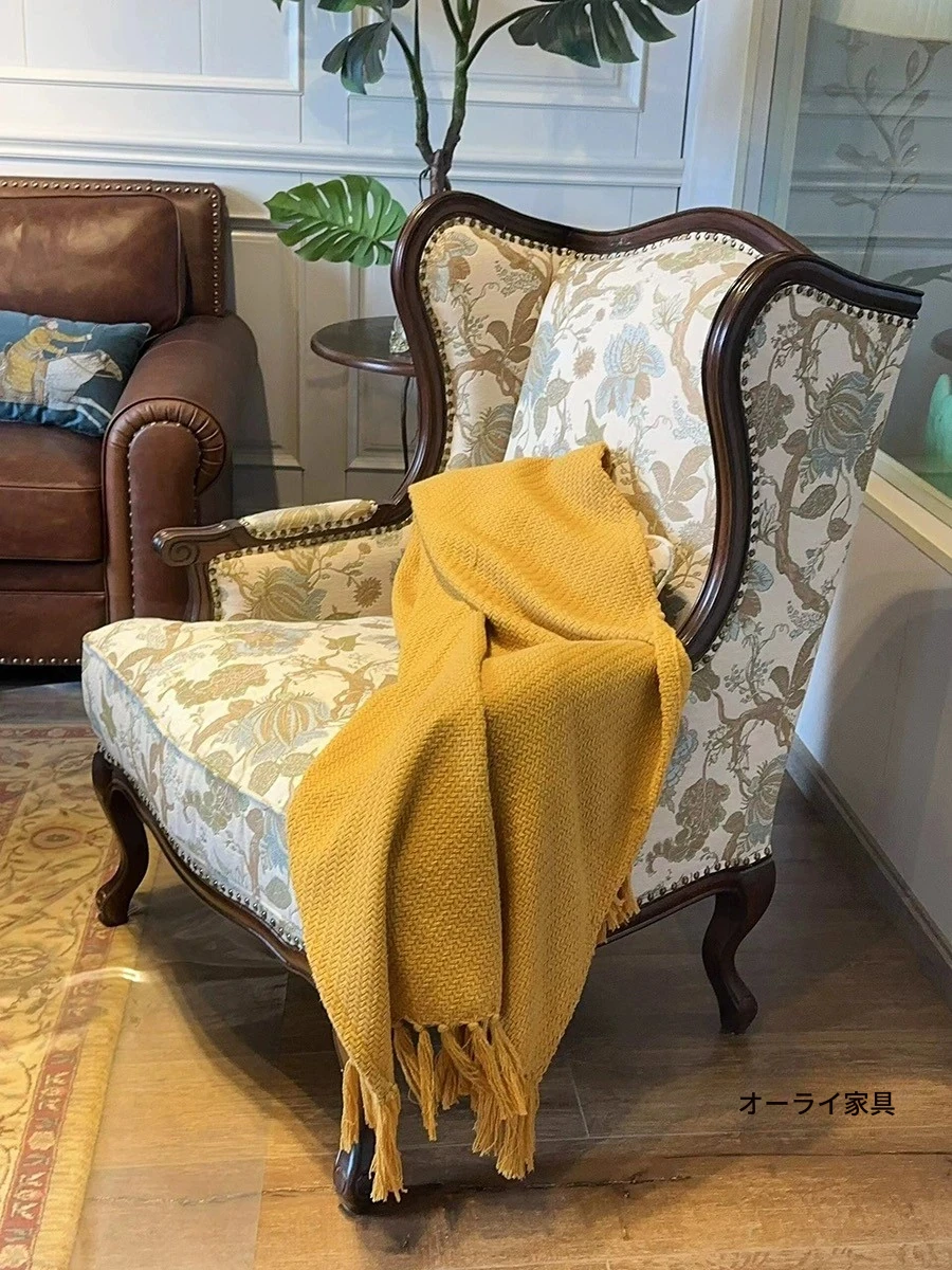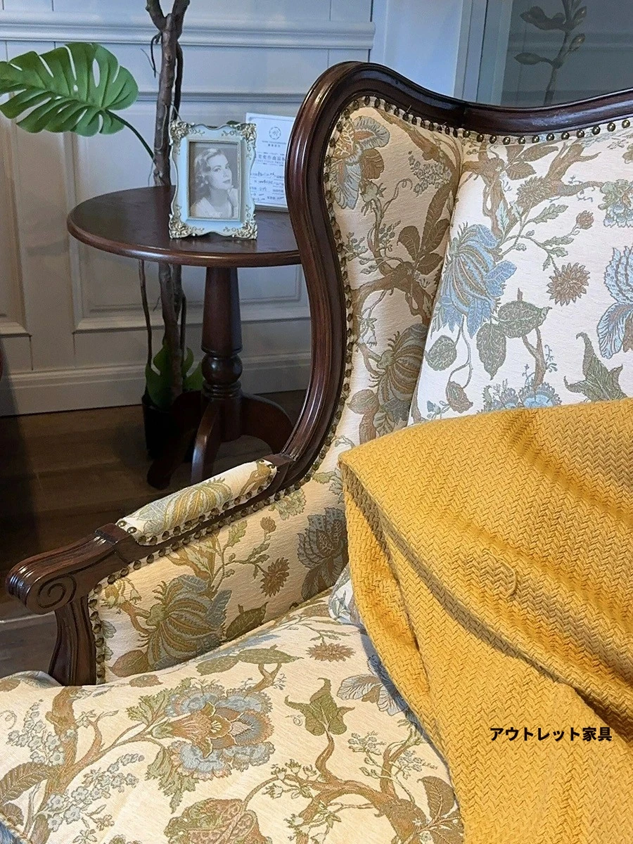アメリカンレトロ天然木製タイガーチェア フランス風リビング布製ソファチェア リラックスできる一人掛けバックレストソファチェア どんなインテリアにもマッチするおしゃれなデザインで、快適なひとときをお届けします!