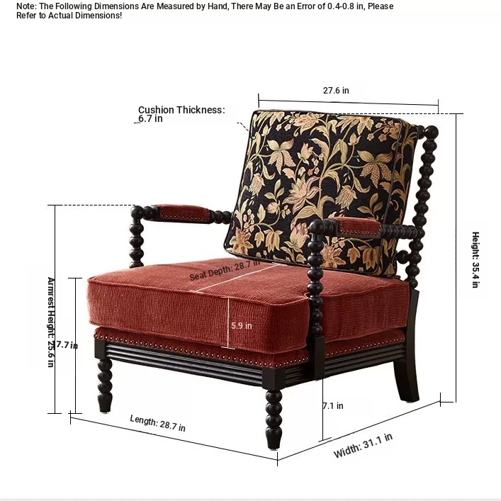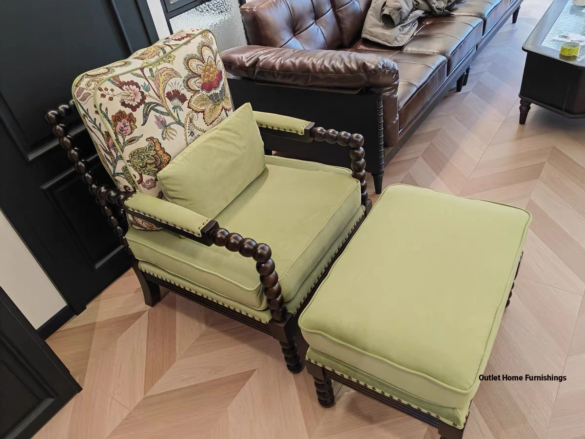 American Walnut Single Sofa with Round Bead Gourd Design - Stylish Fabric Accent Chair for Relaxation, featuring French Jacquard Upholstery. Perfect for Modern Living Spaces!