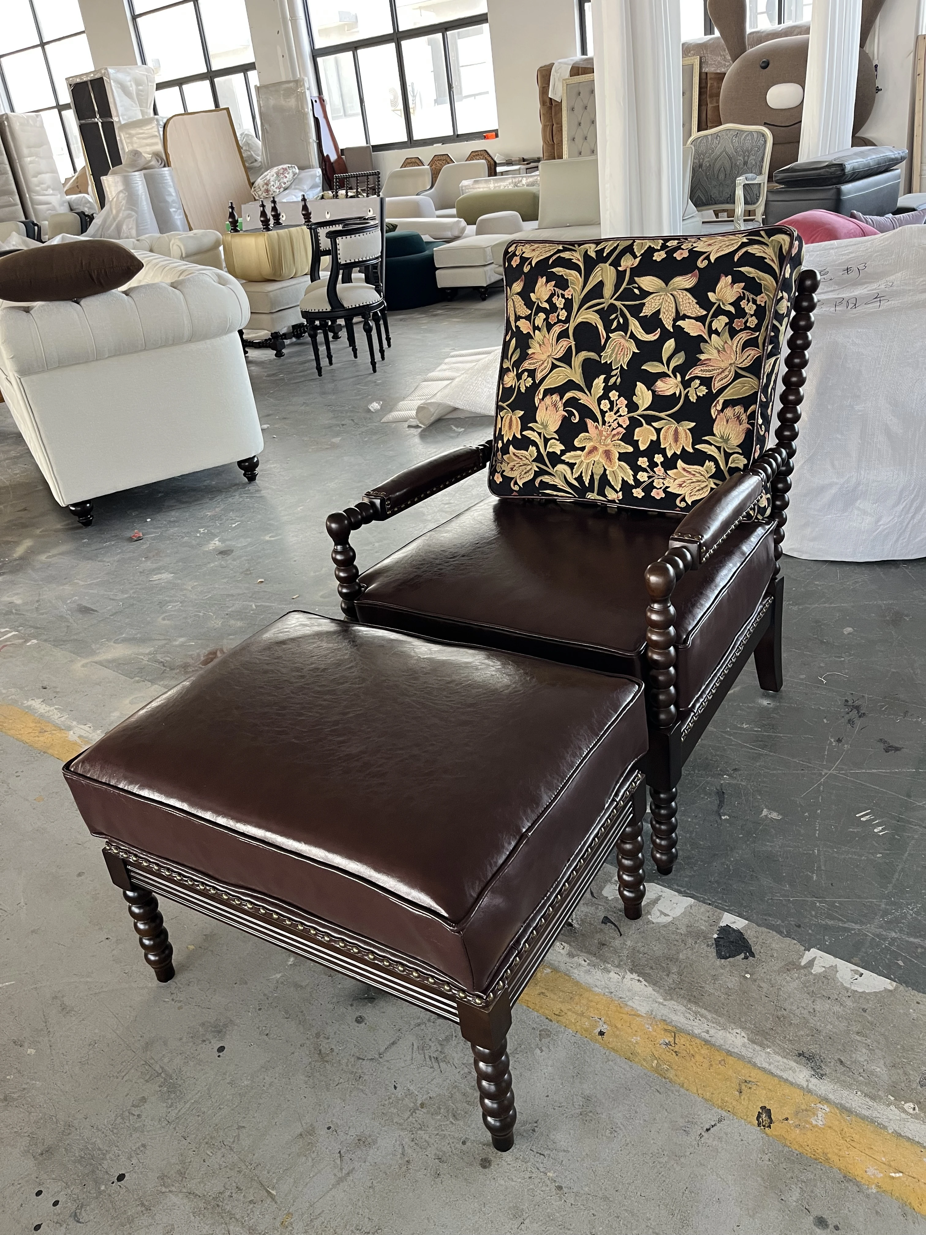 Dark red Brown Jacquard Sofa Chair➕Pedal