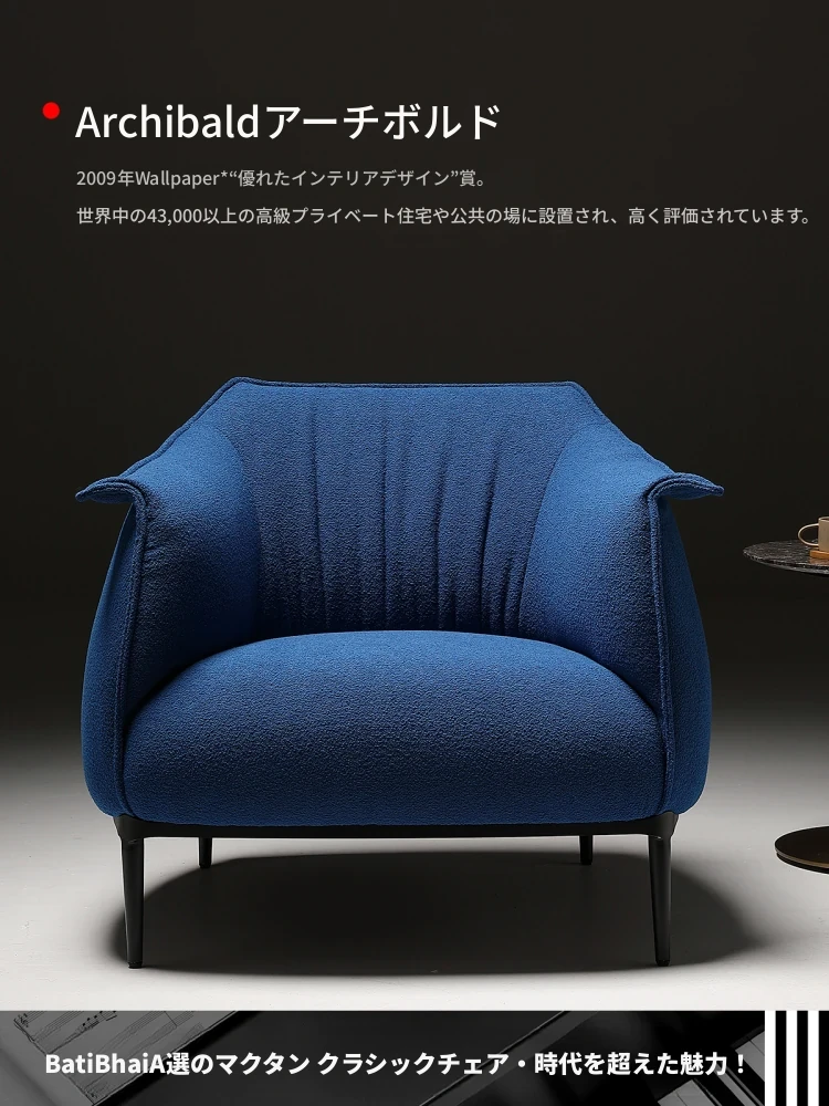 アーチボルドのリラックス一人掛けソファチェア - デザイナーズスタイルのブルー、イタリアンラグジュアリーで洗練されたリビング空間を演出します!