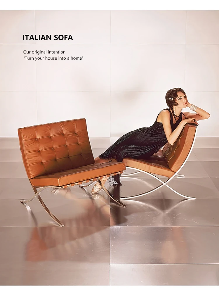 バルセロナチェア デザイン 家庭用 リビング バルコニー ヴィンテージ レトロ リラックスチェア 本革 モダン シンプル 一人用 ソファーチェア