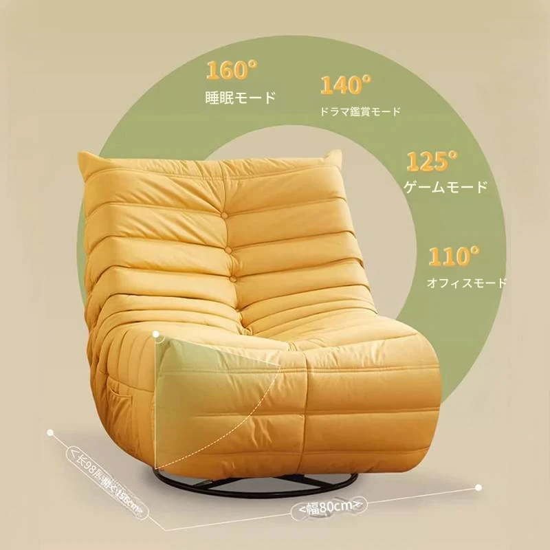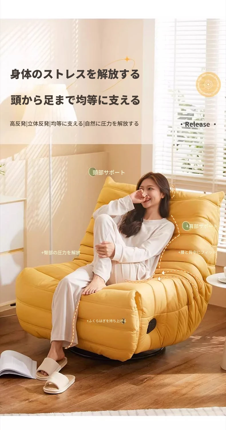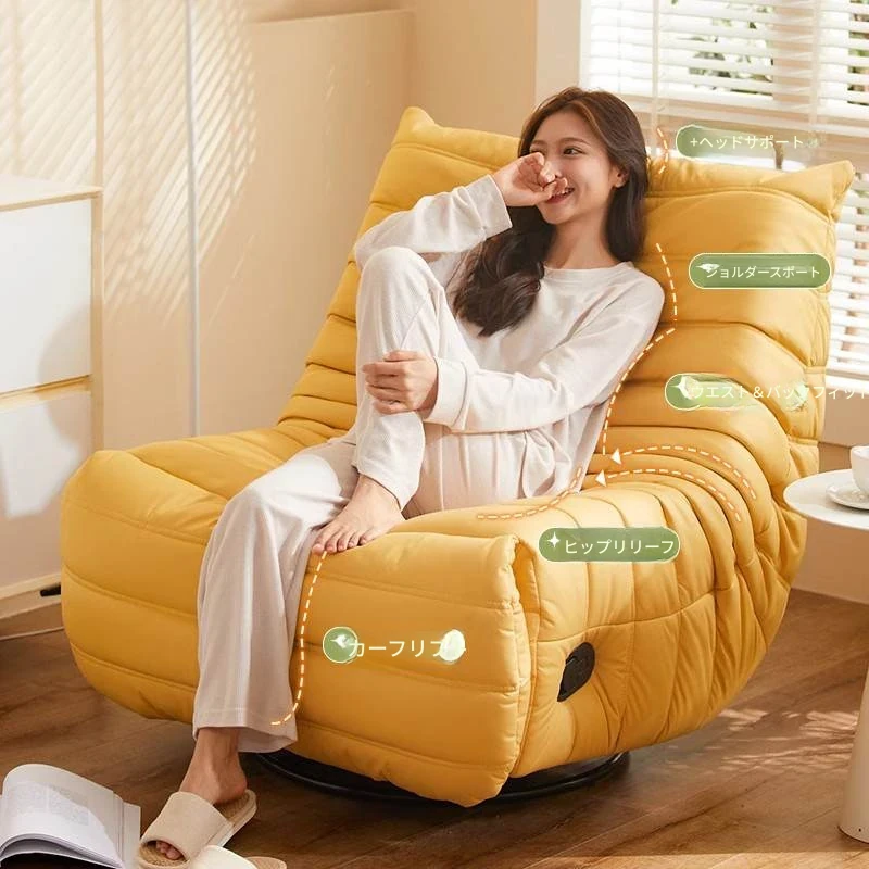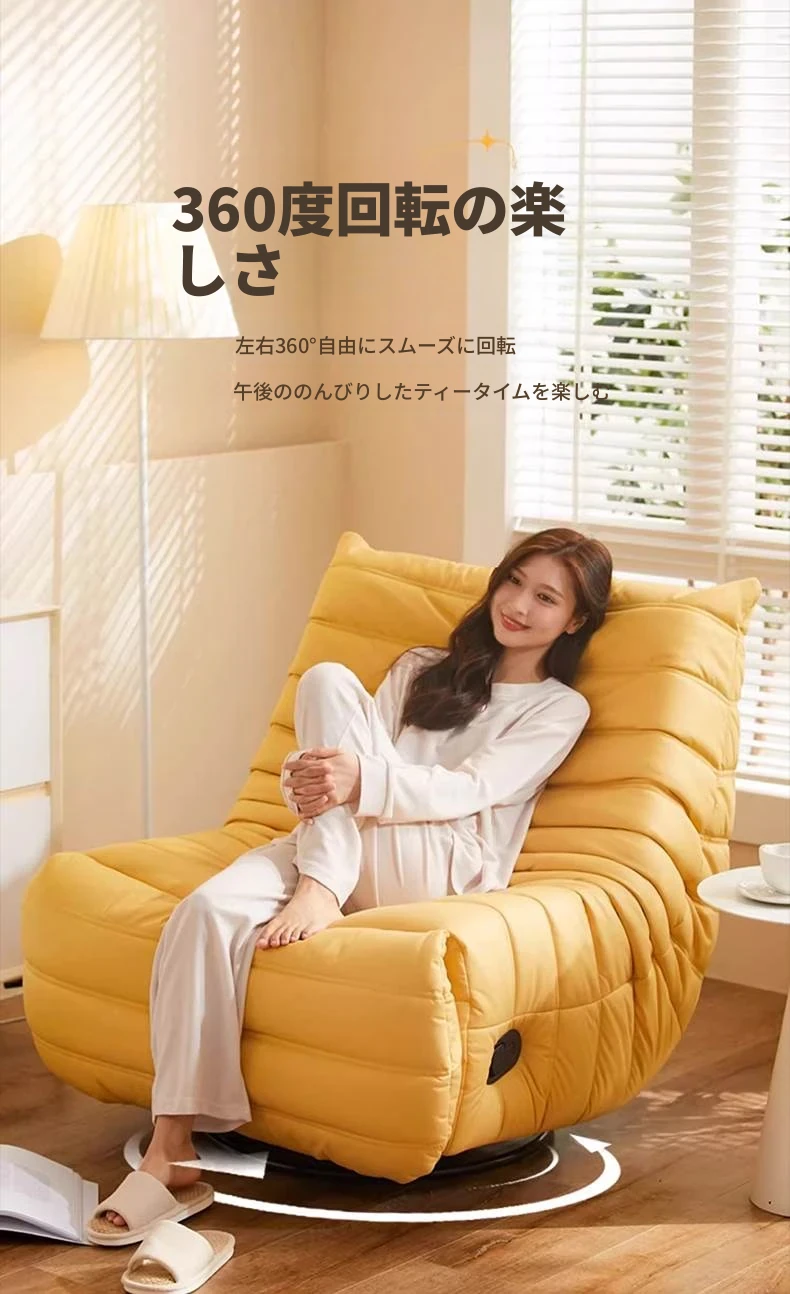 ふわふわの毛虫ソファチェア!多機能でリラックスできる電動リクライニング一人用ソファ。寝転んでも快適、回転機能付きで家でのくつろぎ時間をもっと特別に!