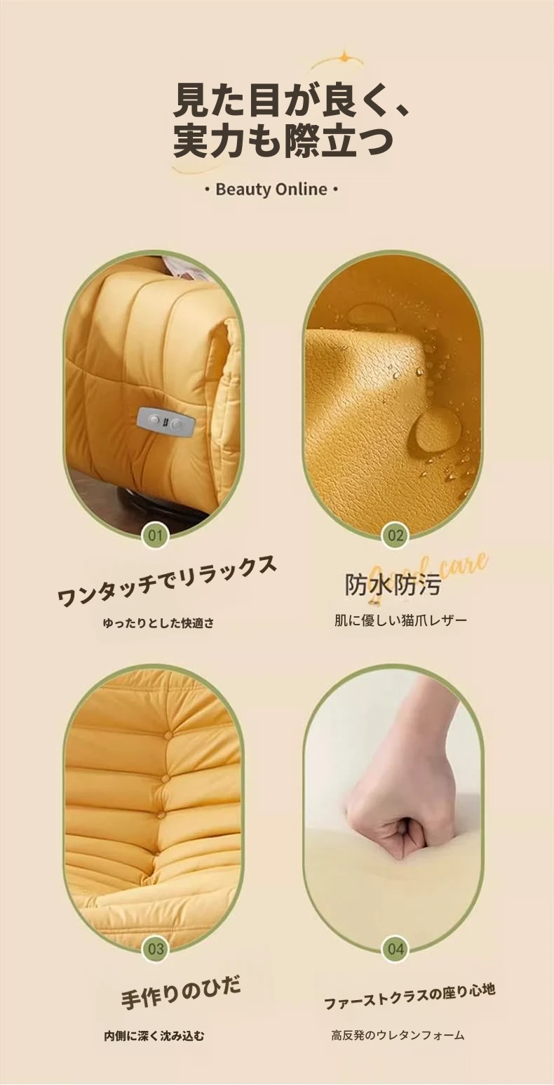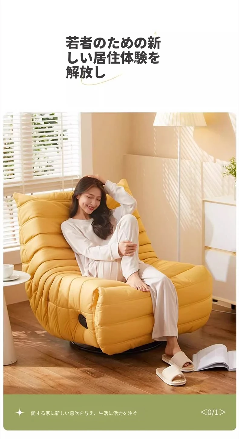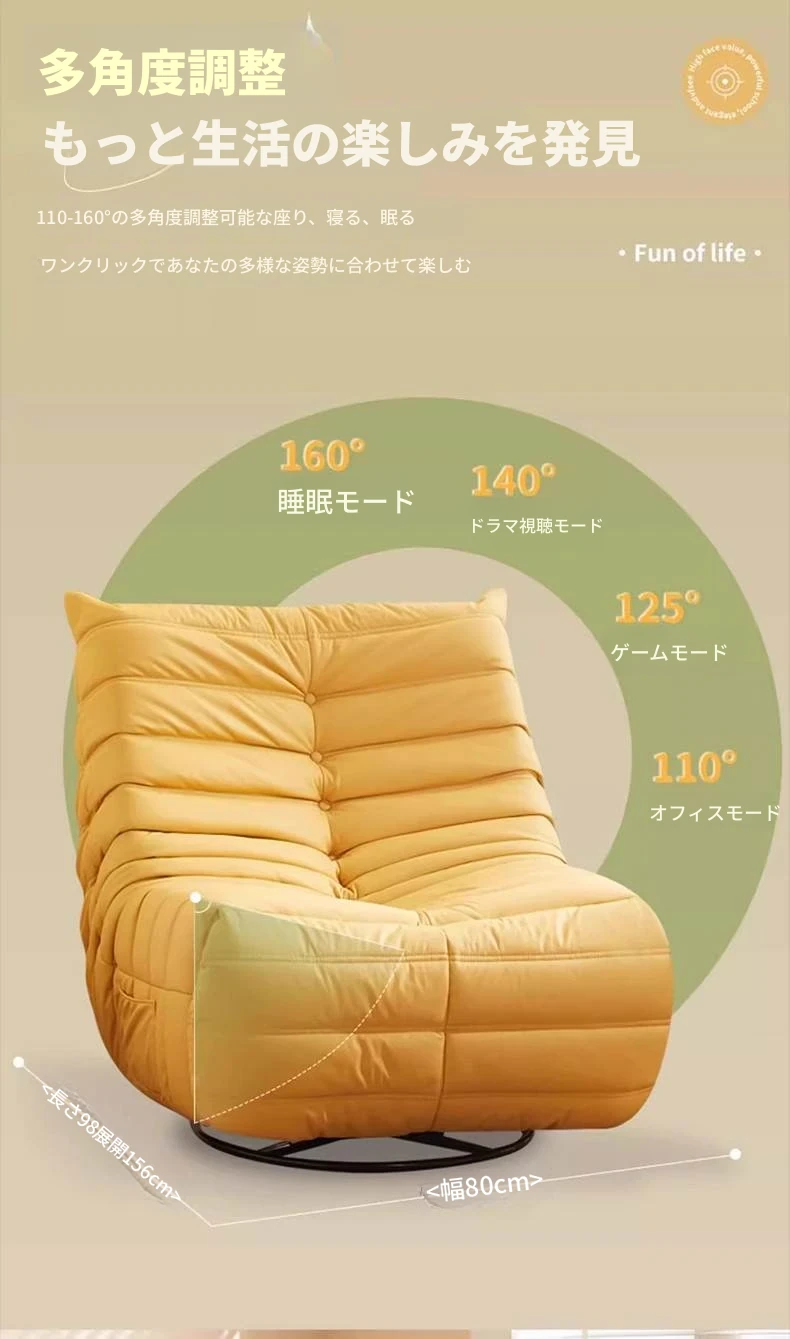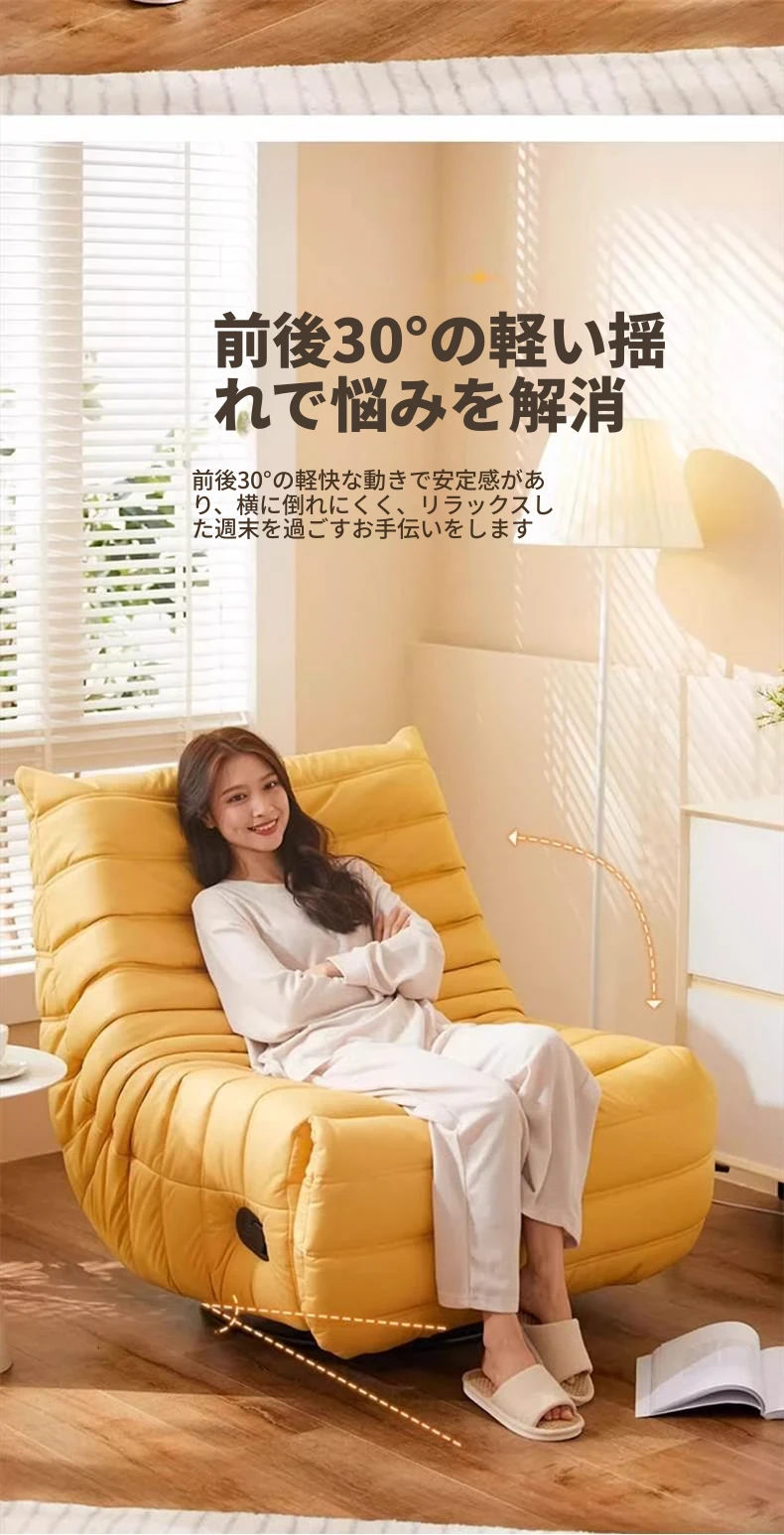 ふわふわの毛虫ソファチェア!多機能でリラックスできる電動リクライニング一人用ソファ。寝転んでも快適、回転機能付きで家でのくつろぎ時間をもっと特別に!