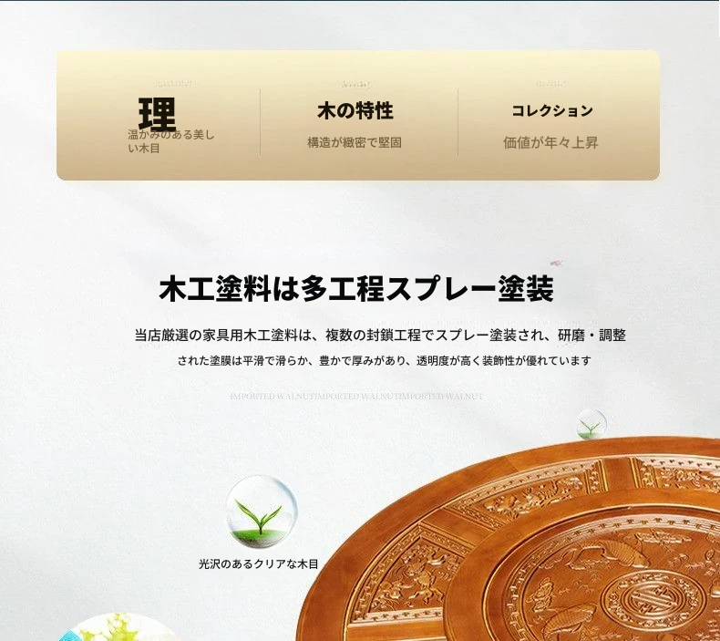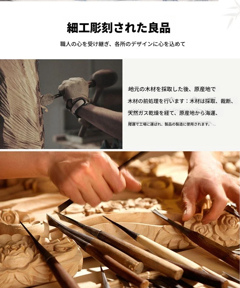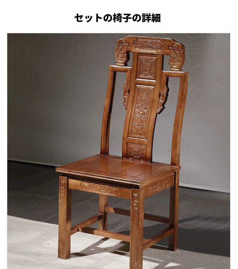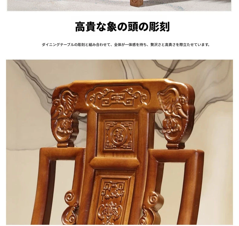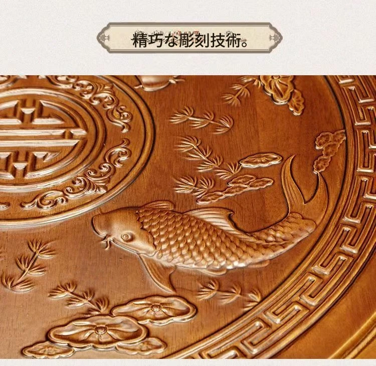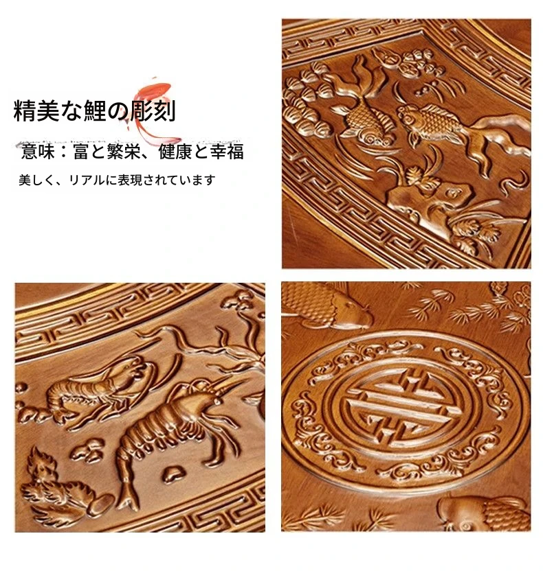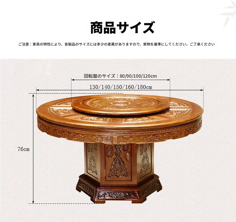 中華スタイルの無垢オーク製丸型ダイニングテーブルセット - エレガントな彫刻と回転プレート付きで、家族や友人との食事を贅沢に楽しむ!