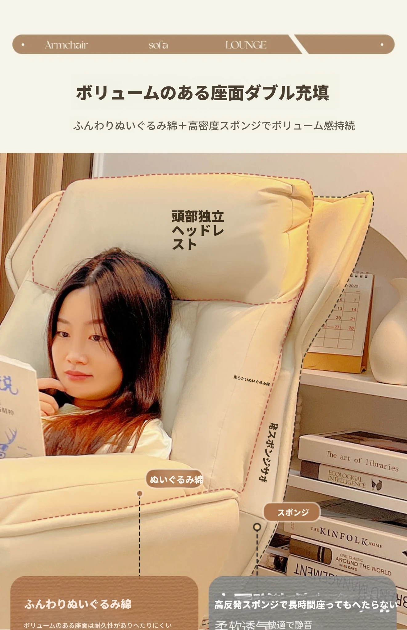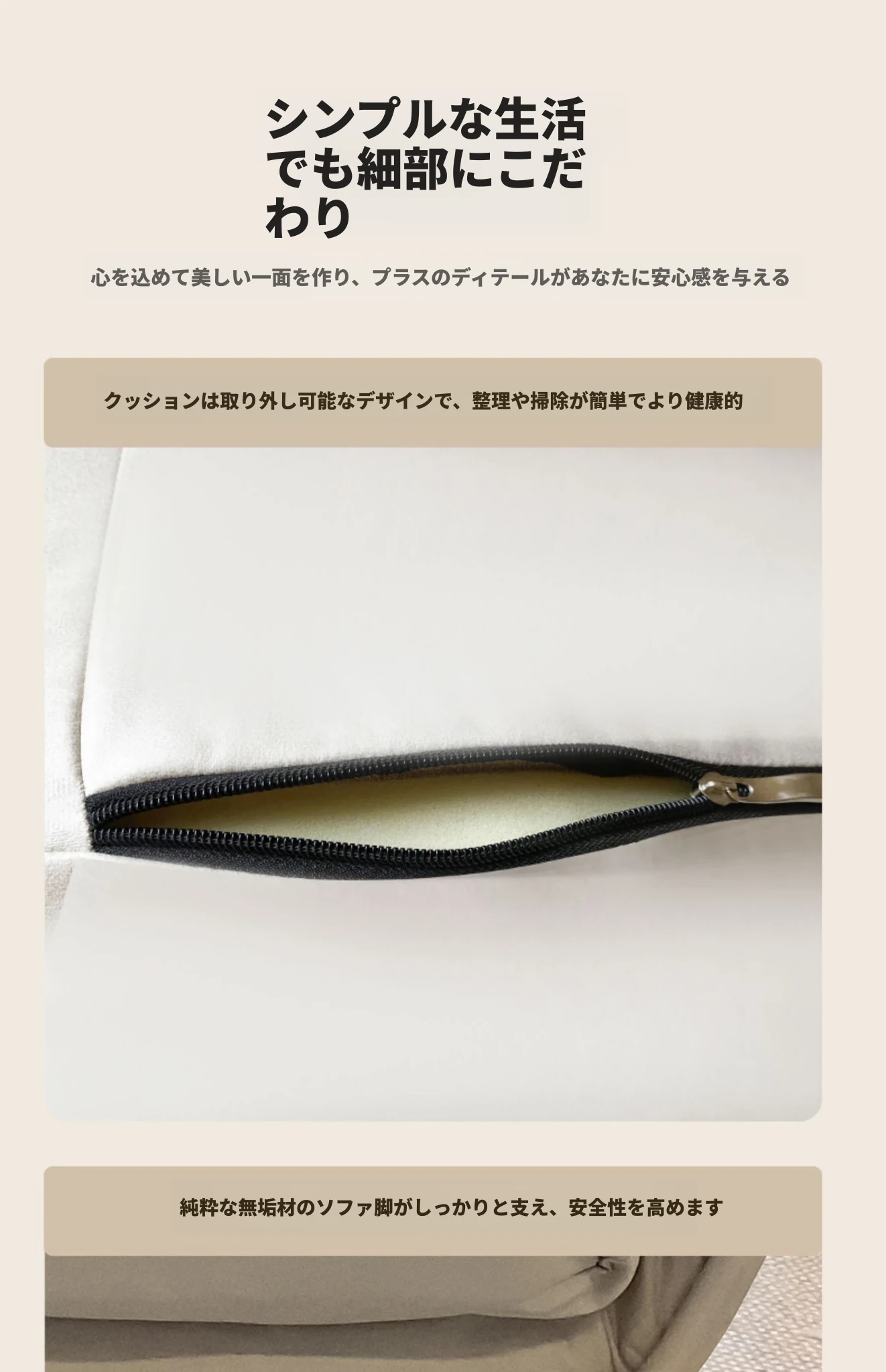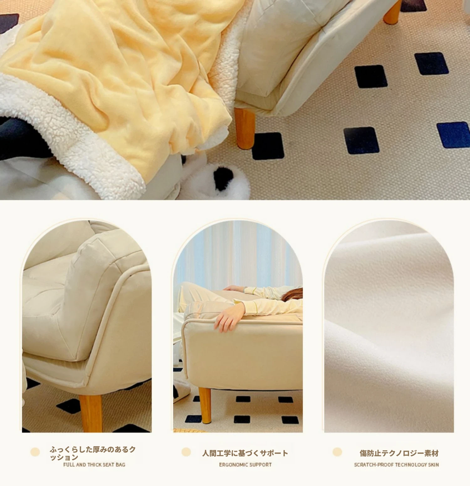 新型ソファチェア アイボリー『洗浄不要テクノロジー布』