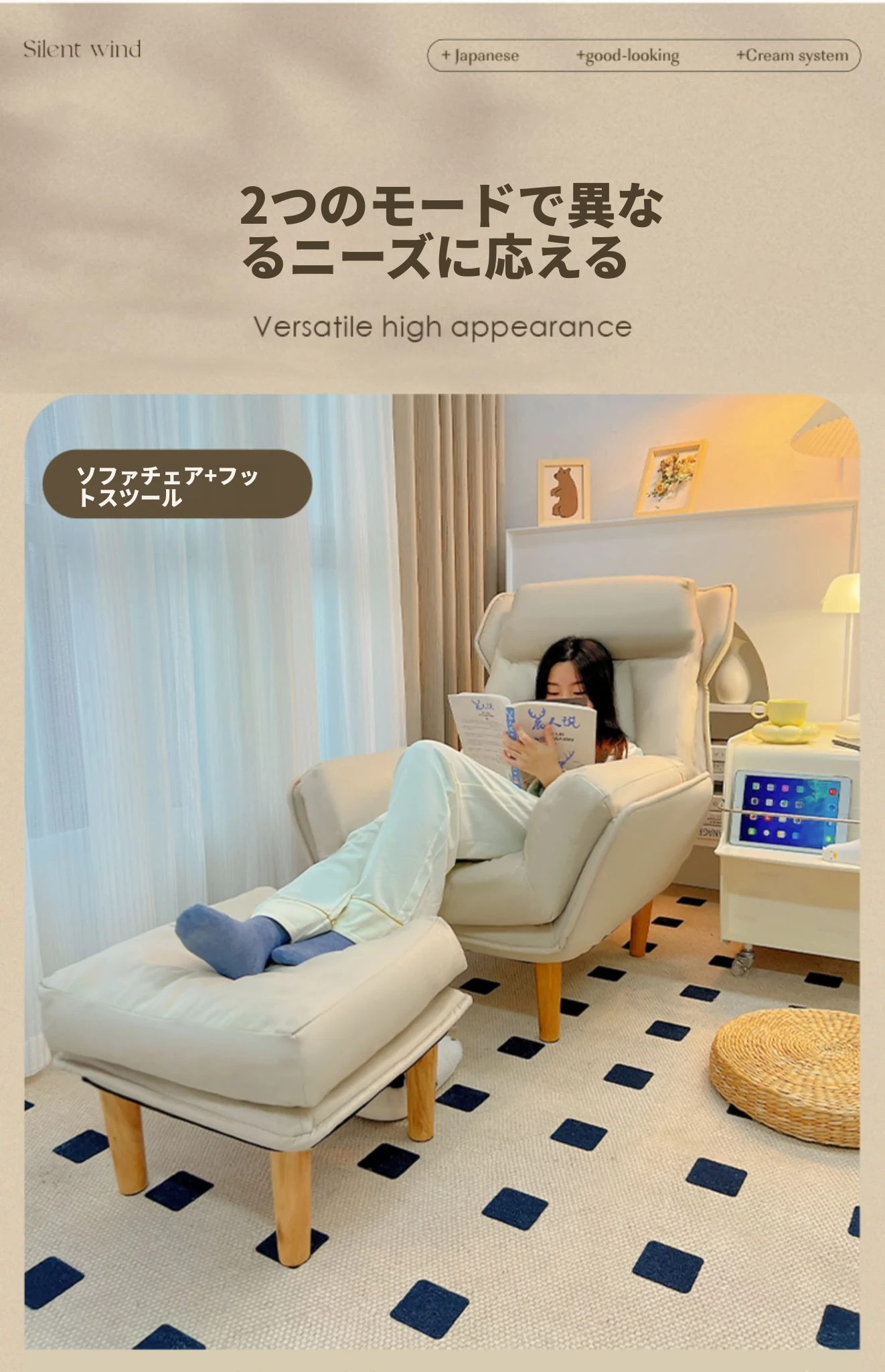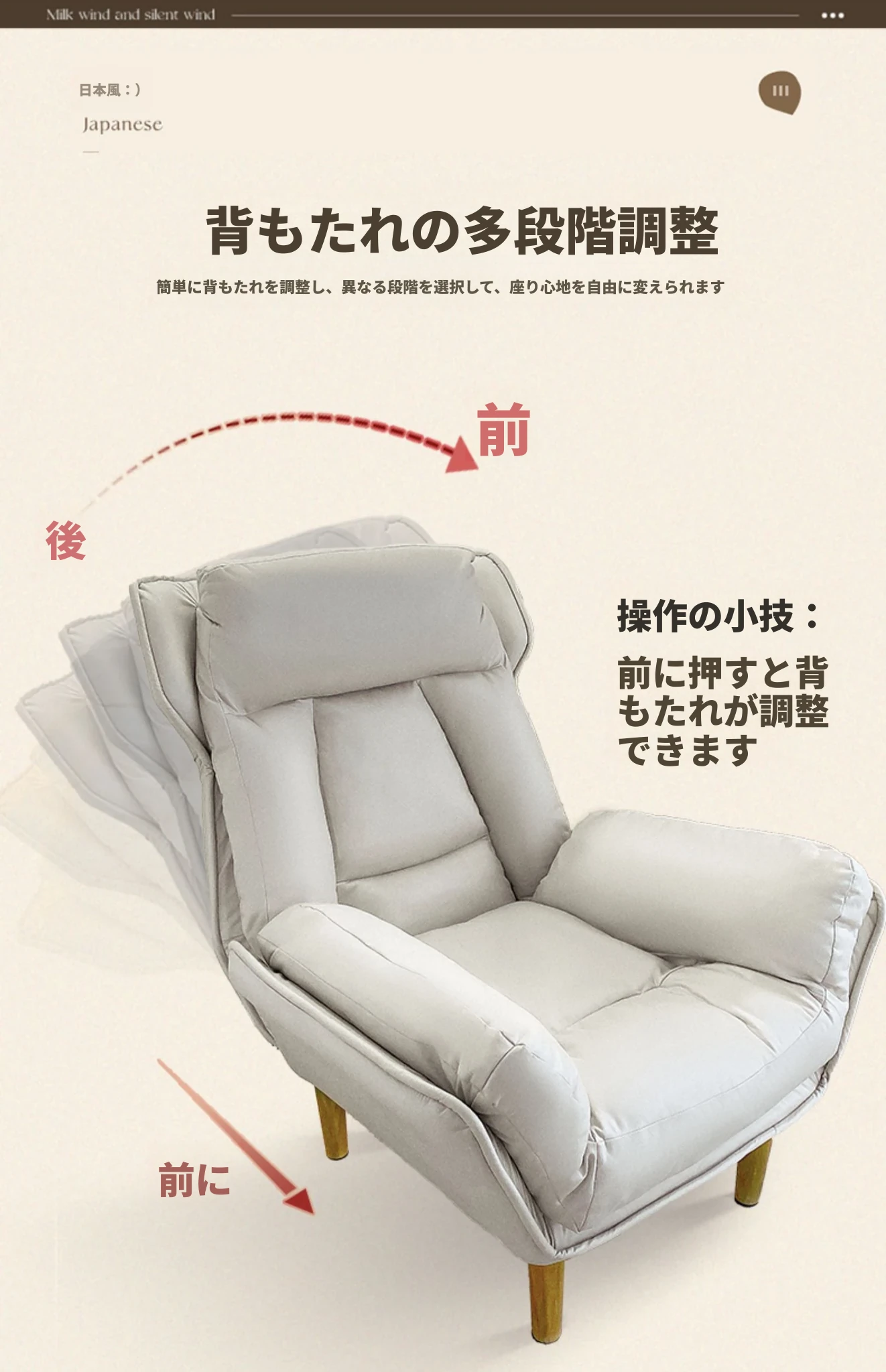 【防汚テクノロジー布】アイボリー + 足踏み & 背もたれ調整可能