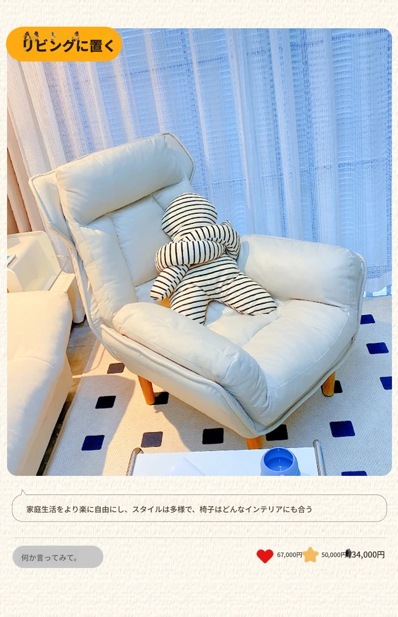 デザイン性抜群!小型ワンルームにぴったりなシンプルな一人掛けソファ。リビングや寝室、バルコニーでも活躍するリラックスチェア。人気の虎の椅子で、心地よいくつろぎを提供します!