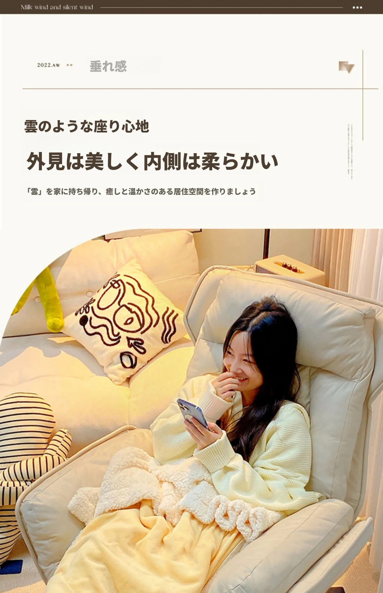 新作ソファチェア ミルクホワイト『ふわふわラムファー』