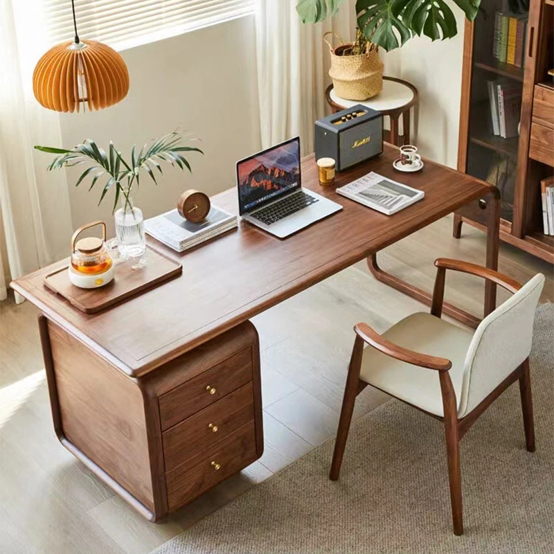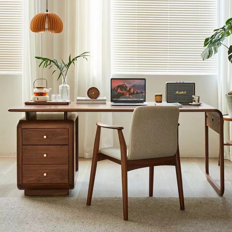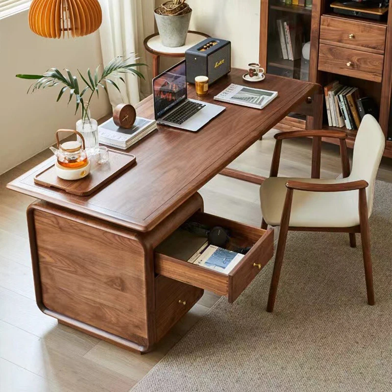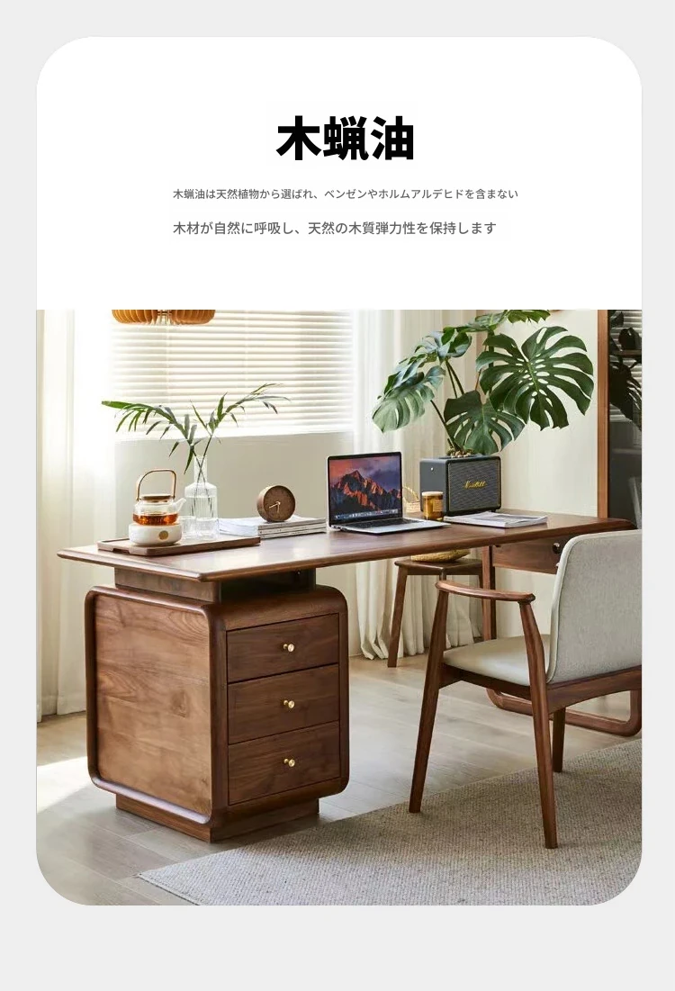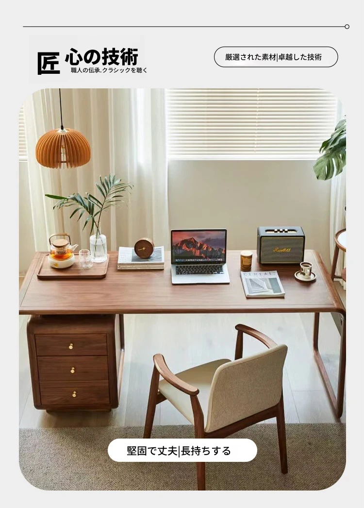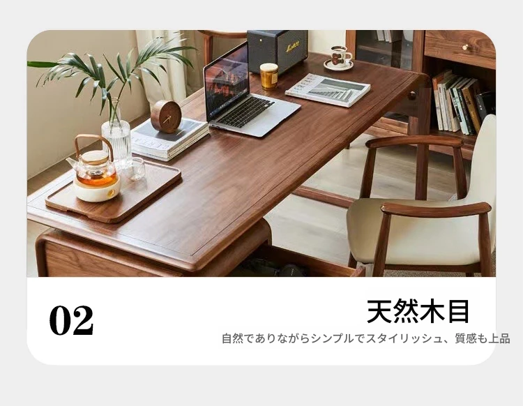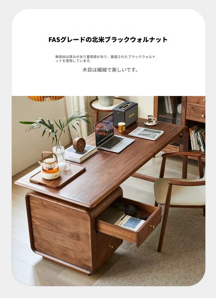 学生・家庭用の高級感あふれる実木デスク - 小型ブラックウォールナット材のパソコンデスク、オフィスや社長用にも最適!快適な作業空間を提供します。
