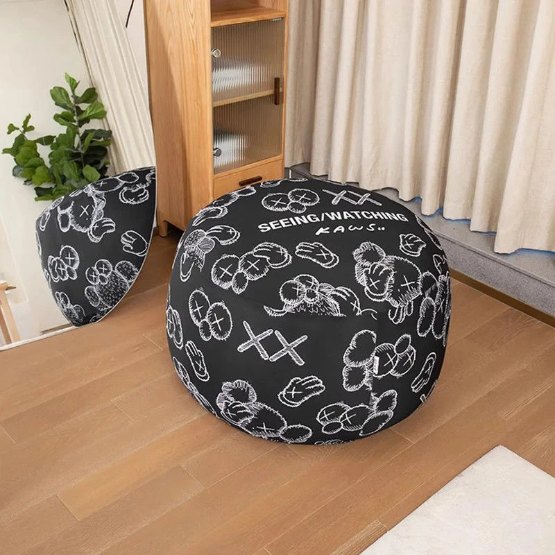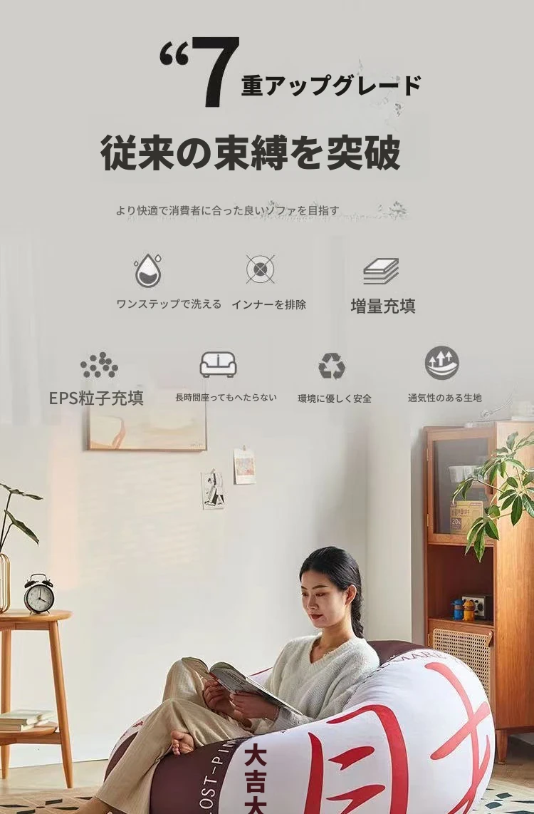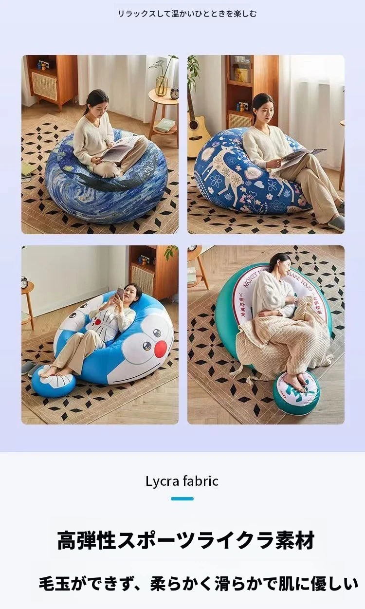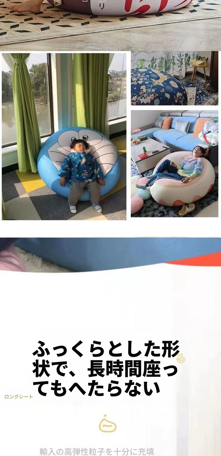 おしゃれなリラックスソファ!寝転んでも快適な豆袋式タタミチェア。人気のカートゥーンデザインで、子どもも大喜び!バルコニーや一人用の寝椅子に最適。粒状のフィリングで体をしっかりサポート!