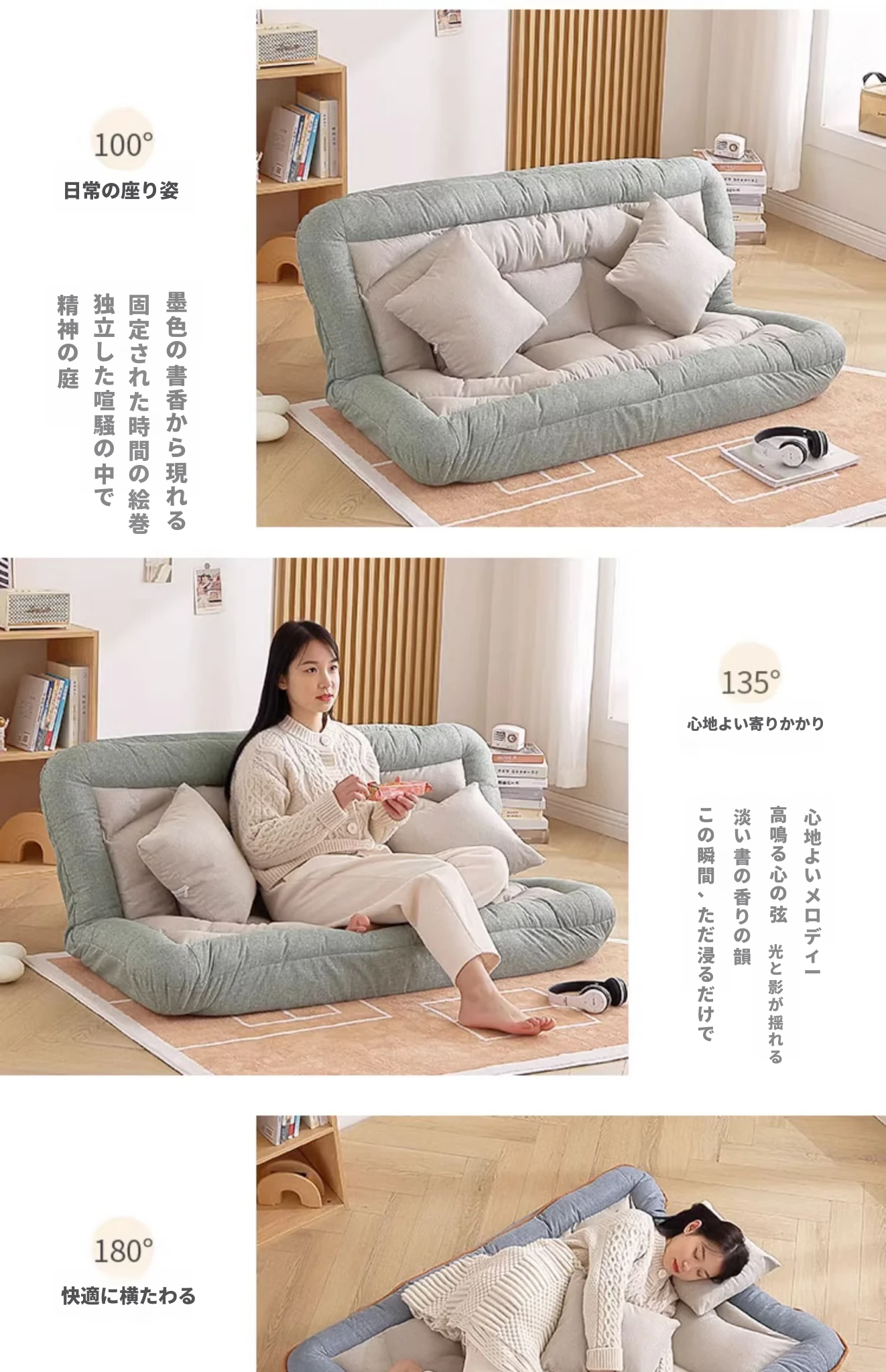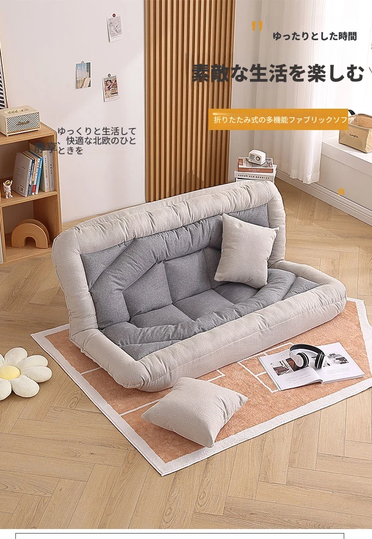 楽々ソファ!折りたたみ式の可愛い一人用タタミソファ、ミニマリスト向けの快適な大人用、洗えるデザイン。小さなお部屋にもぴったりなダブルサイズも選べます!