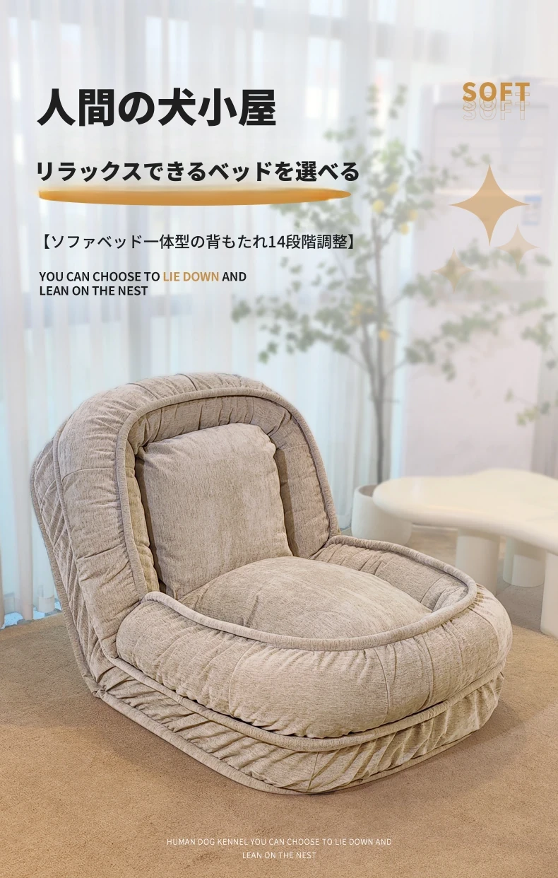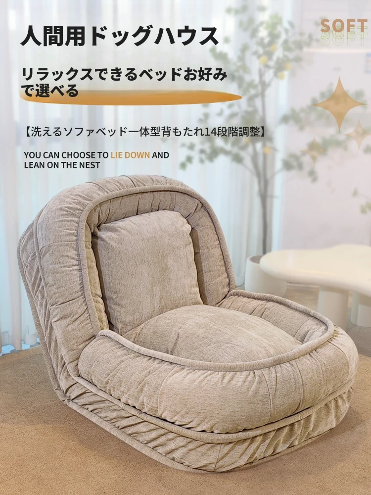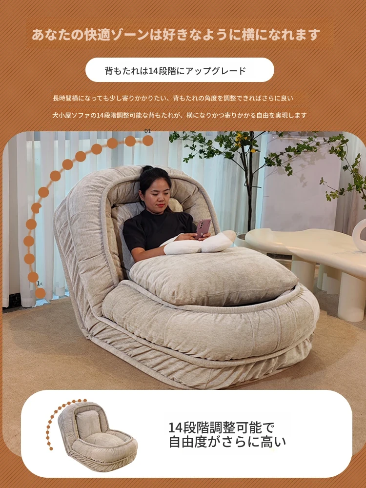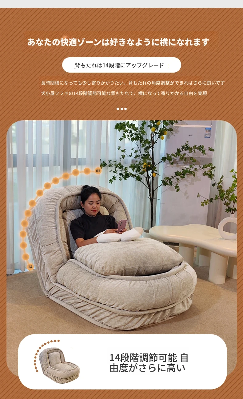 人間用ドッグハウスソファ!リラックスできる一人用ソファベッド、寝転がって使える!バルコニーや寝室、畳の上でも使える折りたたみ式リクライニングチェア。快適さとスタイルを両立したあなたの新しいくつろぎスペース!