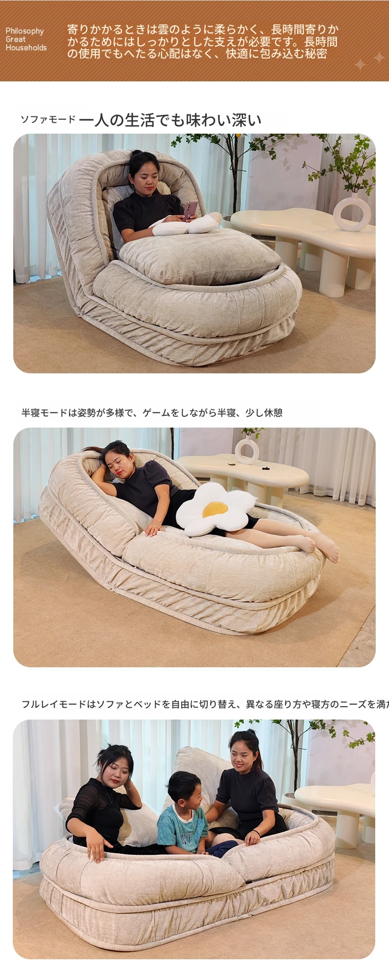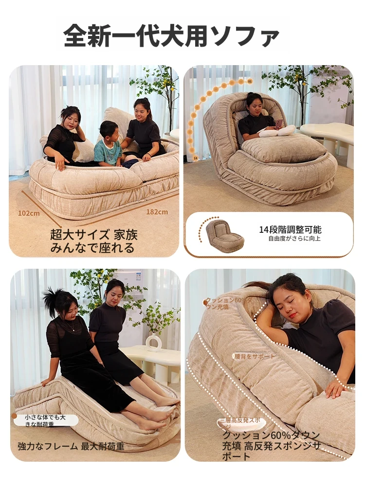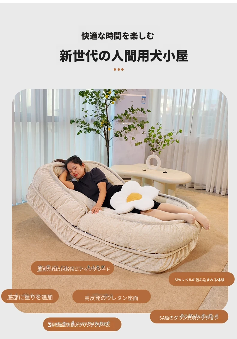 人間用ドッグハウスソファ!リラックスできる一人用ソファベッド、寝転がって使える!バルコニーや寝室、畳の上でも使える折りたたみ式リクライニングチェア。快適さとスタイルを両立したあなたの新しいくつろぎスペース!