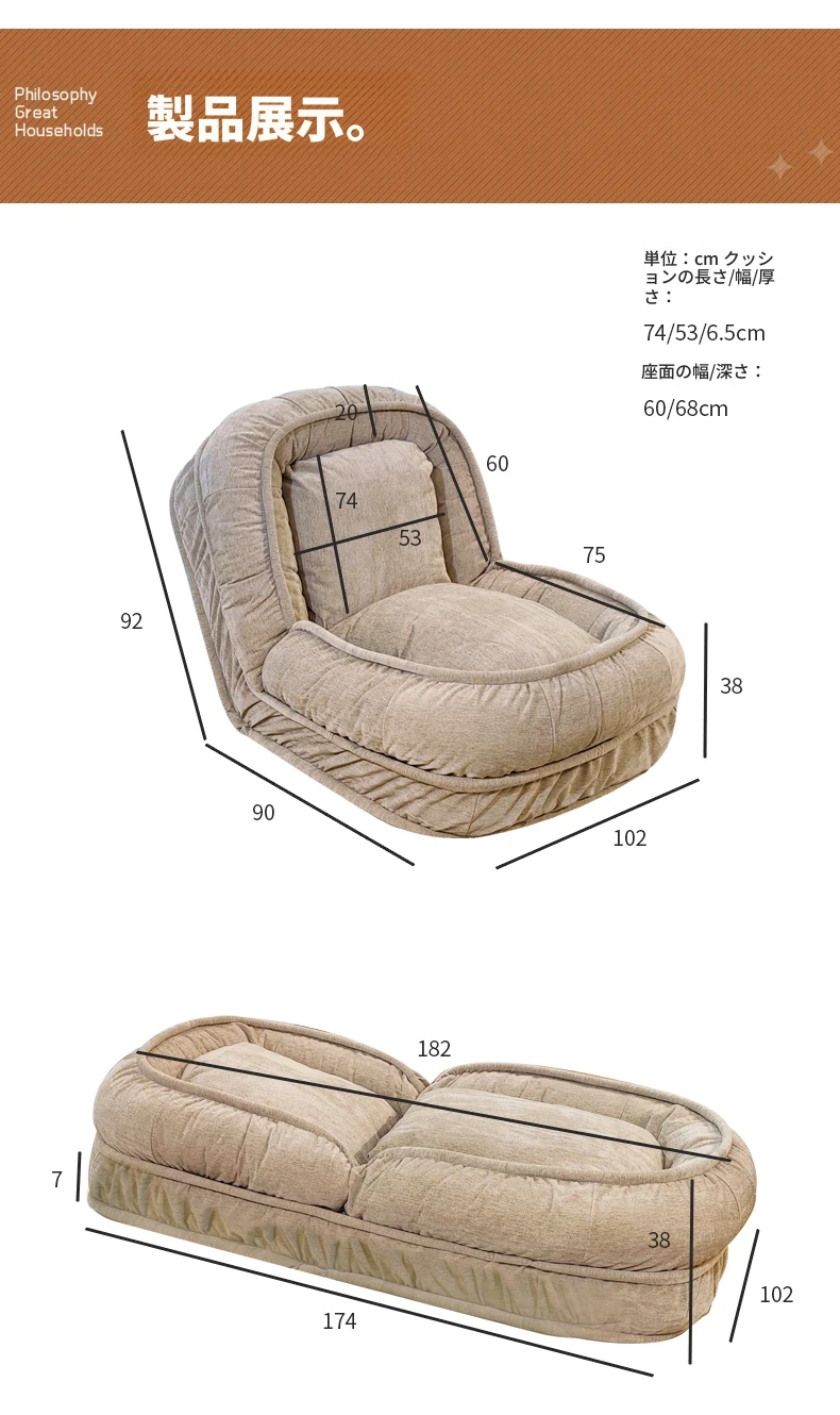 リラックスできる折りたたみソファタタミベッド!単身用の寝室やバルコニーに最適な背もたれ付きの座椅子。地面に置いても使いやすく、快適な座り心地を実現。あなたのリラックスタイムを格上げ!