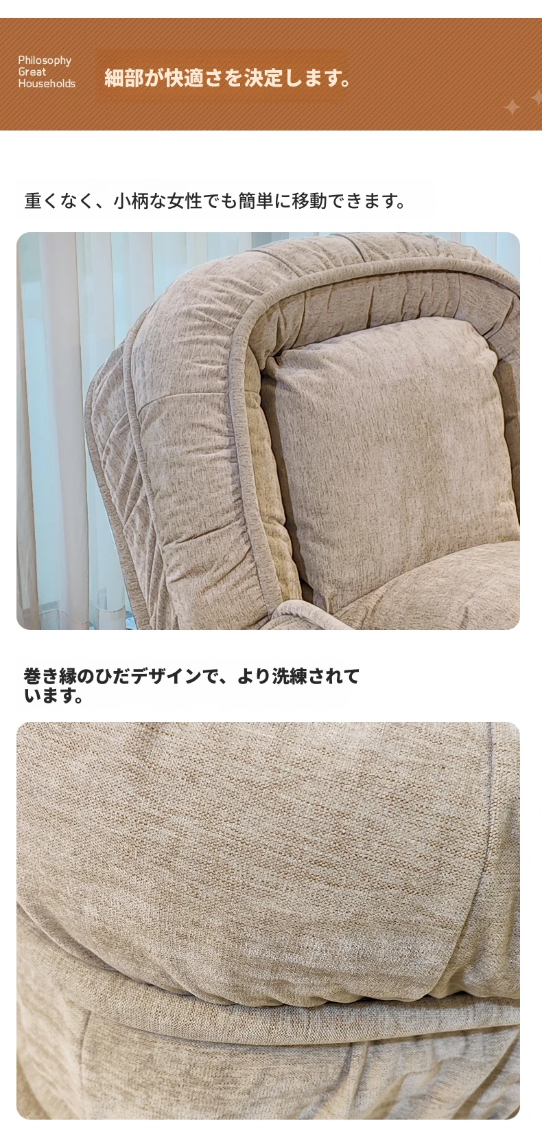 一人用ソファチェア|ローリング可動式の和風侘び寂びデザイン|リネン素材で洗えるおしゃれなカフェチェア|宿泊施設やインテリアに最適!