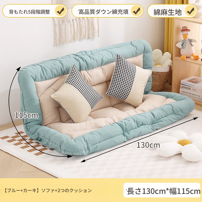 ブルーカーキ【130*115】-ランダムでクッション2個プレゼント