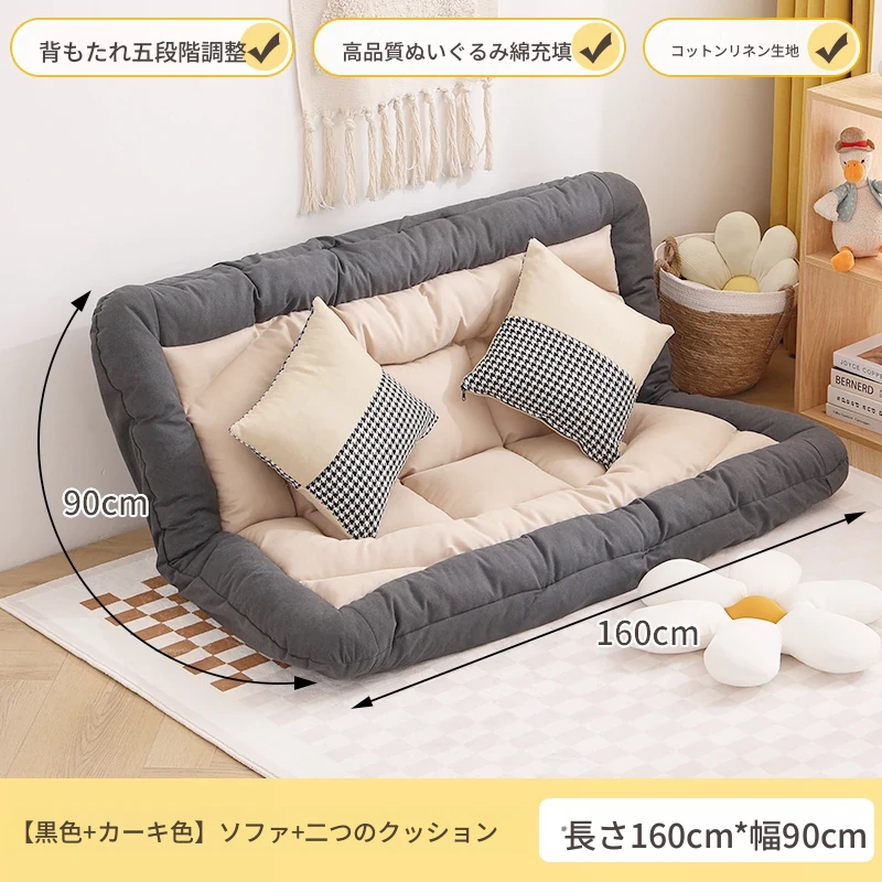 ブラックカーキ【160*90】-ランダムでクッション2個プレゼント