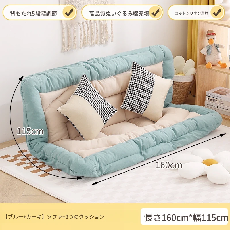 ブルーカーキ【160*90】-ランダムでクッション2個プレゼント