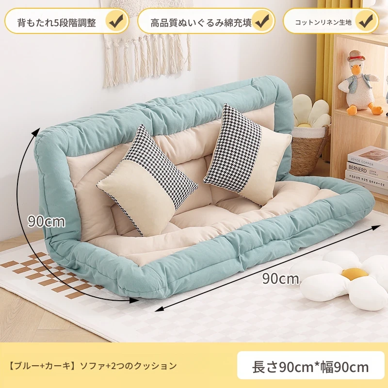 ブルーカーキ【90*90】-ランダムでクッション2個プレゼント