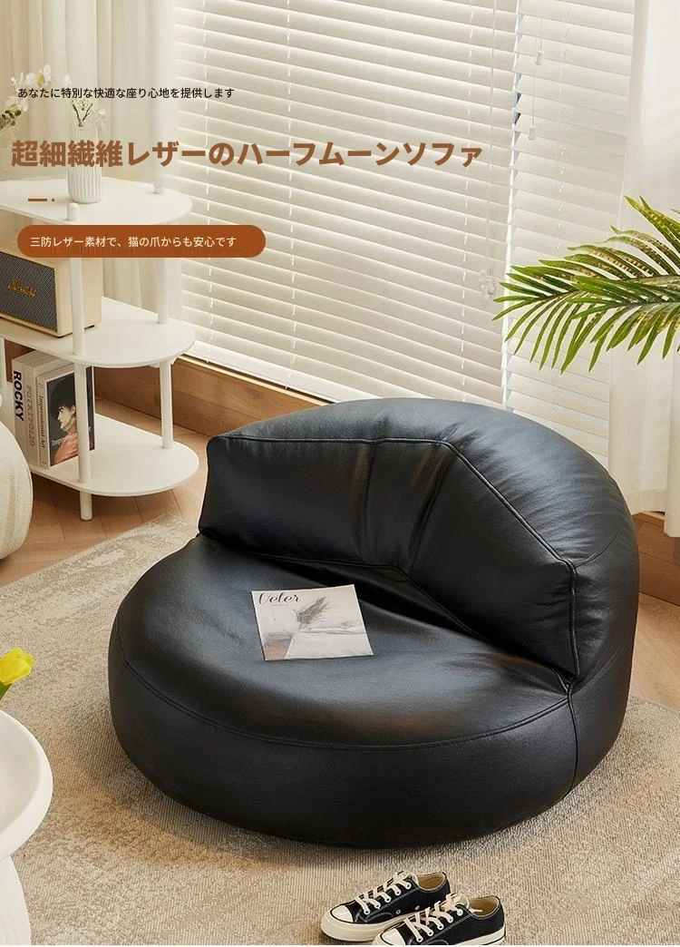 【超繊ナノソフトレザータイプ】黒色ハーフムーンソファ
