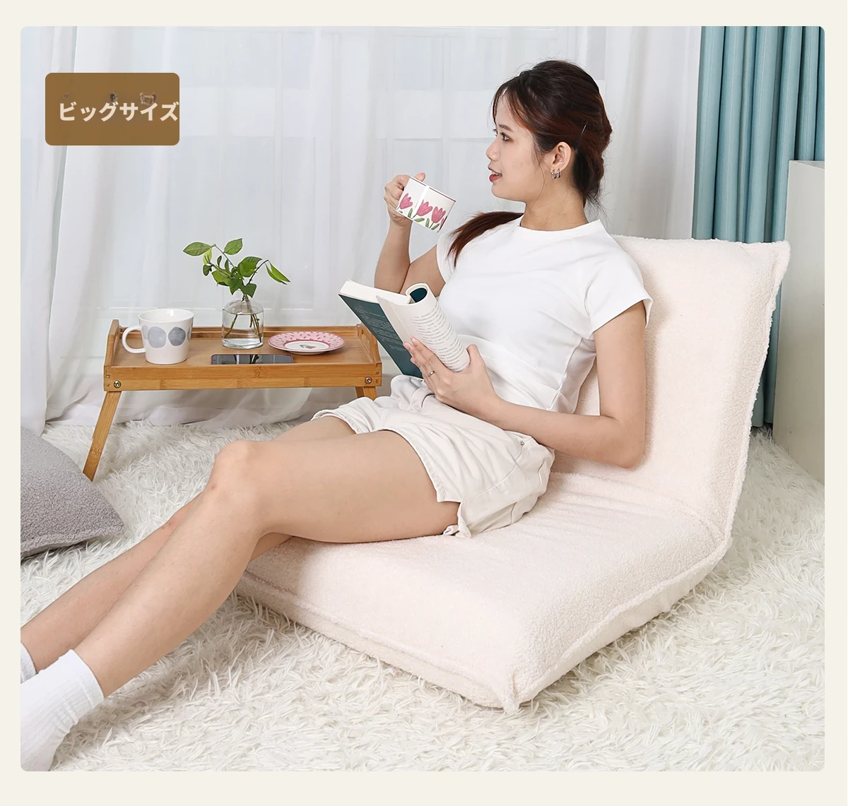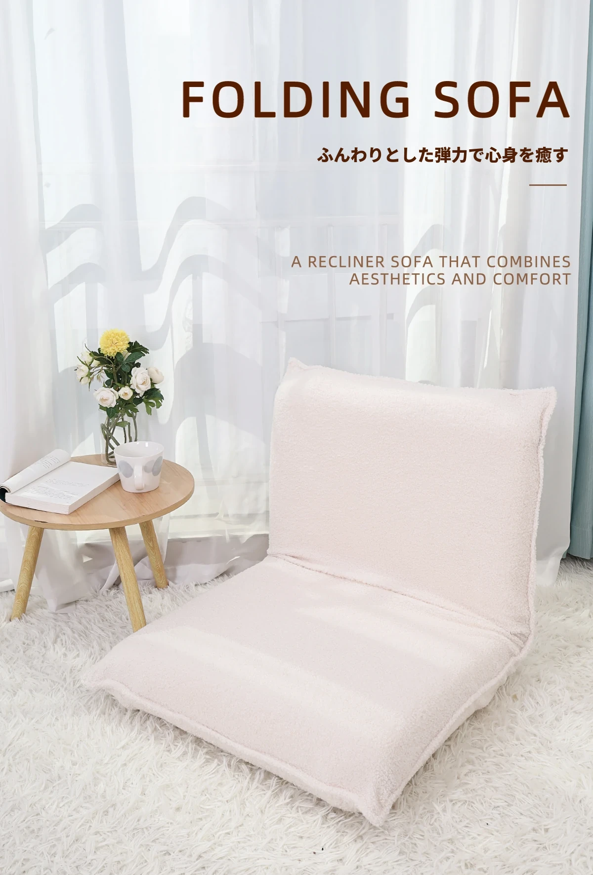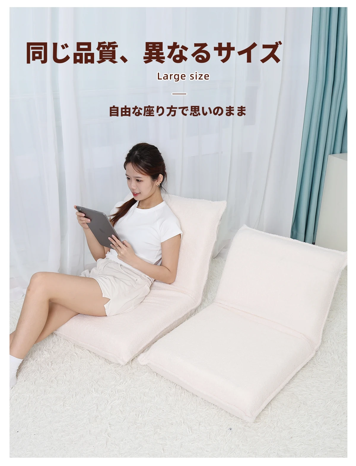 リラックスできる折りたたみソファ!タタミや窓辺にぴったりな授乳椅子。子供用座椅子としても使え、ベッドや床でも快適にサポート!あなたのリビングをおしゃれに演出します。