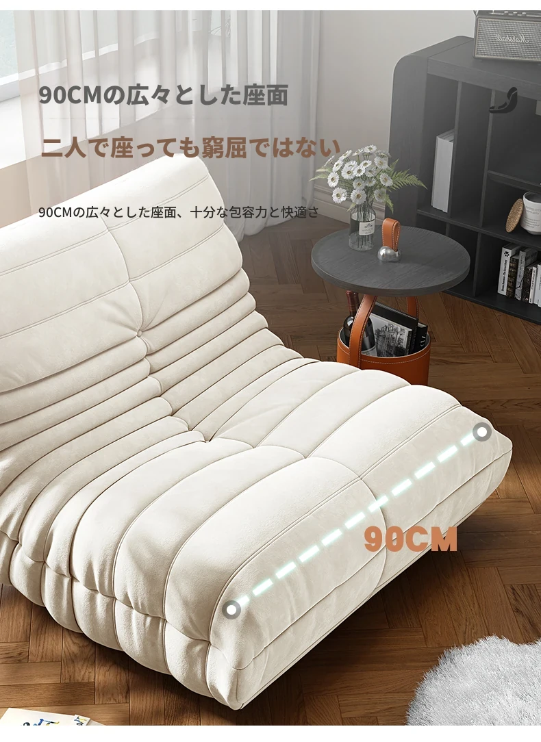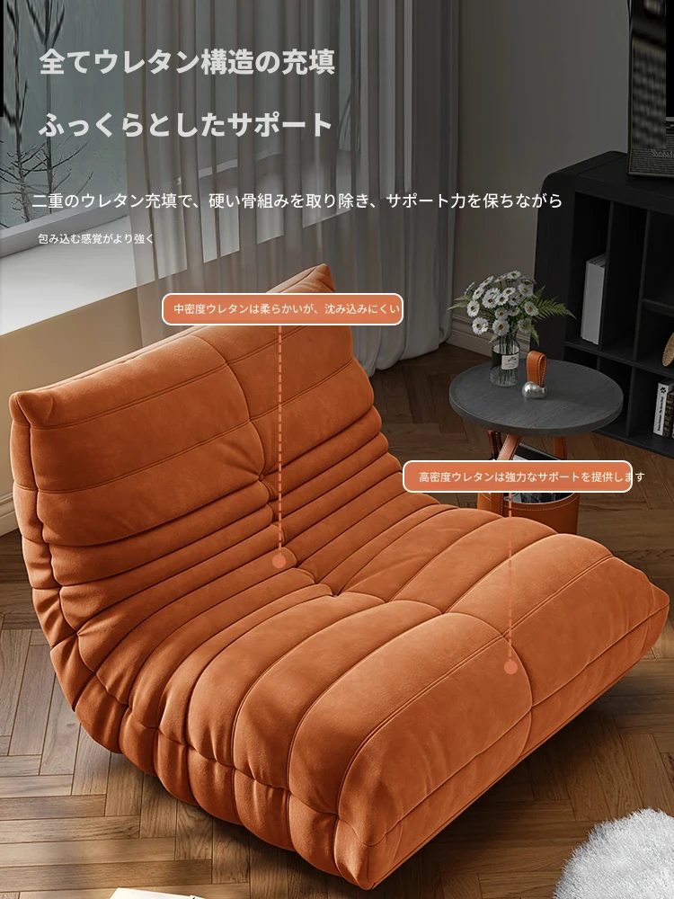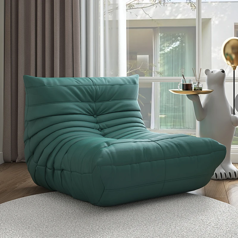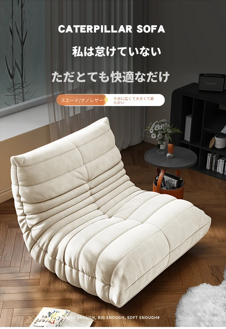リラックスできる!寝転んでも快適な毛虫ソファ - バルコニーや畳スペースに最適な一人用リクライニングソファ。お部屋のインテリアにもぴったりの、心地よいラウンジチェアです!